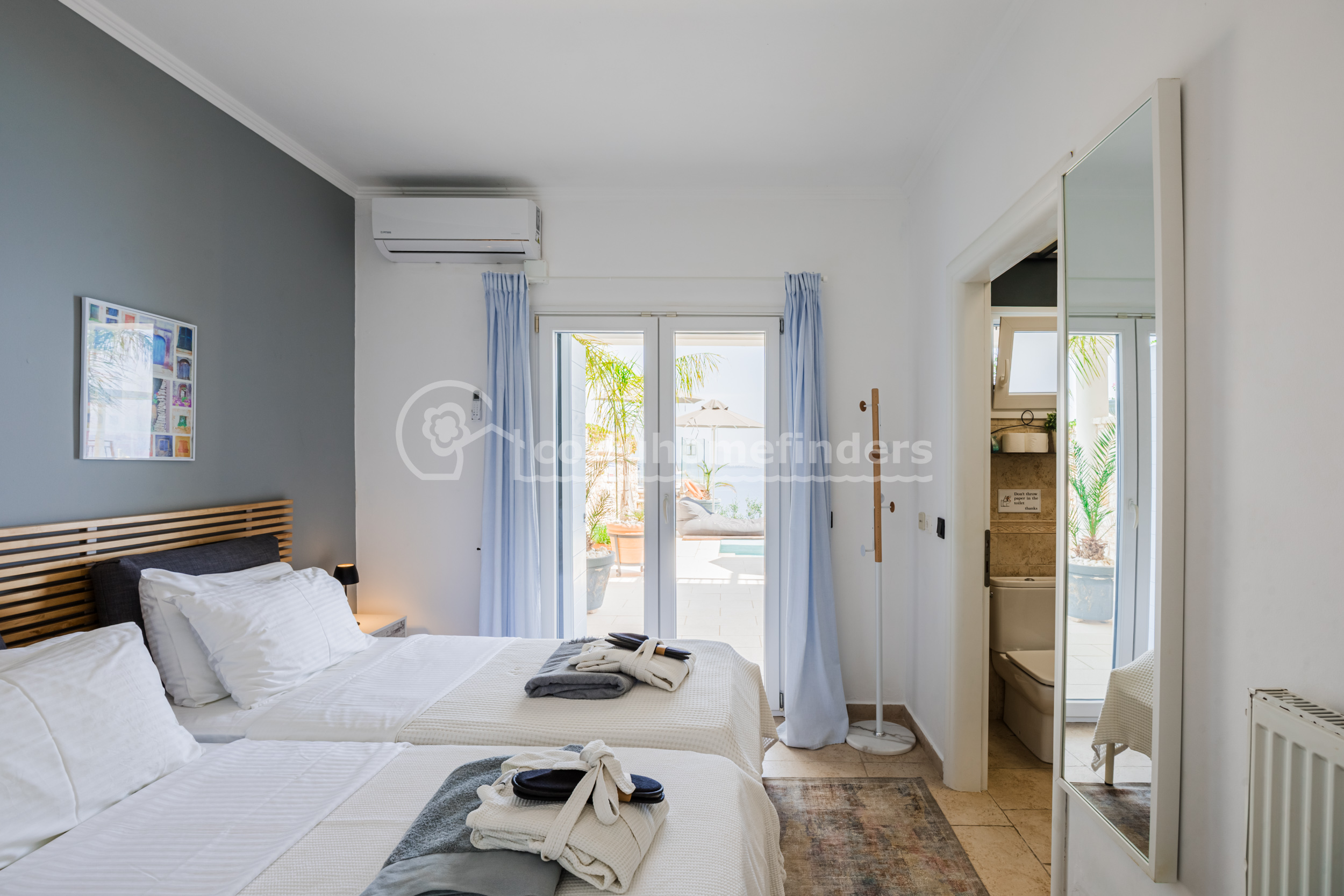 The villa is designed to offer a sea view from every room - the living room opens into the garden and pool area extending the feeling of the surrounding seascape.