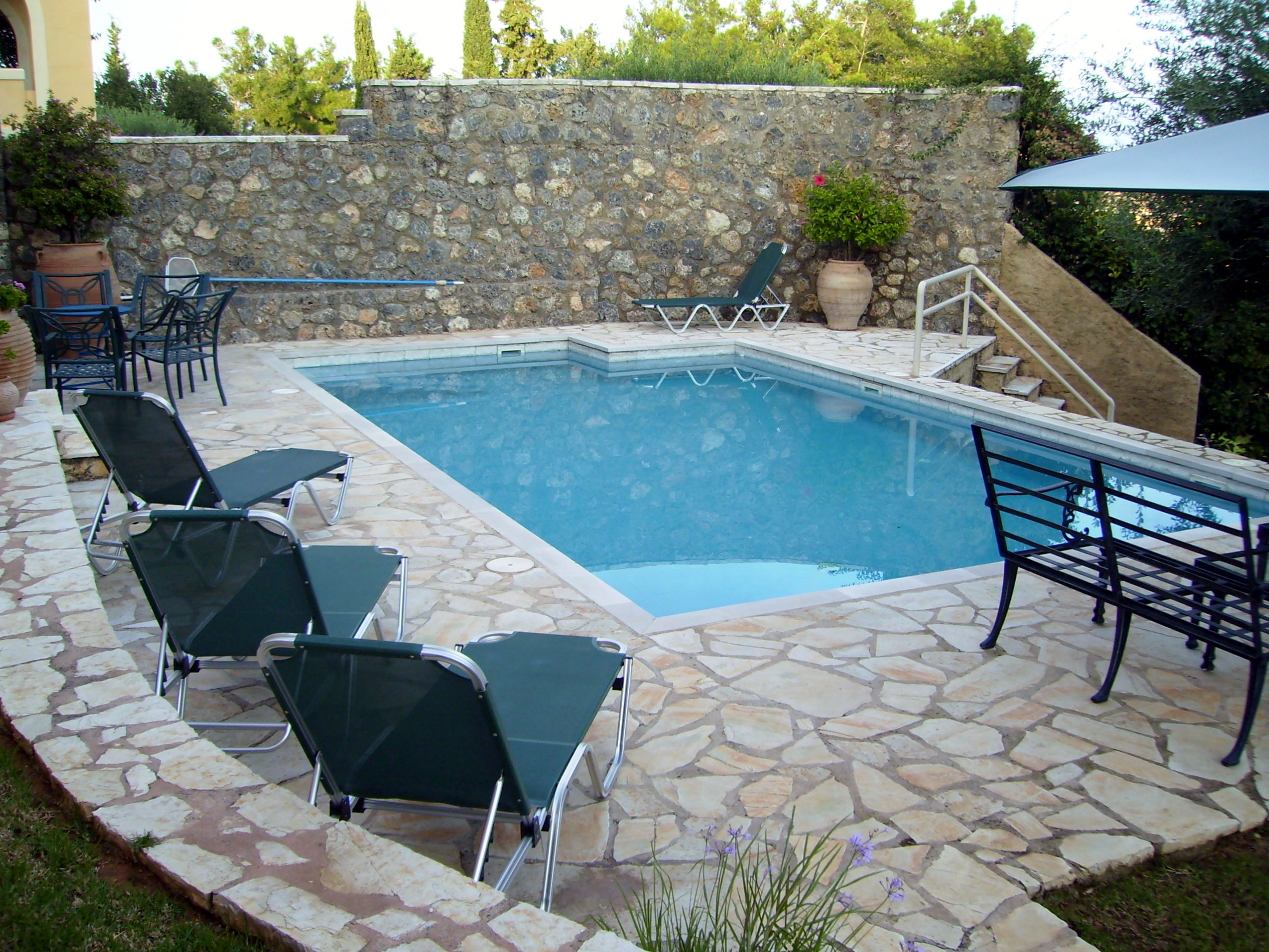 There is a large swimming pool, with paved terraces for outside dining and relaxing.
