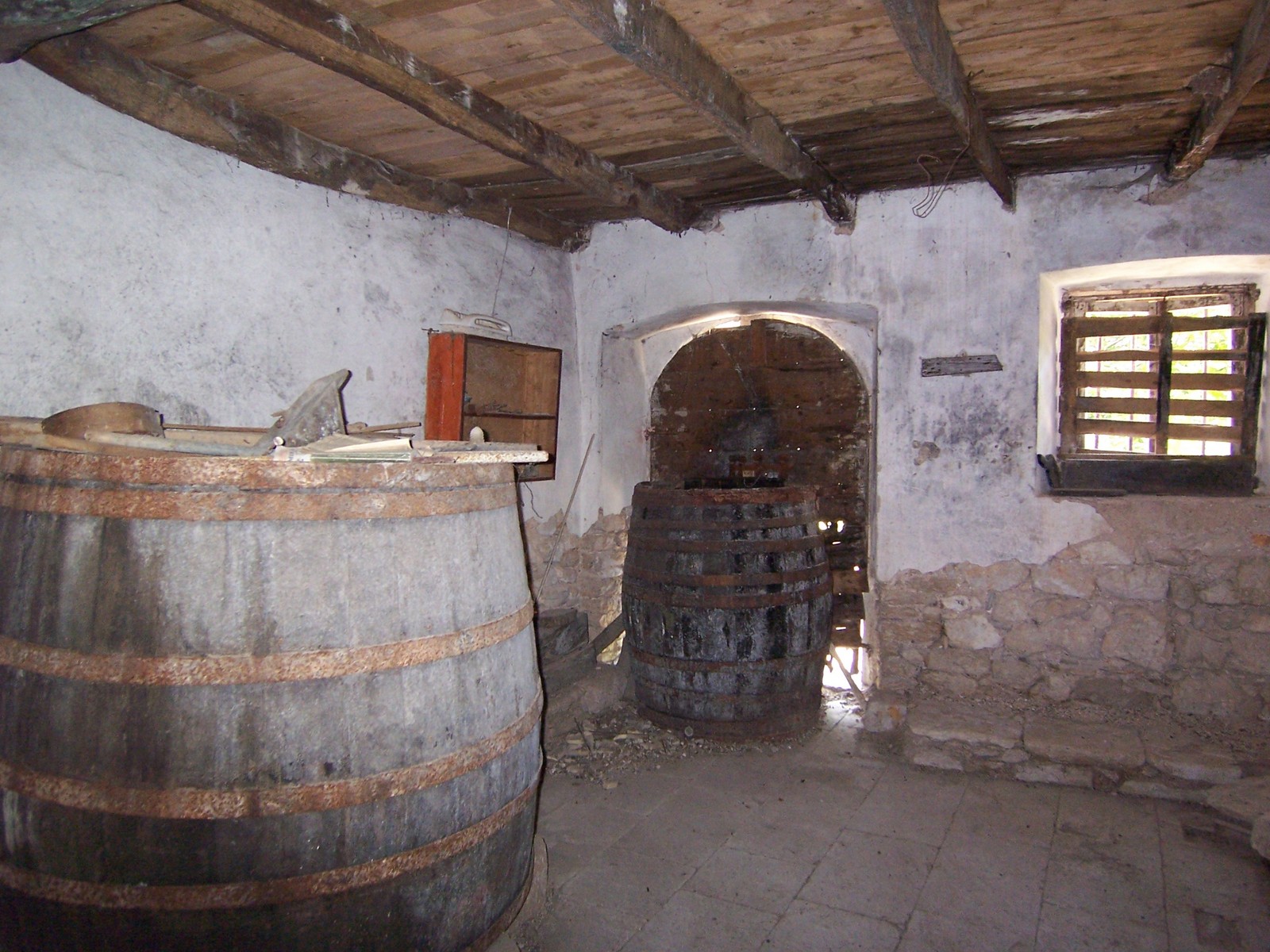 Huge and rambling, the property is very difficult to describe! On the ground floor there is an enormous room housing the original press and stones, and a side room where the oil vats would have been stored.