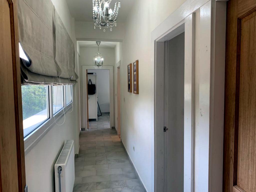 The house also has full central heating, air conditioning and doors and windows are double glazed. Although the plot is relatively small there is plenty of space to park several cars, and a driveway to the side of the house leading to a double garage. Just a short drive into Corfu town, the property is conveniently placed. East or west coast beaches are within easy reach.