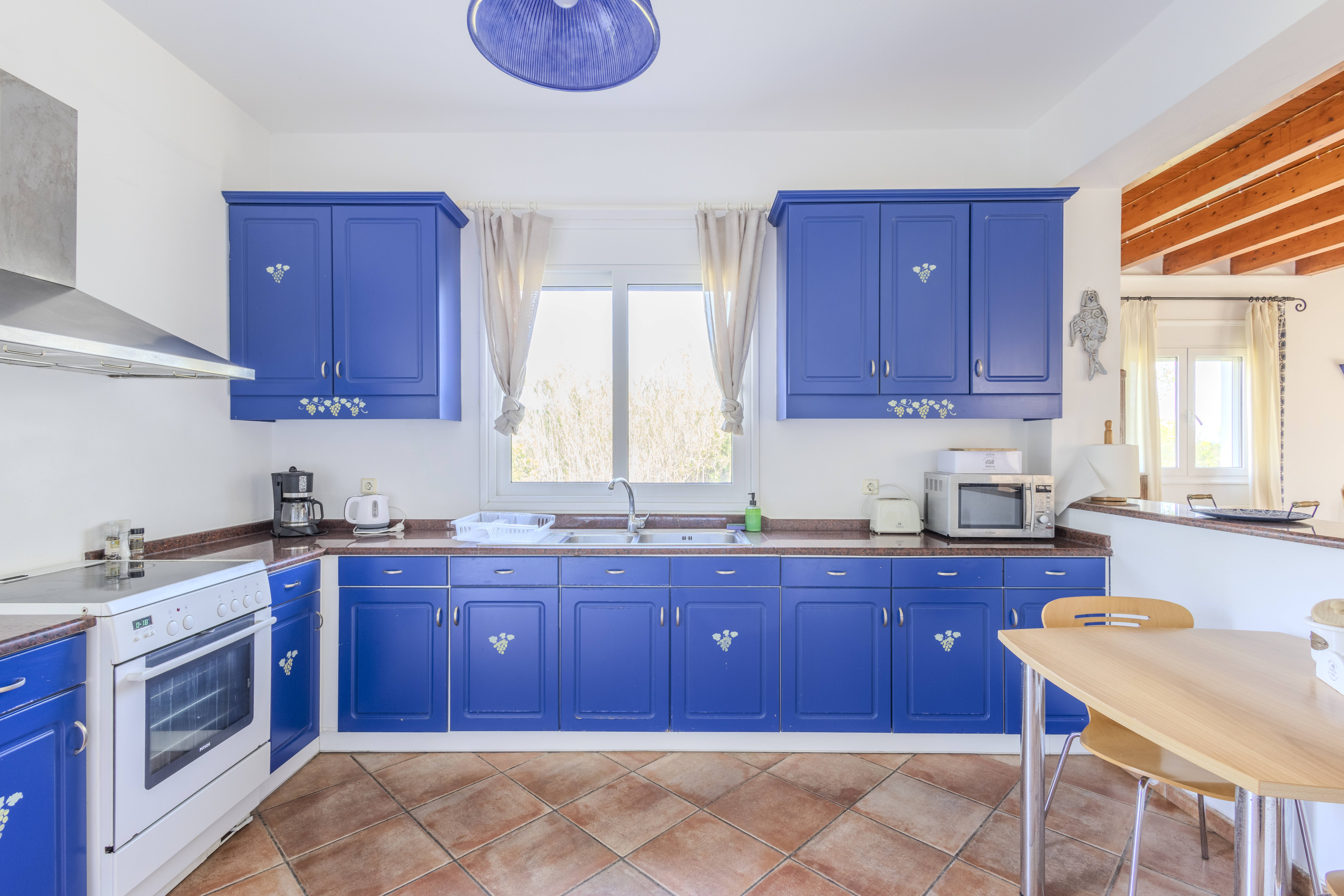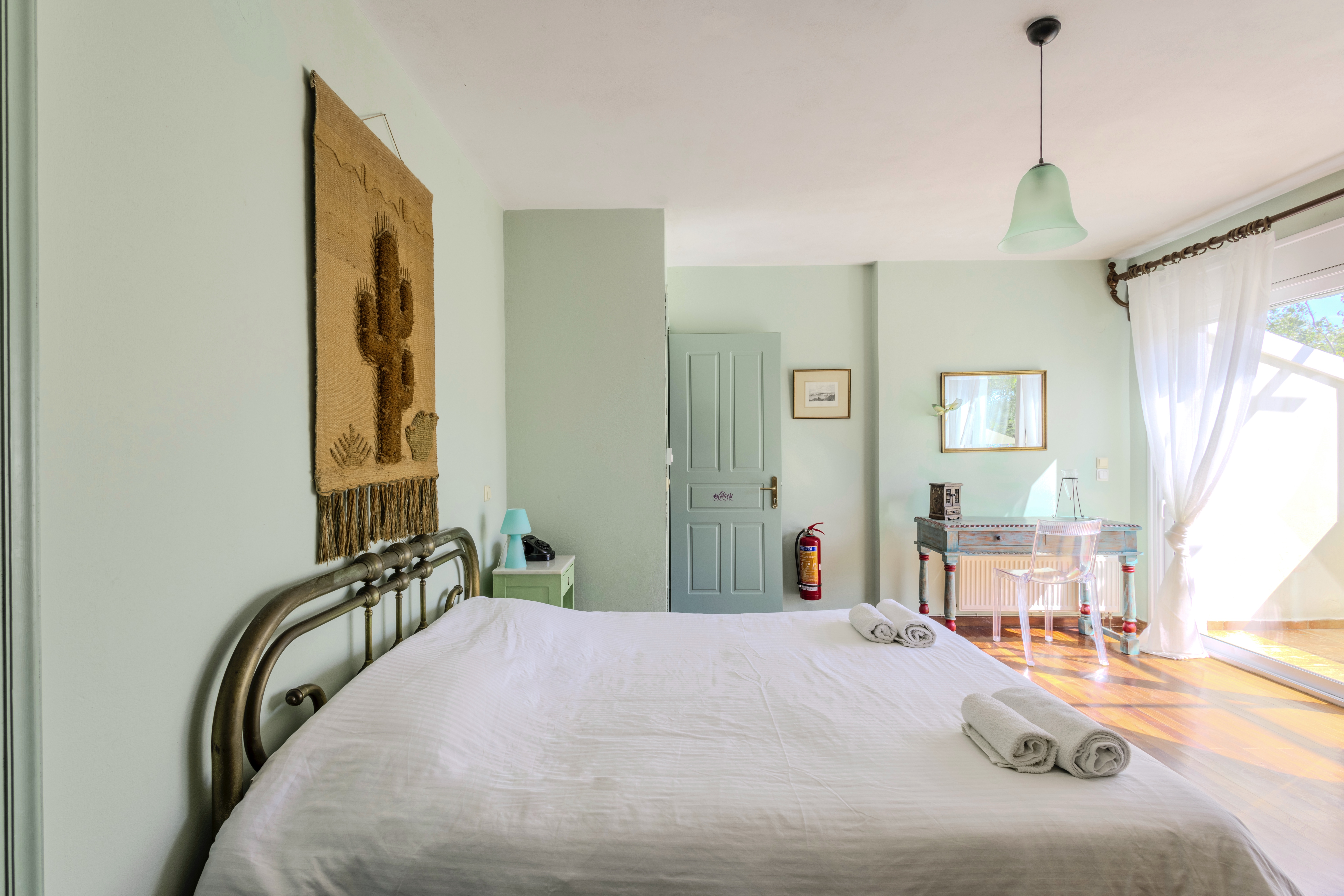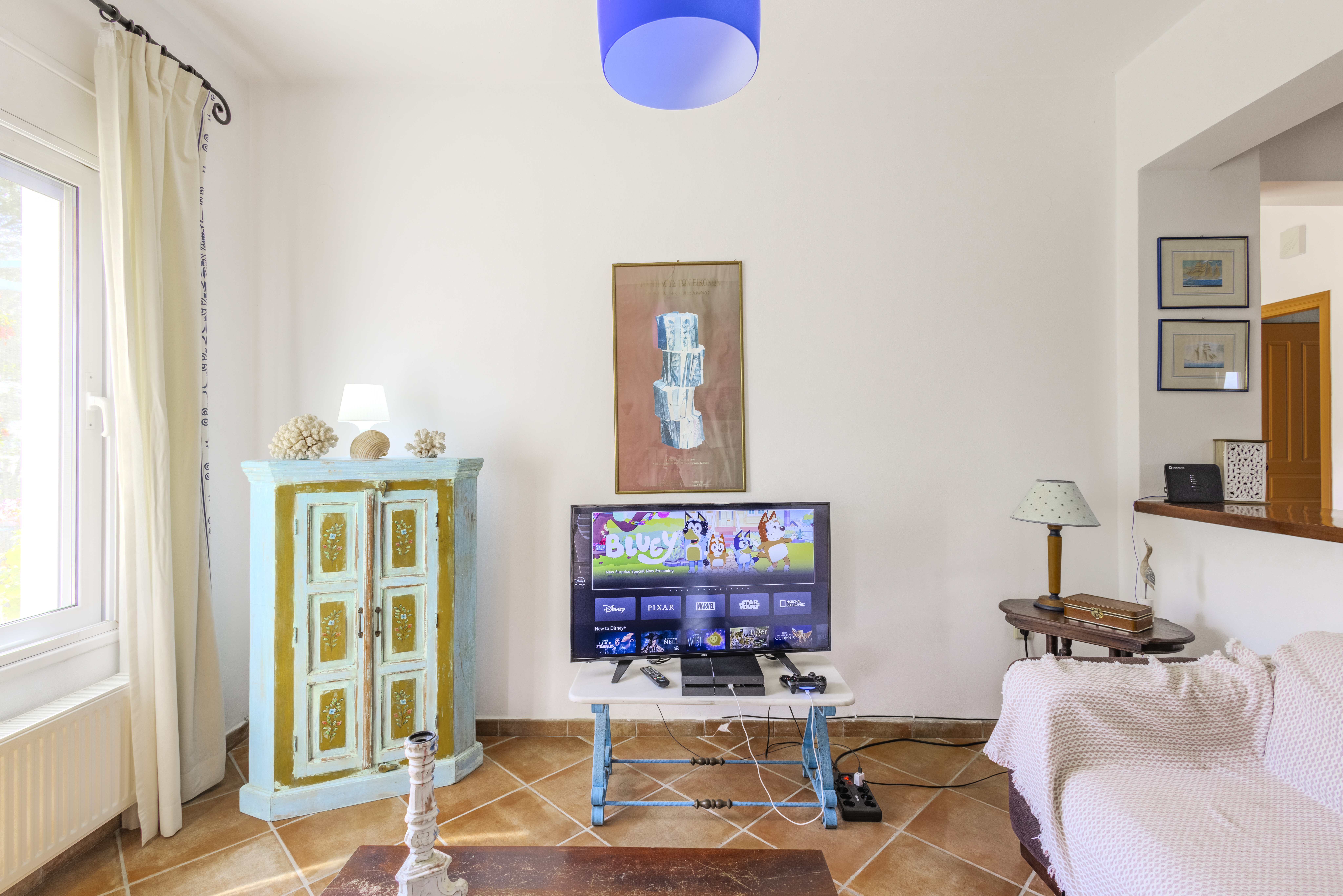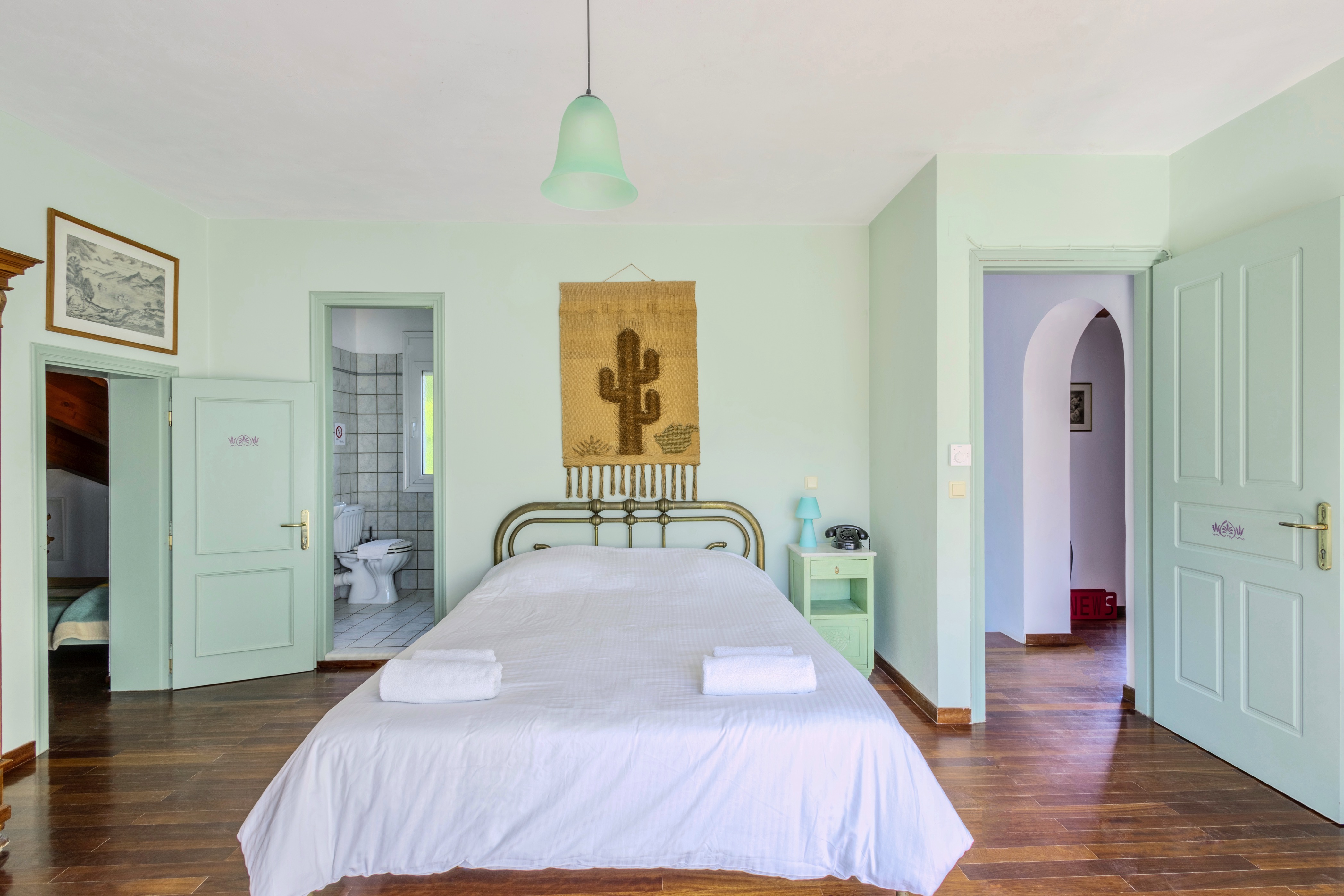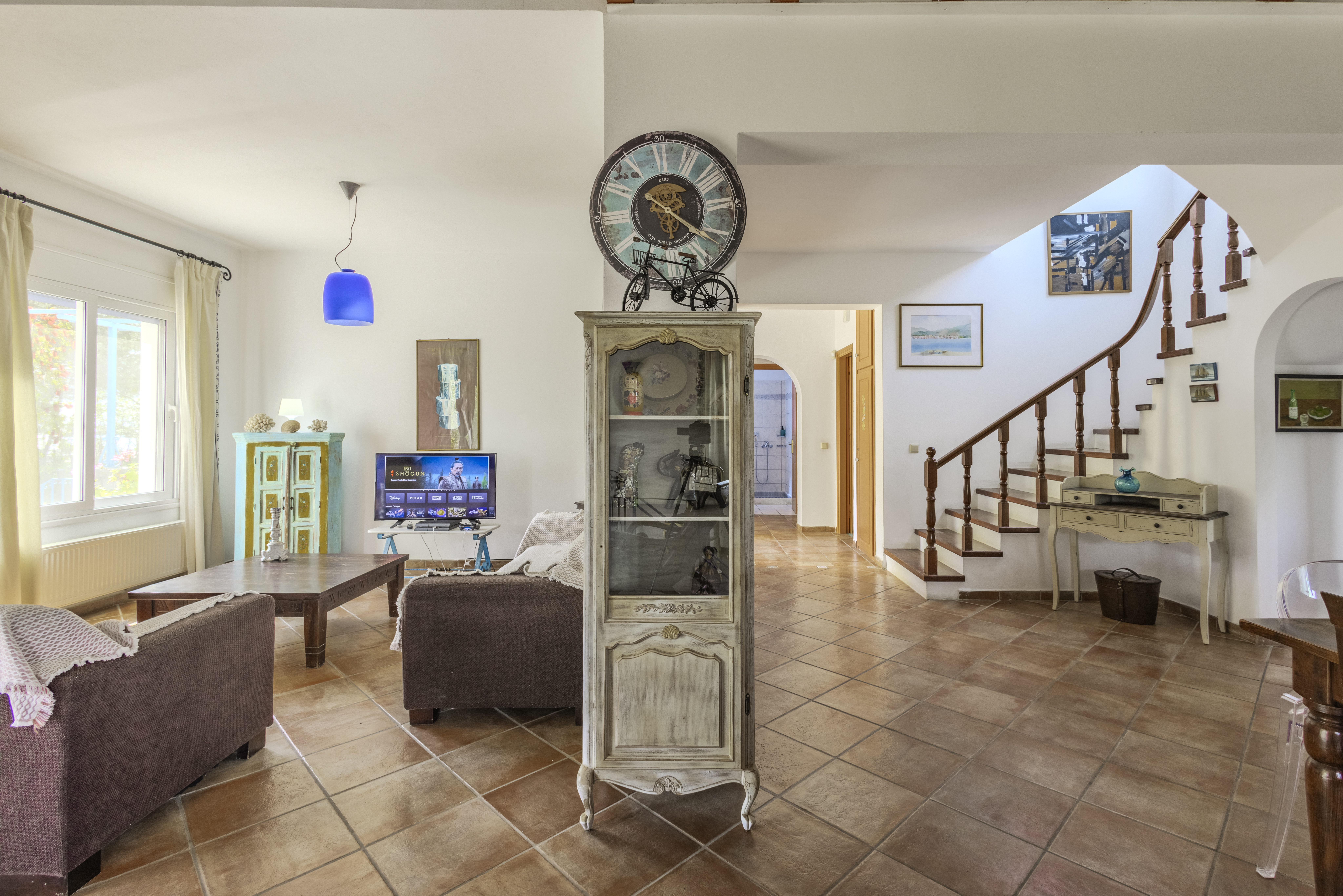 Outside, the villa is surrounded by a big private garden planted with pine, poplar and palm trees, eucalyptus, bougainvillaeas, roses and various fruit trees. There is a big patio surrounded by trees where you can enjoy alfresco dining and a built-in BBQ. The views to the sea and the gardens from the large, shaded verandas make them ideal for either dining or chilling out.