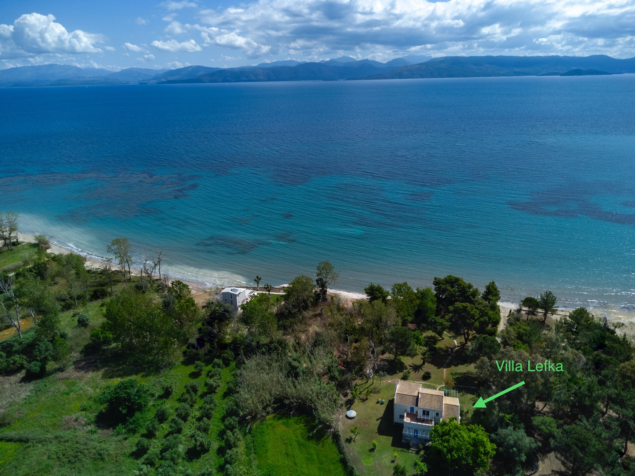 Harbour Villa is set in a large garden with the local sandy beach just outside the front gate, and near to the village of Lefkimmi with all amenities and the port for quick access to the mainland.
