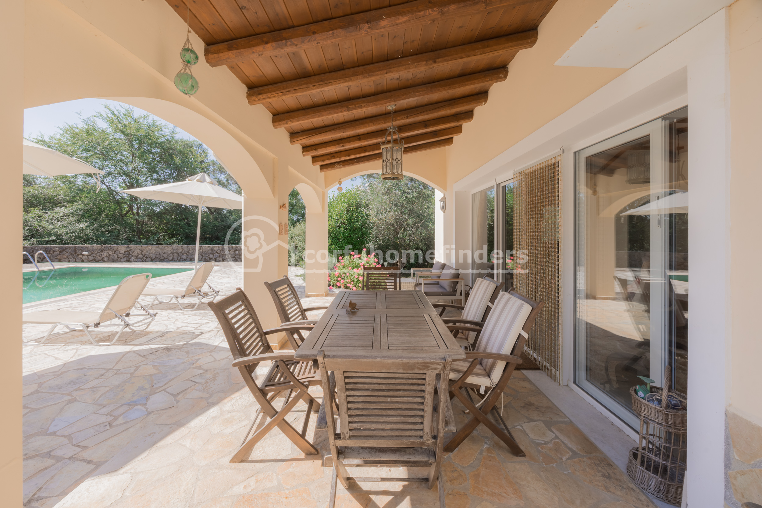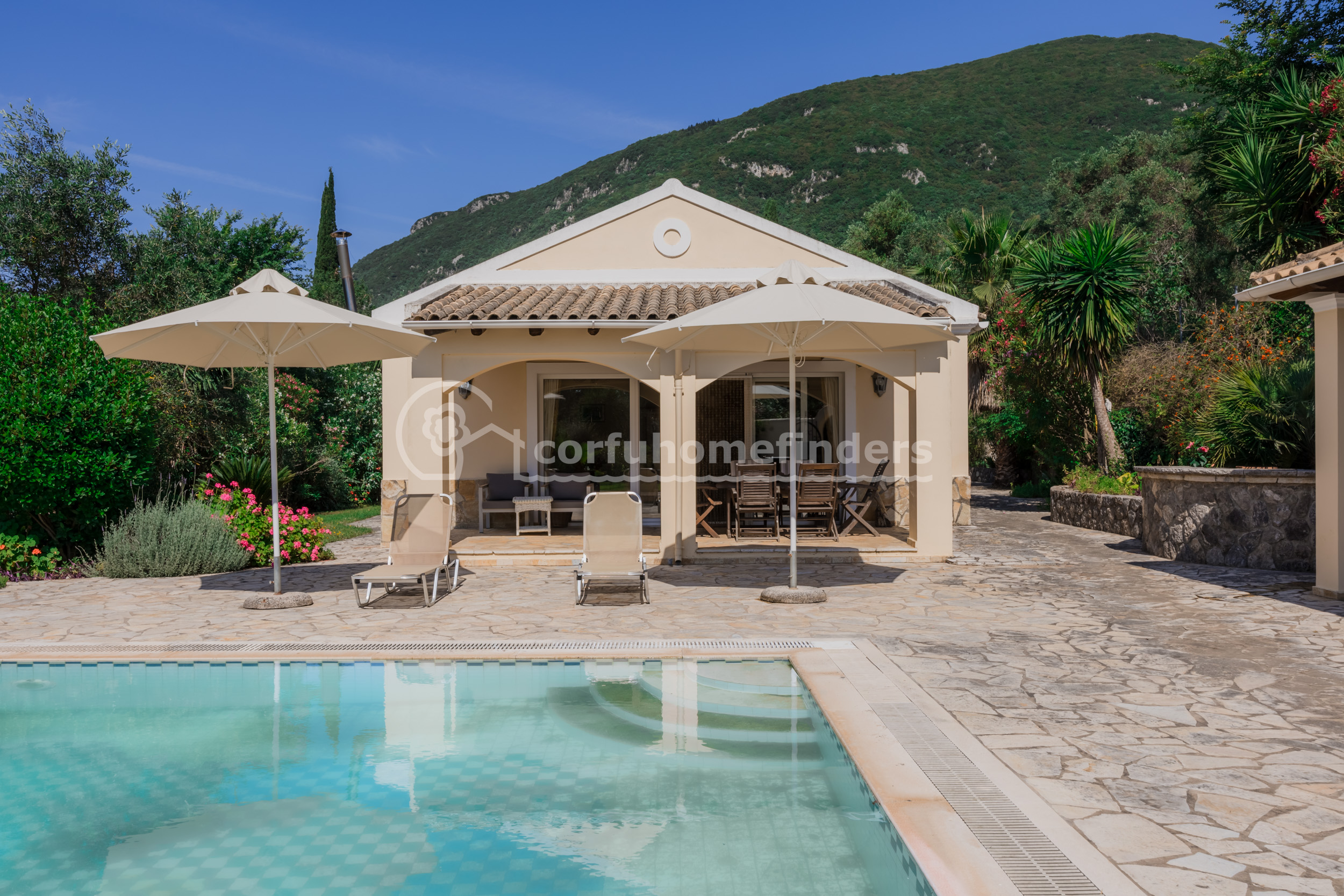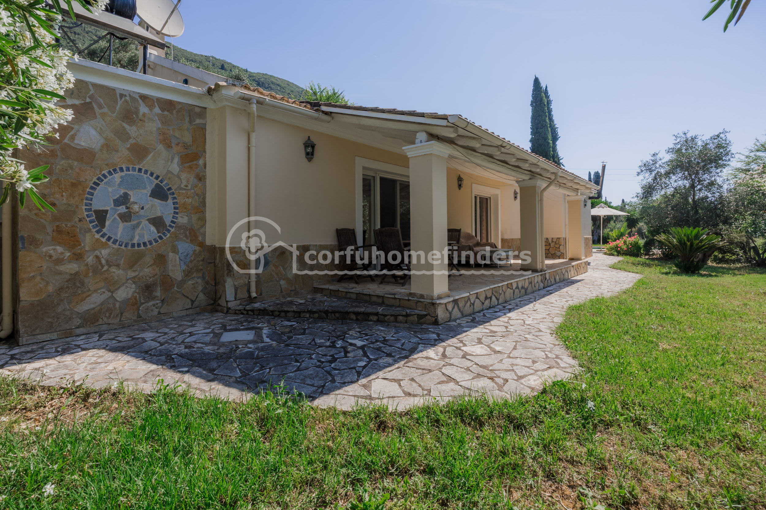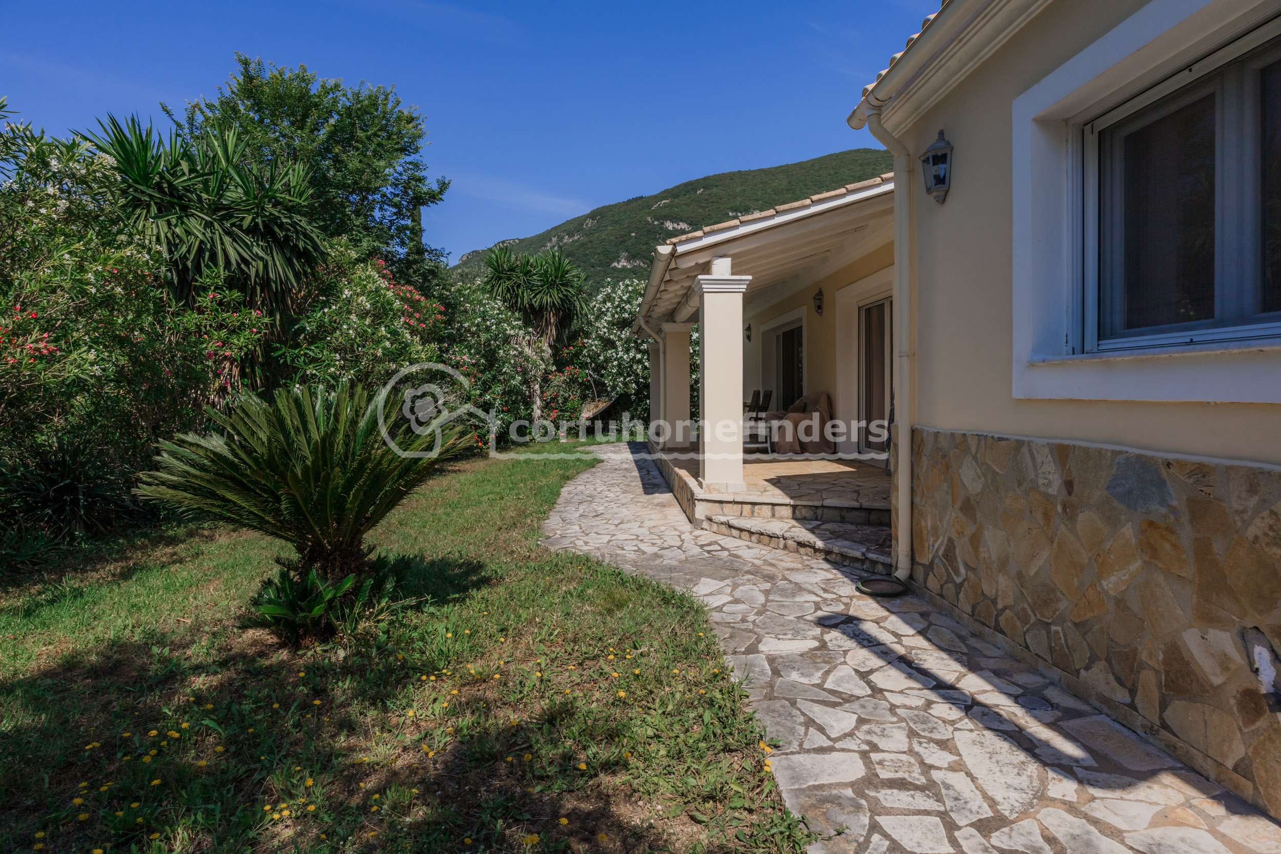 It is quite unusual to find single floor properties in Corfu, the majority being set on hillsides, on 2 or 3 floors, so this house is a very convenient alternative.