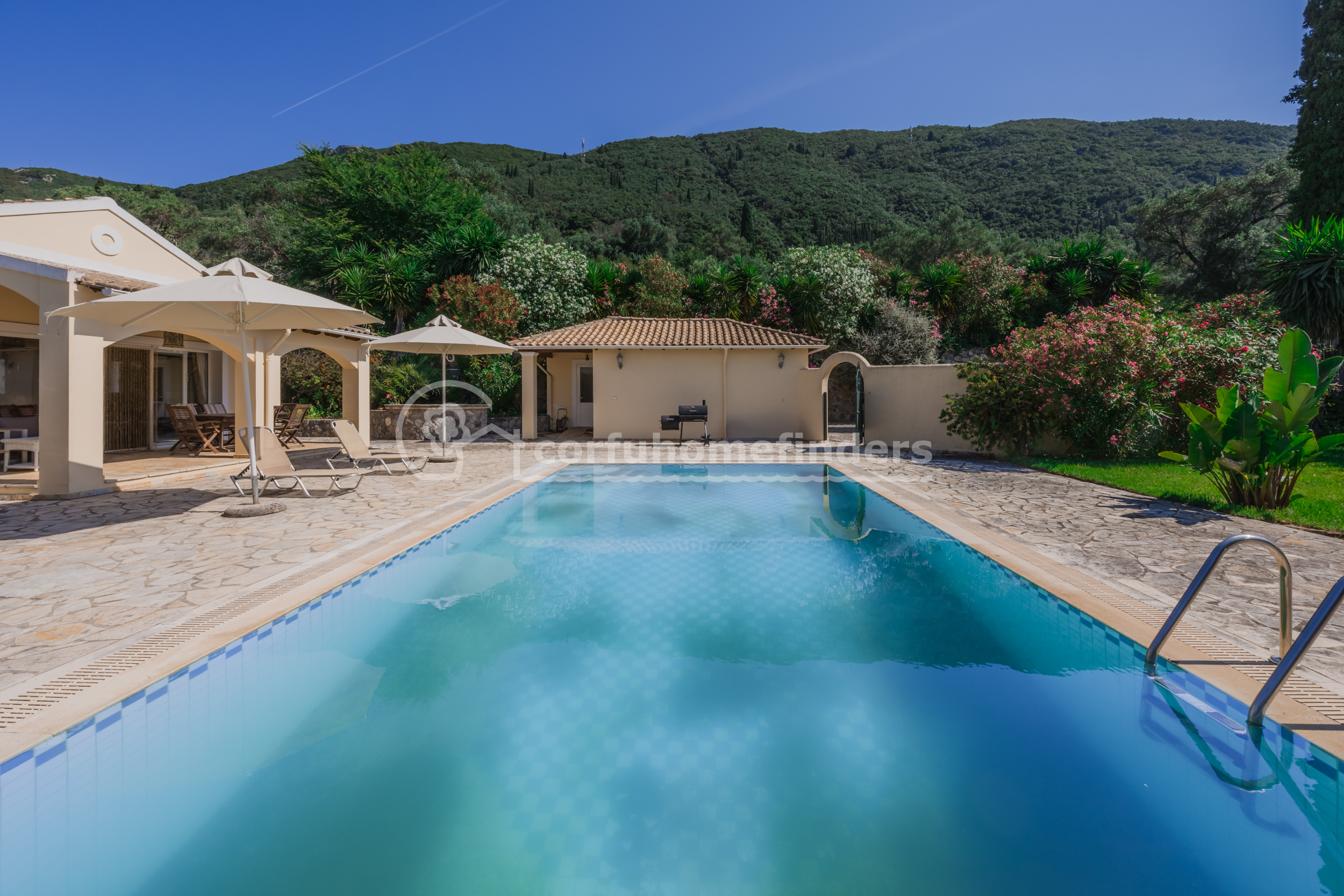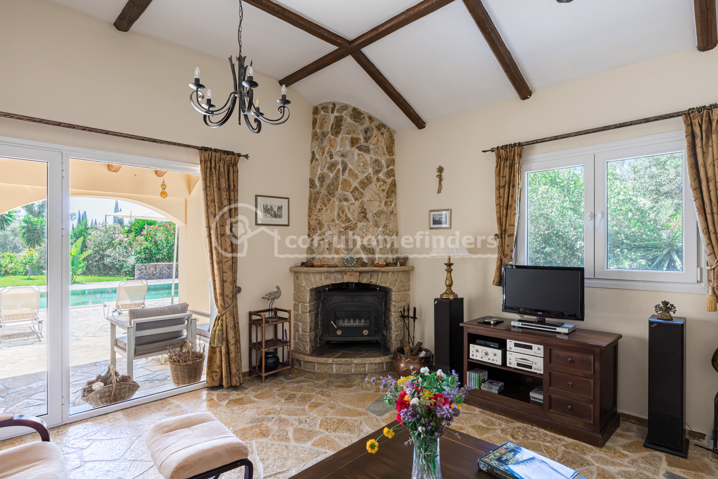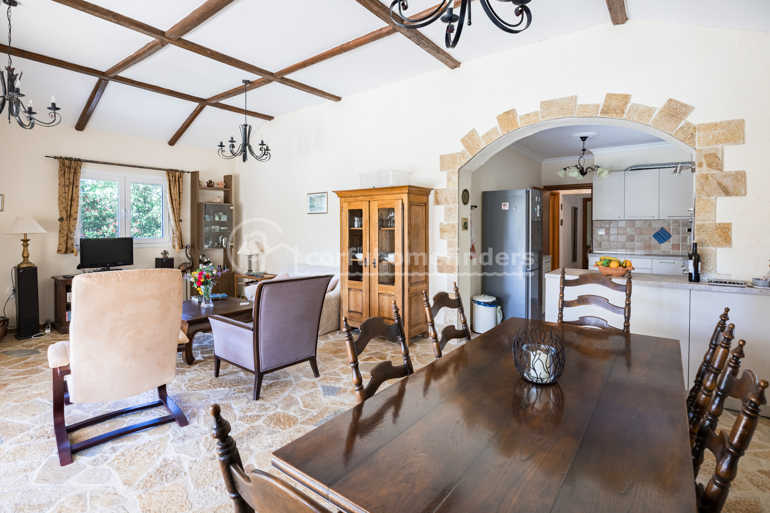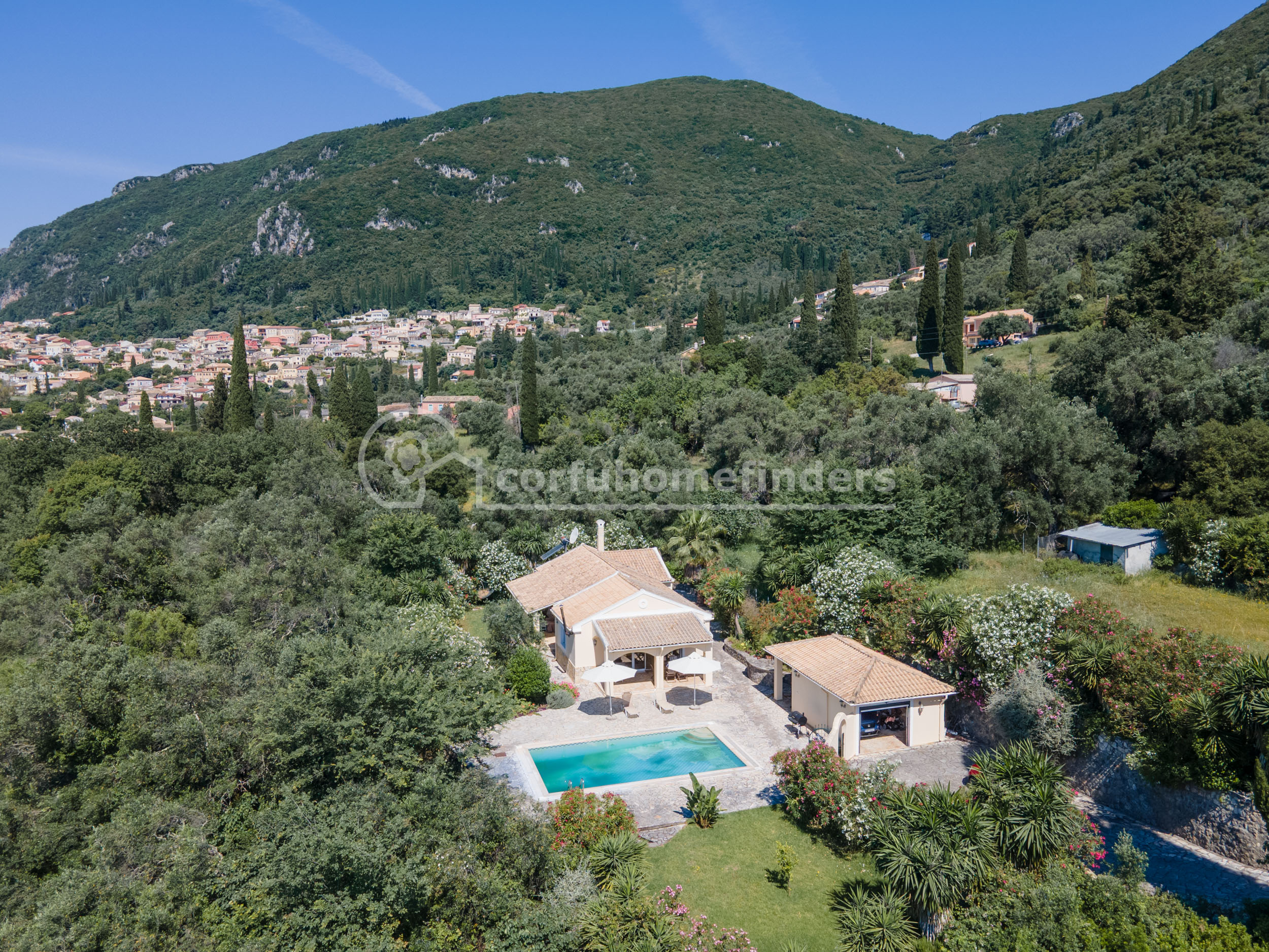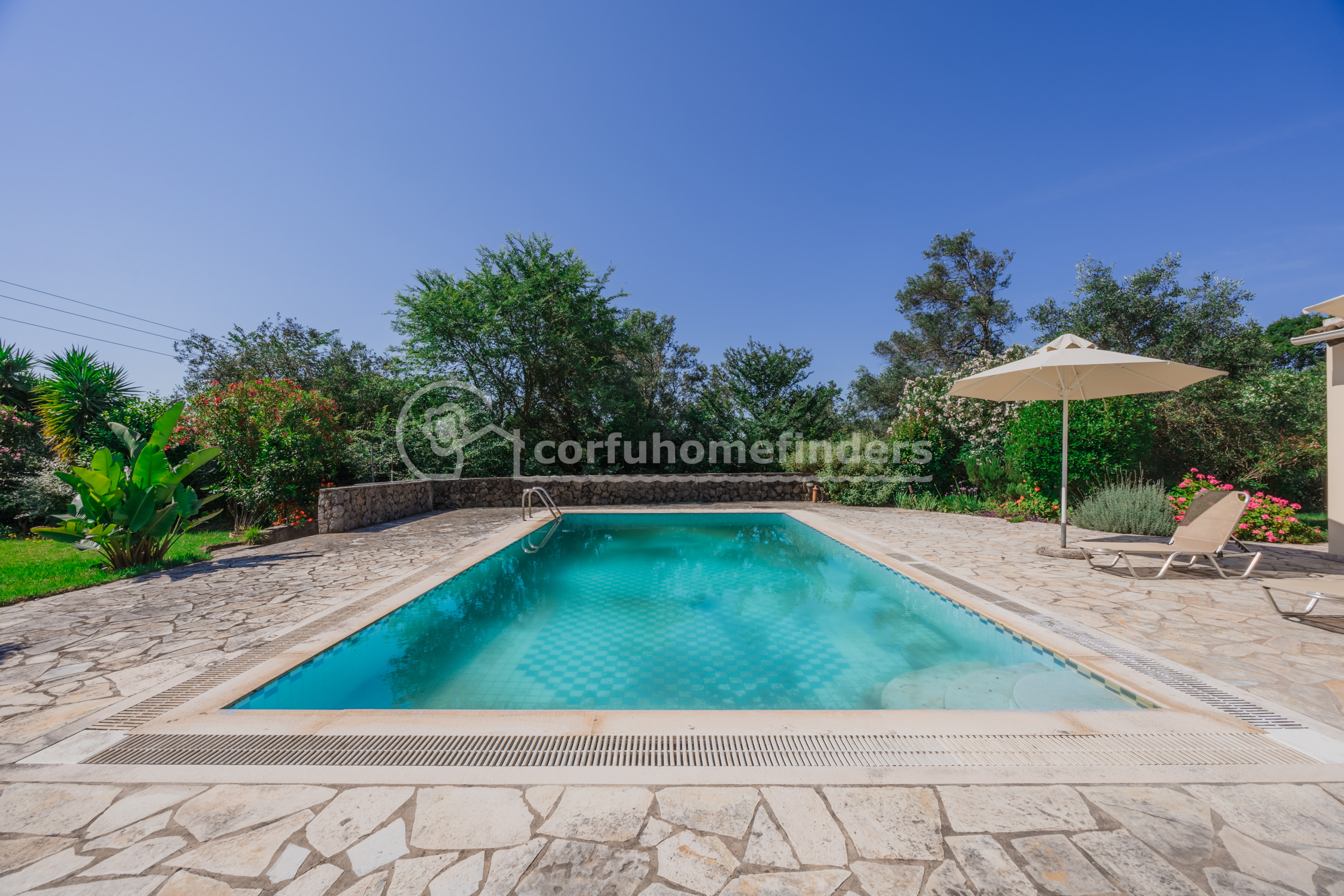 It is quite unusual to find single floor properties in Corfu, the majority being set on hillsides, on 2 or 3 floors, so this house is a very convenient alternative.