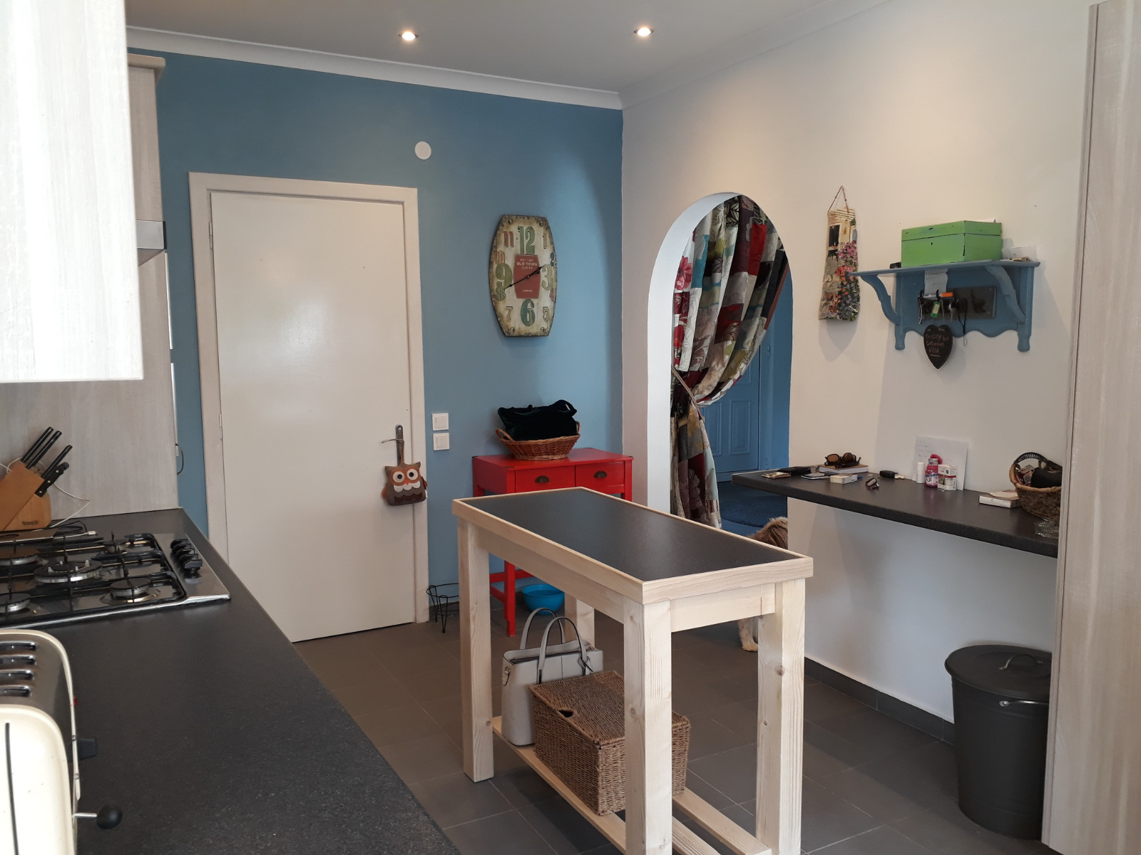 Inside, the front door leads into a hallway and dining room with a large window overlooking the wooded hillside opposite. The living room faces the other way, with patio windows onto the terrace and garden and has a woodburning stove for cozy evenings. The kitchen is modern and light and bright, overlooking the garden and with a door leading onto the terrace, perfect for outside dining.