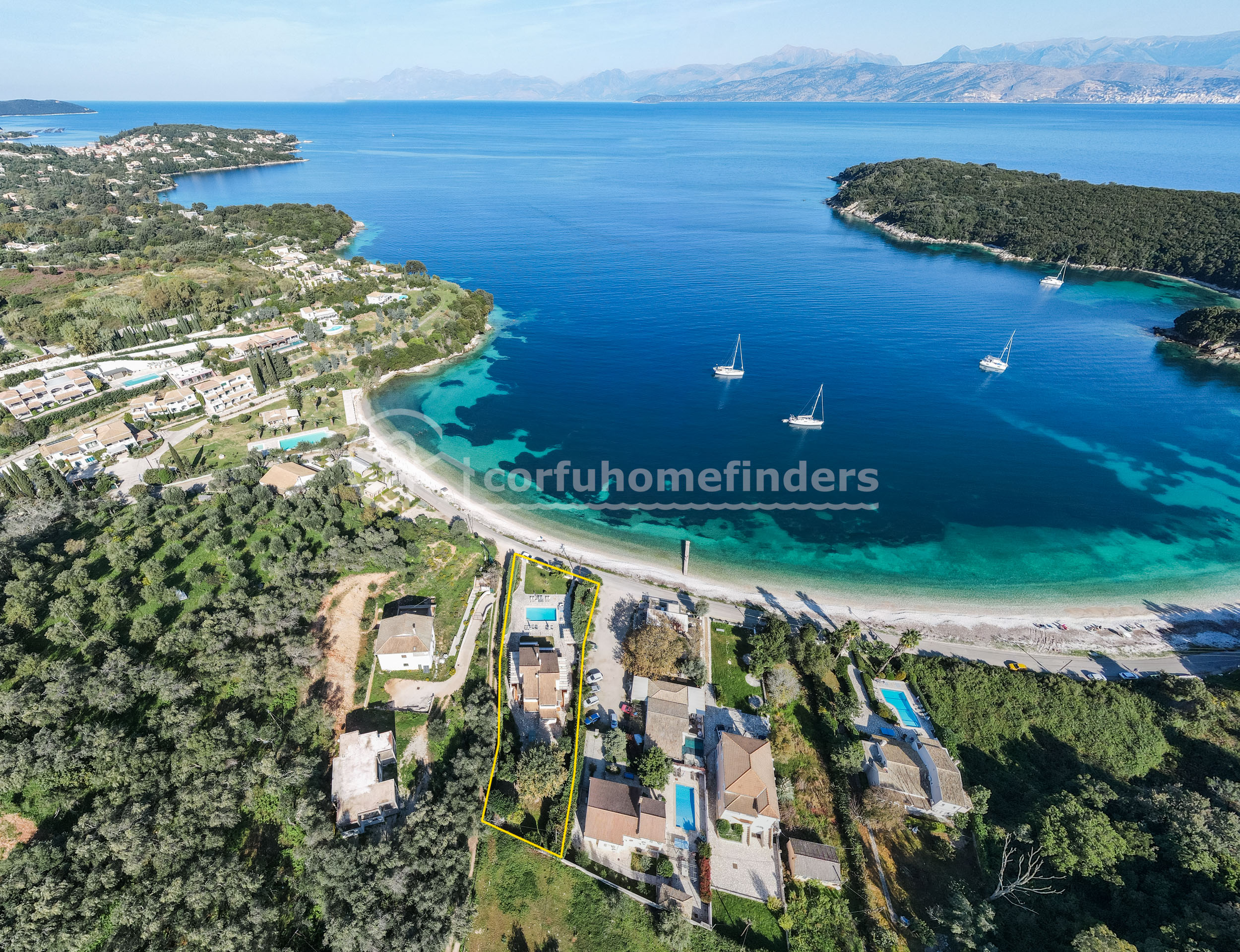 This is an excellent holiday rental area, with the thriving harbour resort of Kassiopi being just a short drive away and tavernas just steps from the villas along the lovely beach front.