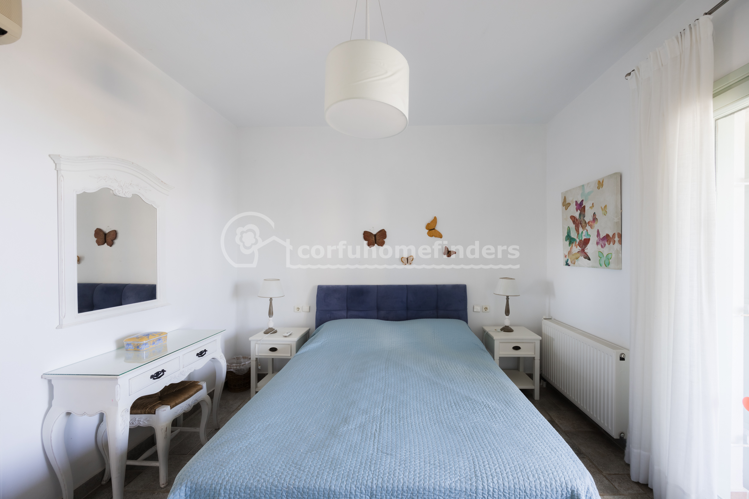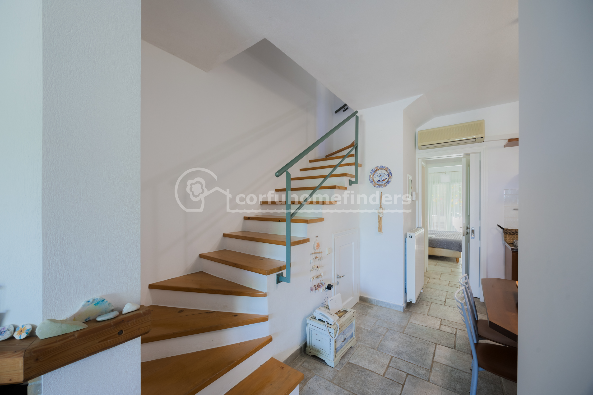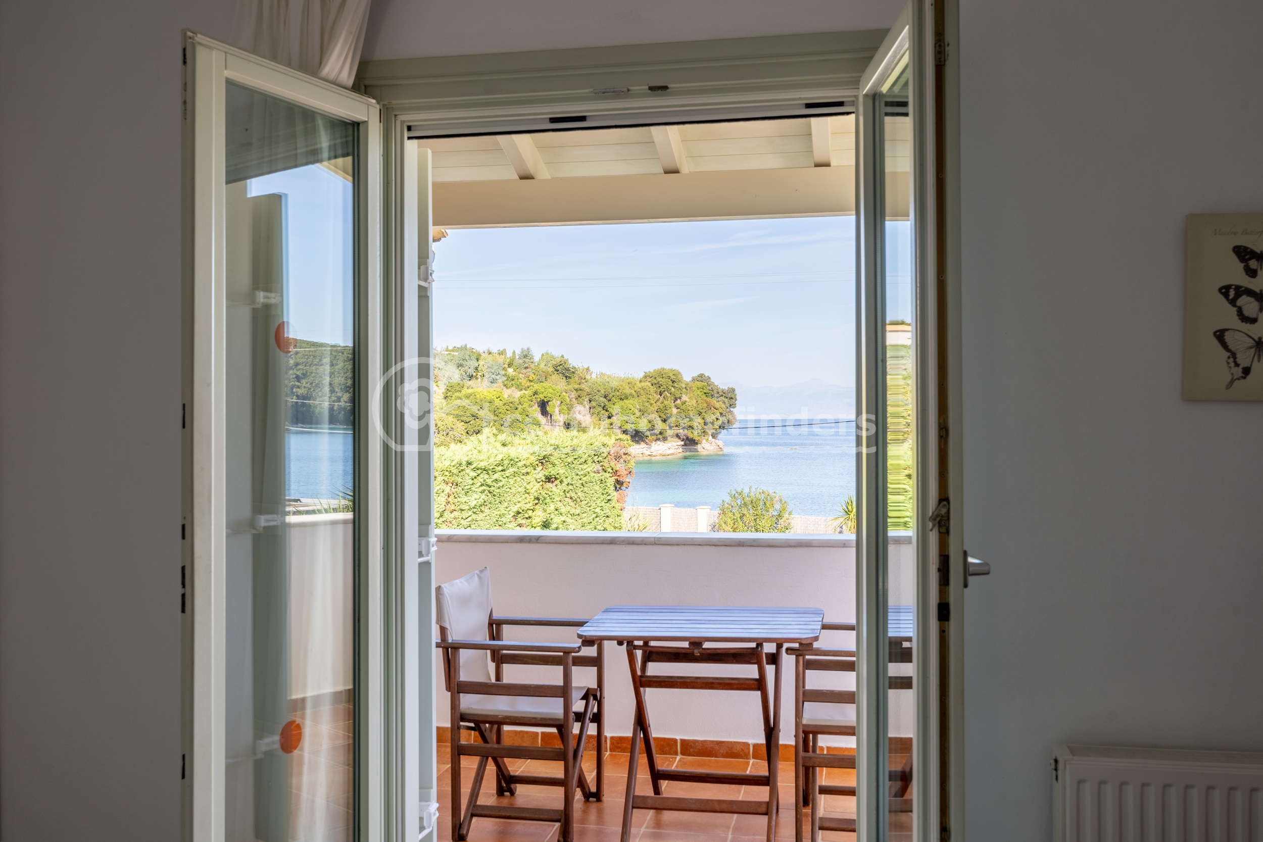 Two identical villas joined side by side, each property has plenty of space and enjoys lovely views across the bay of Avlaki towards the Albanian mainland.