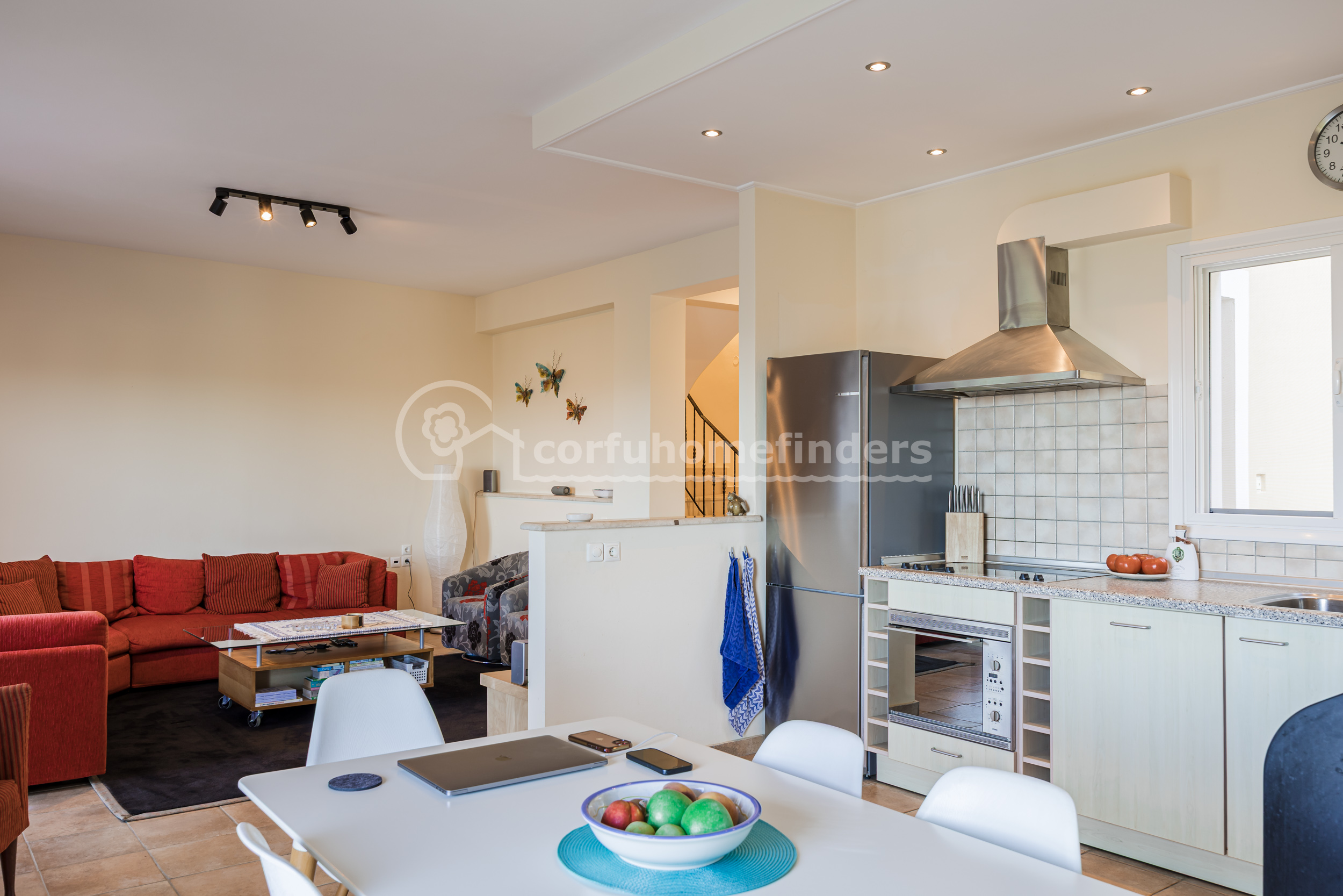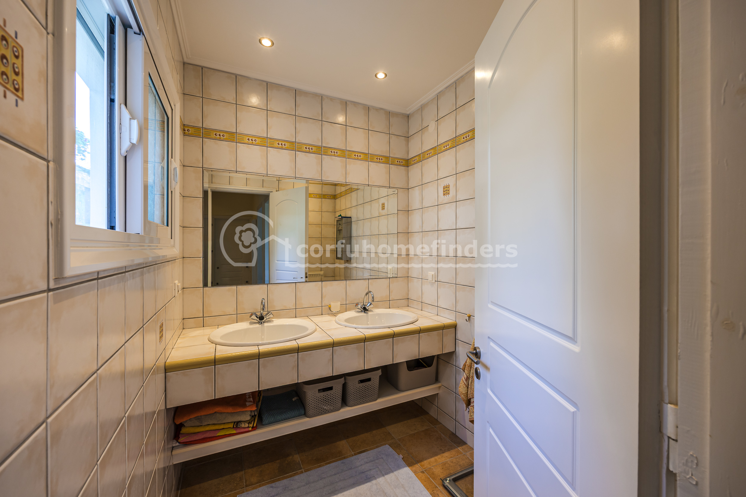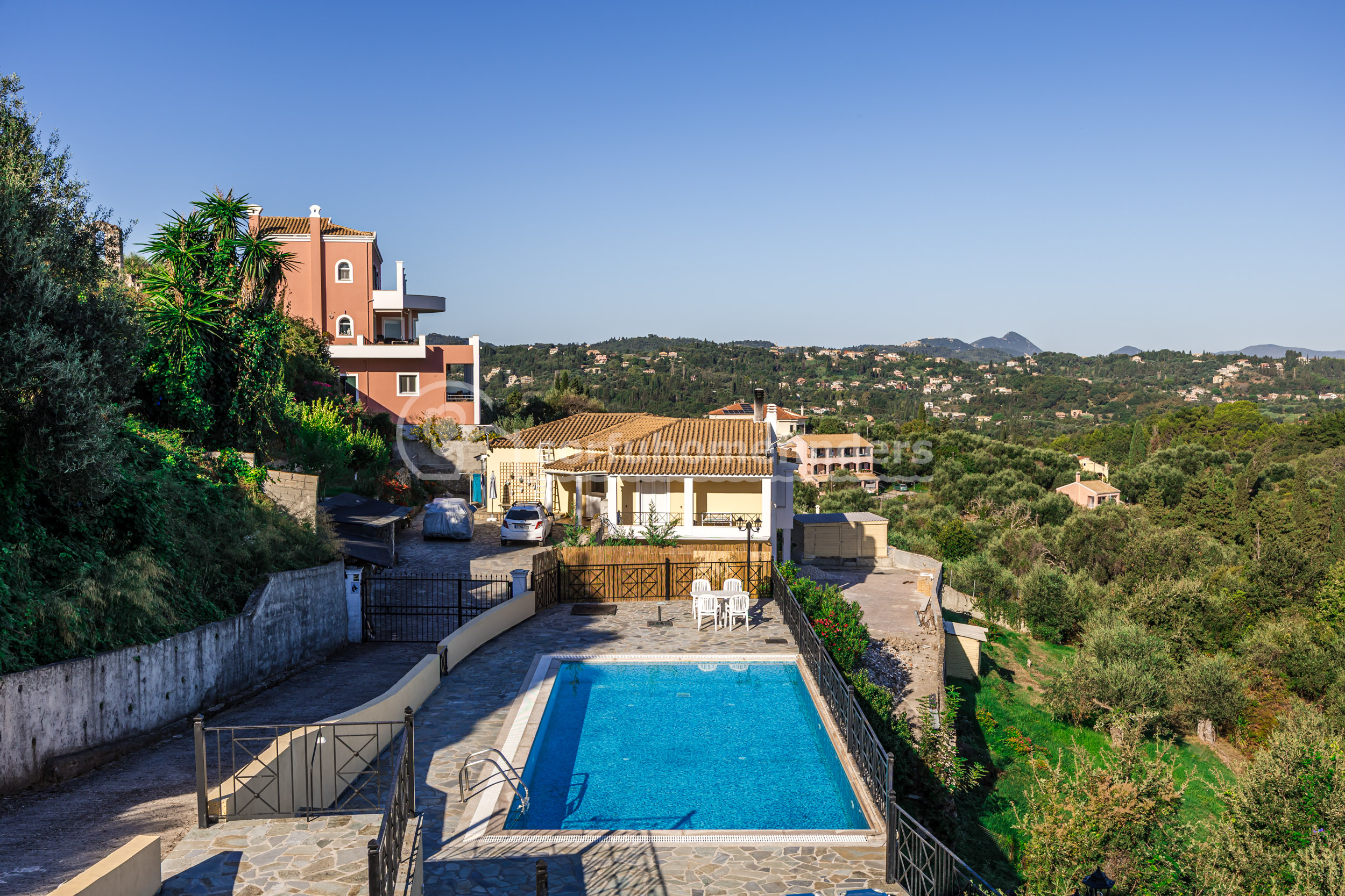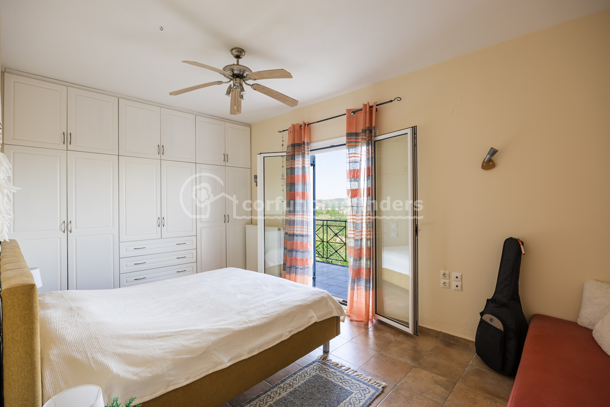 The house is conveniently located only a short drive from Corfu Town, and has easy access to beaches on both east and west coasts. Views stretch down to Corfu Town, past the airport and out to sea.