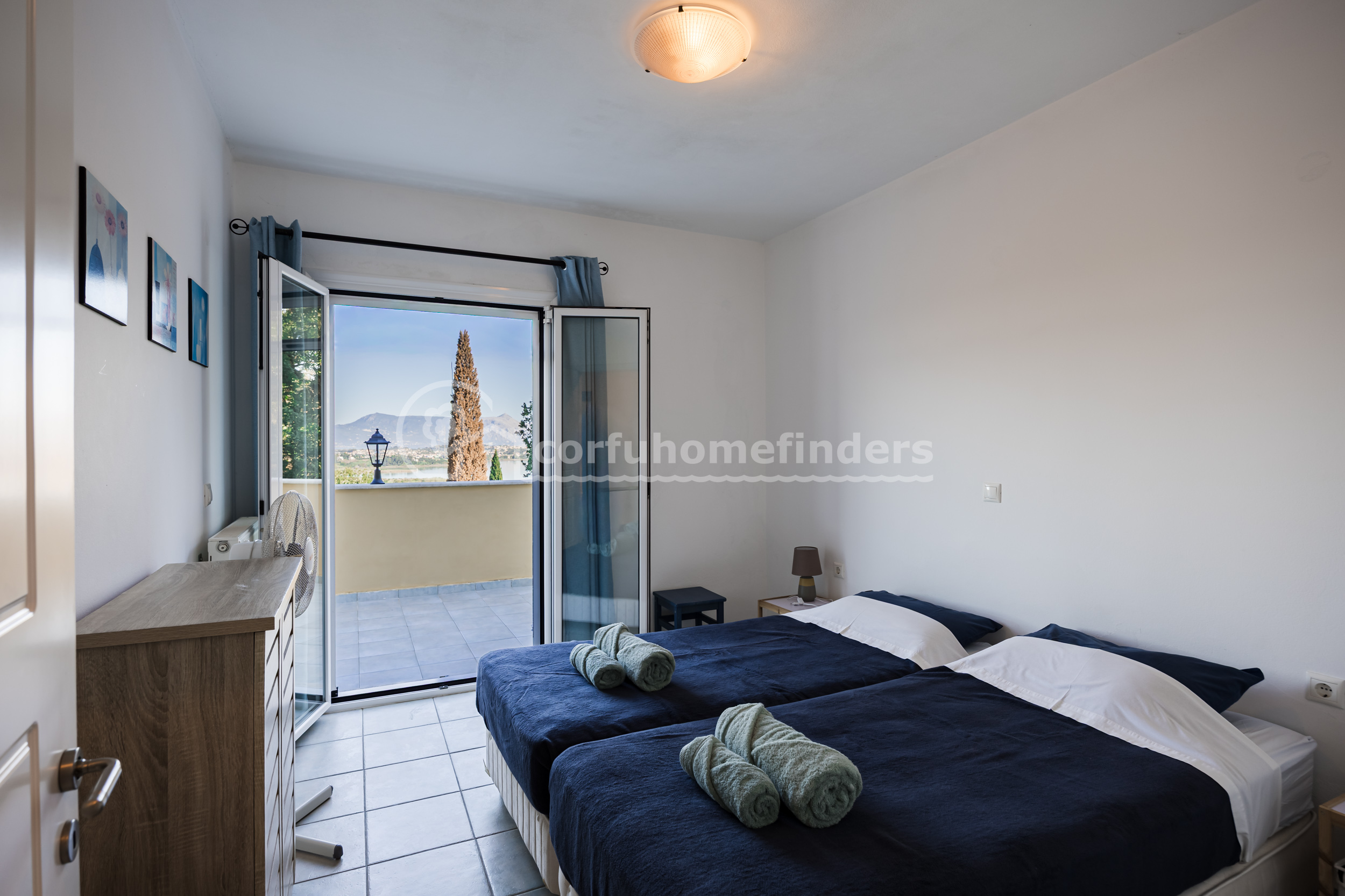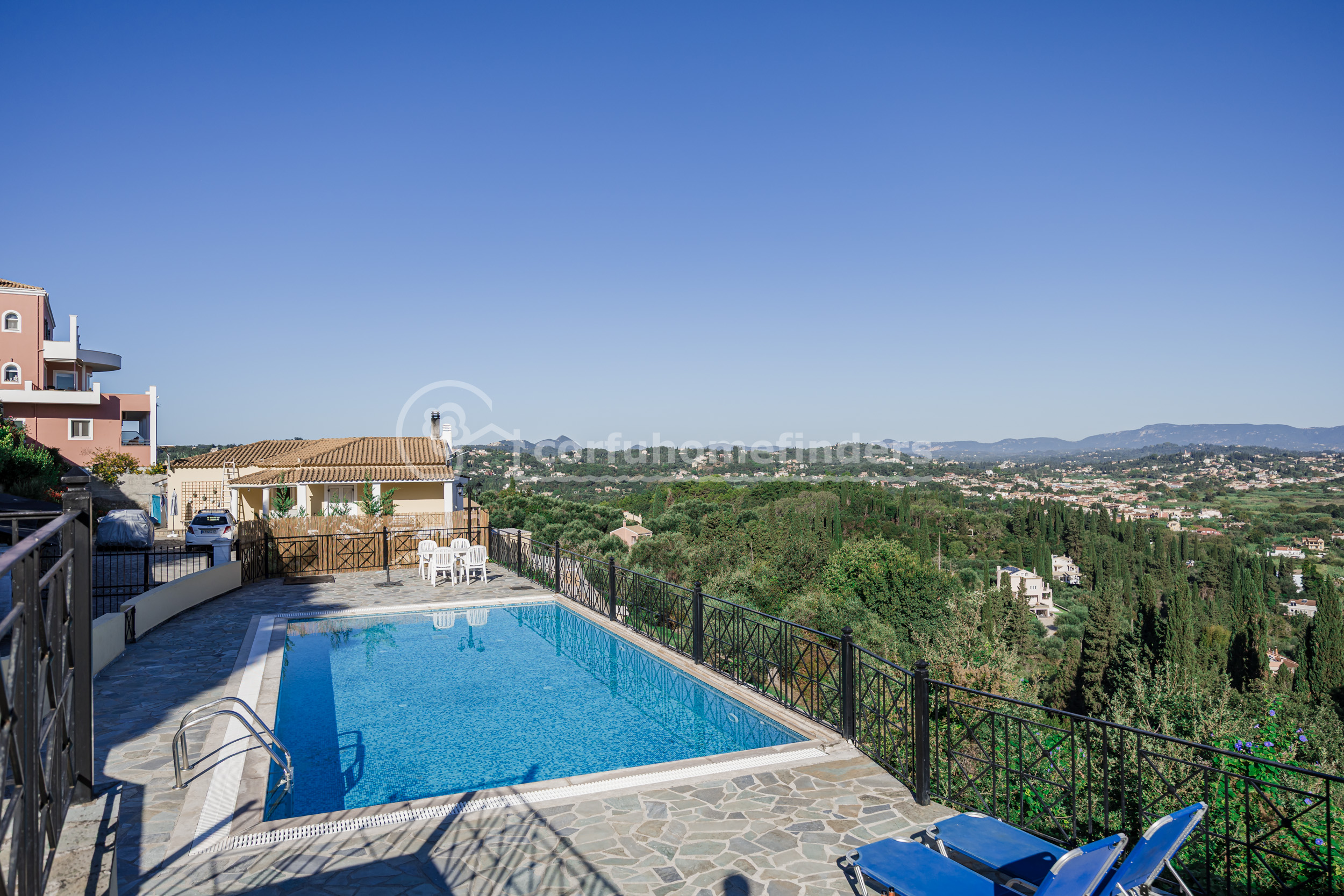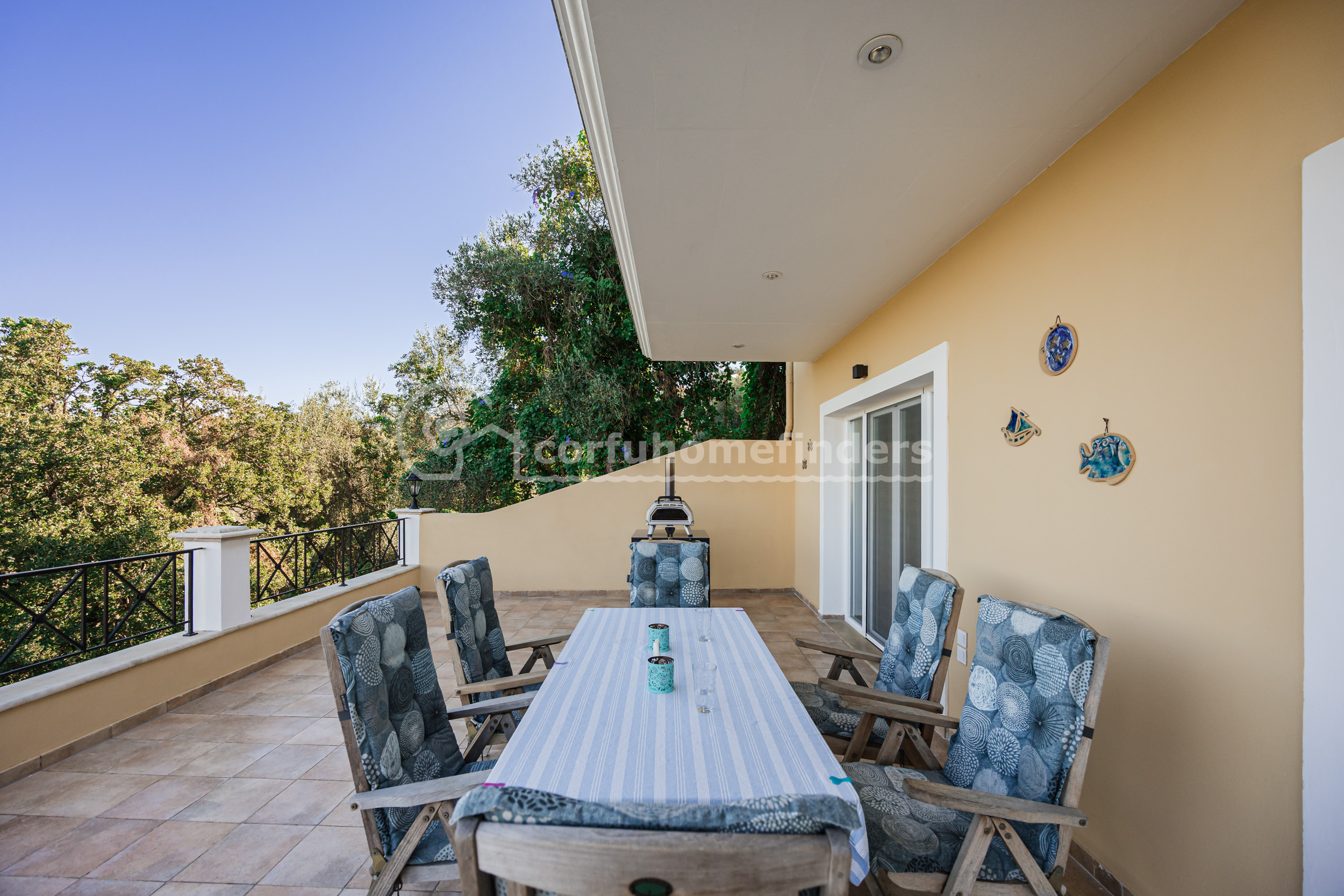 The house is conveniently located only a short drive from Corfu Town, and has easy access to beaches on both east and west coasts. Views stretch down to Corfu Town, past the airport and out to sea.