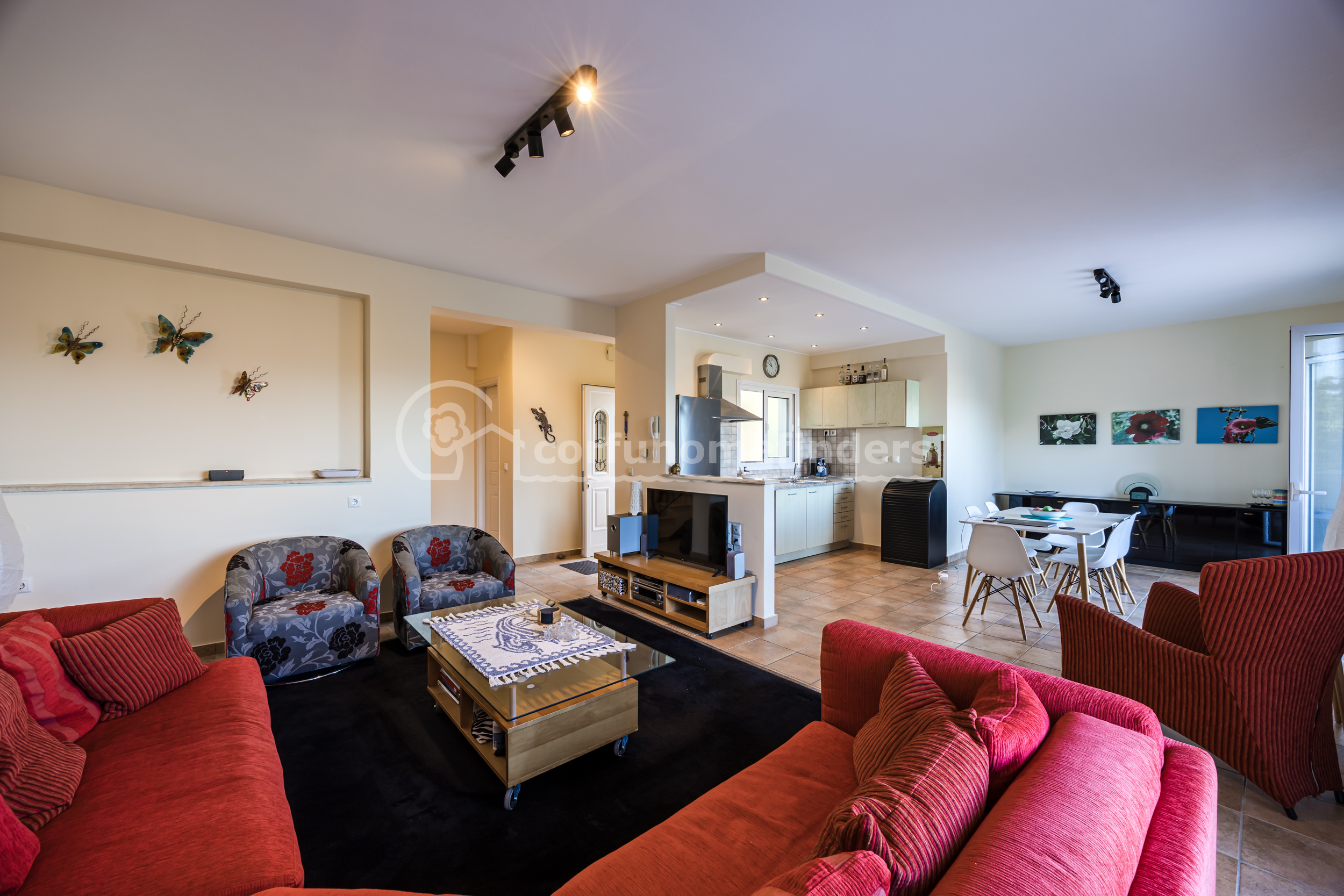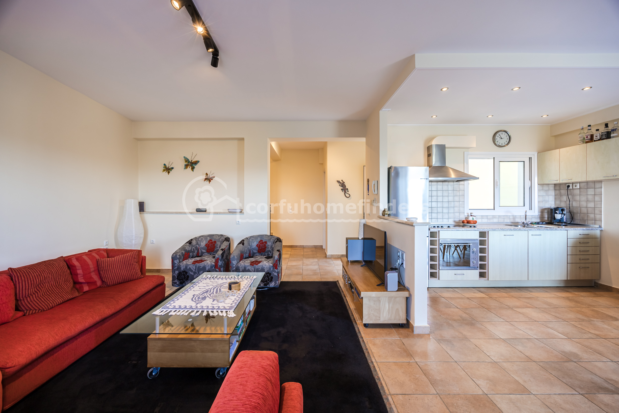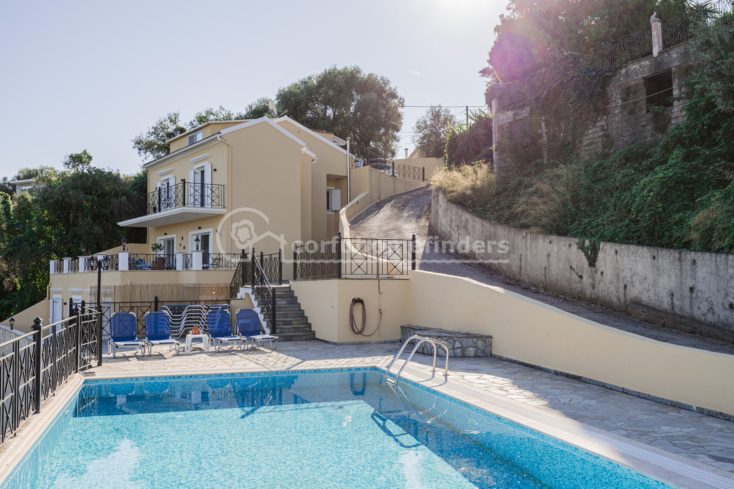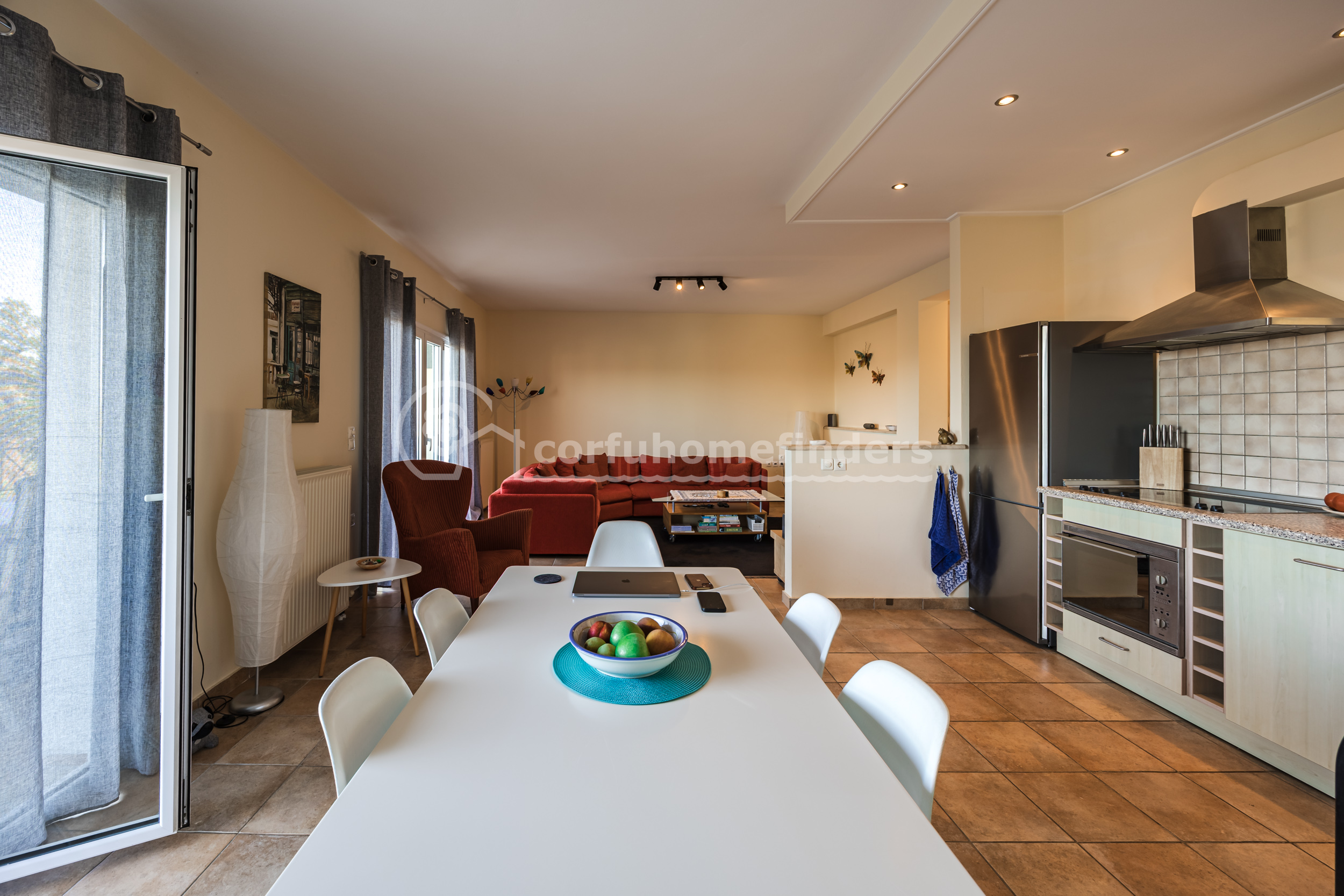 The house is conveniently located only a short drive from Corfu Town, and has easy access to beaches on both east and west coasts. Views stretch down to Corfu Town, past the airport and out to sea.