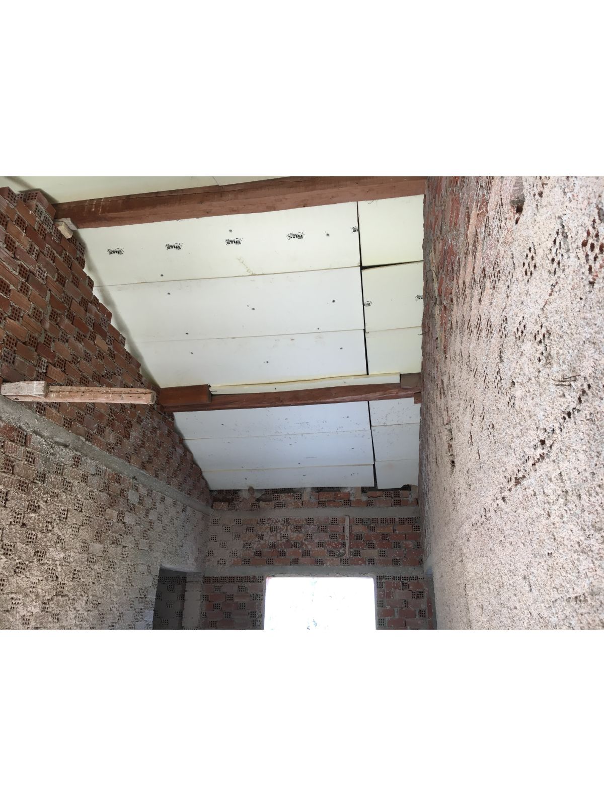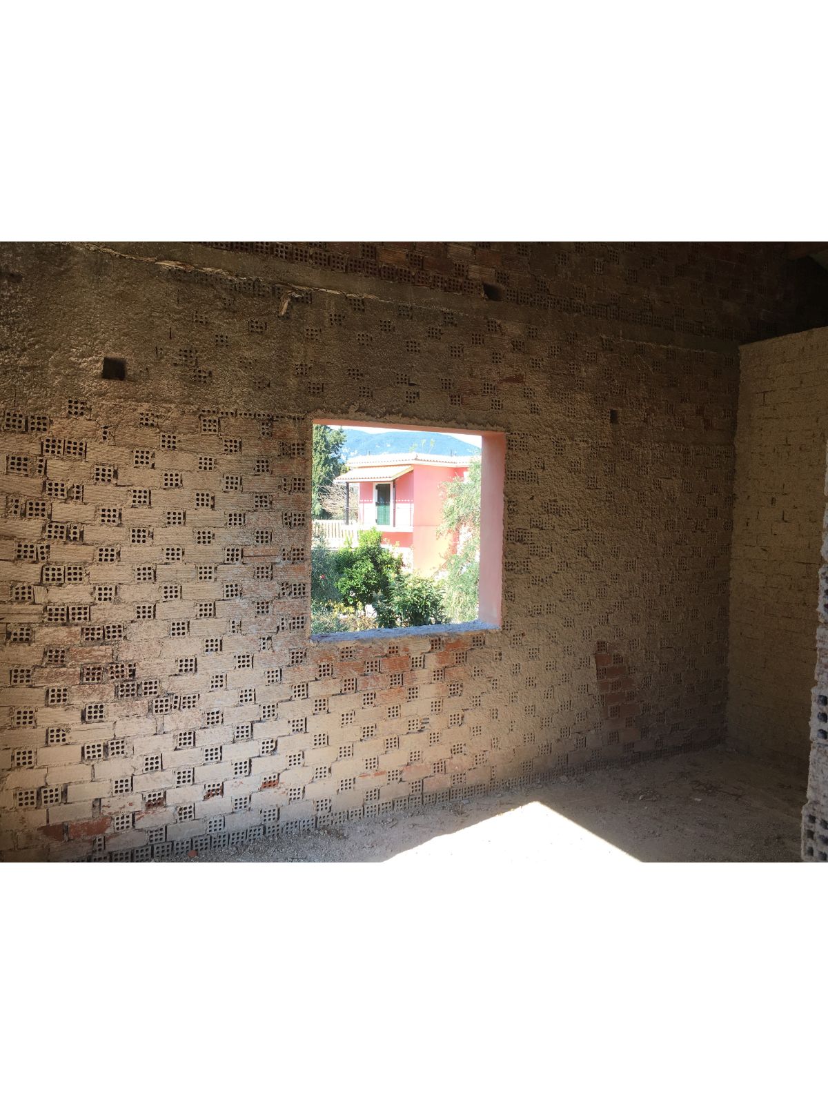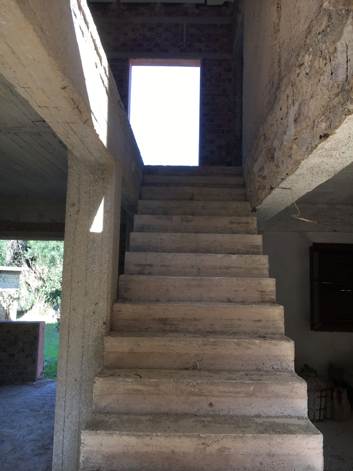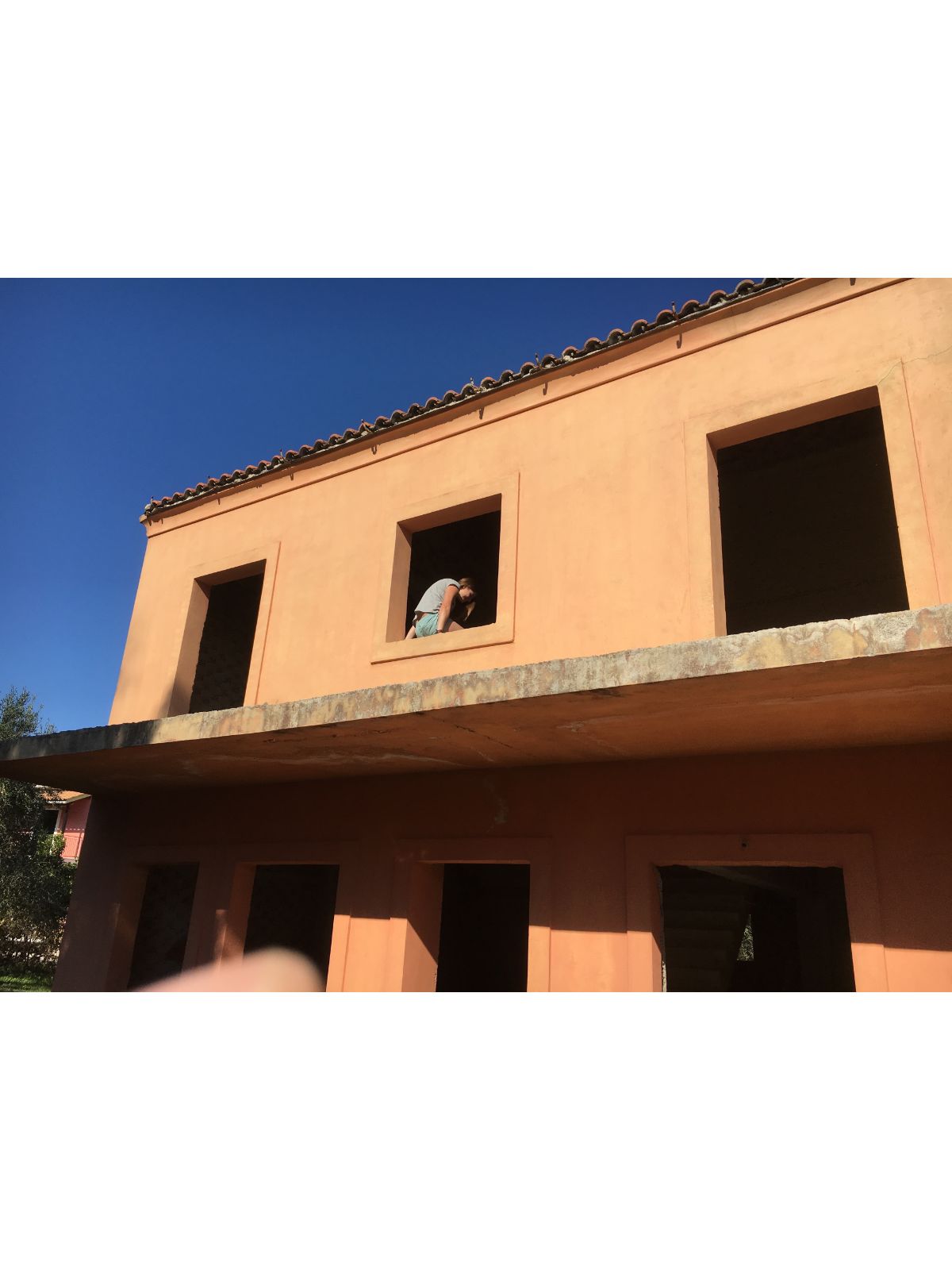 Intended to have three bedrooms upstairs, there are balconies at the front and back overlooking the garden and olive groves surrounding the plot.