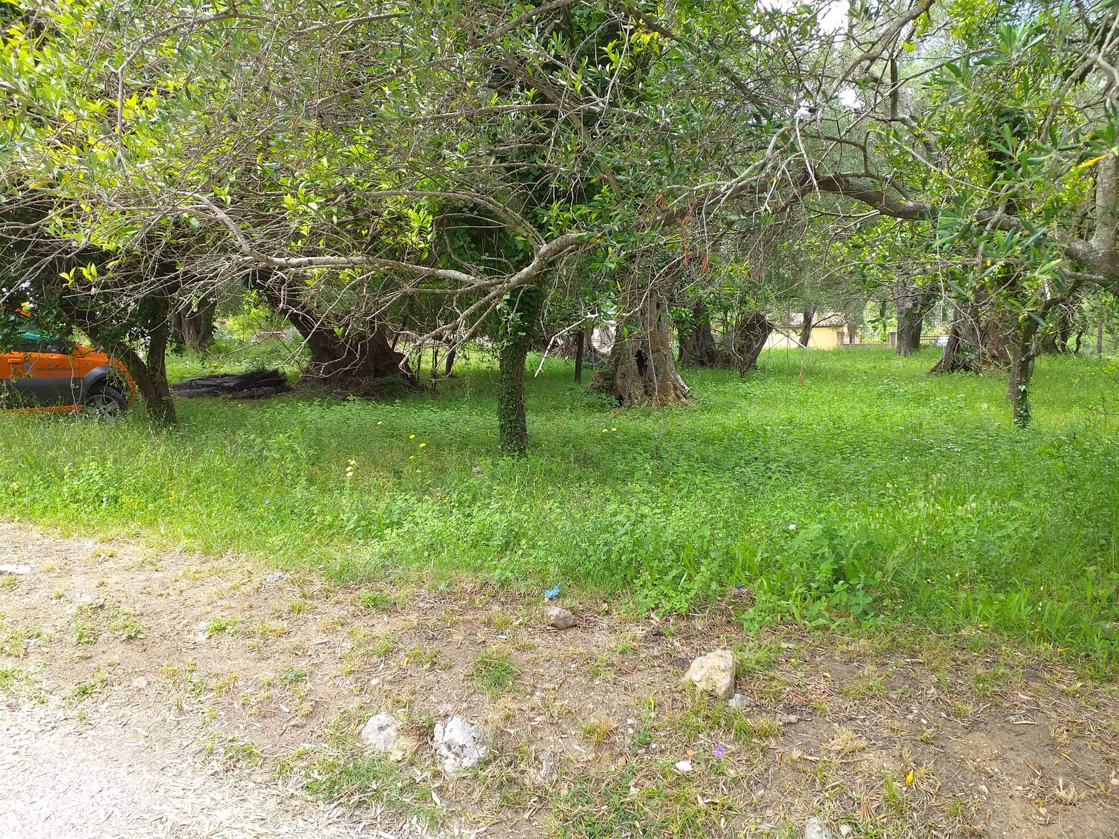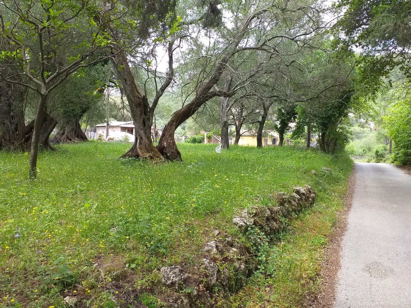 This building land is within village limits and has a few other houses close by. It is partly fenced and has access on two sides from narrow village roads. It is planted with several old olive trees.