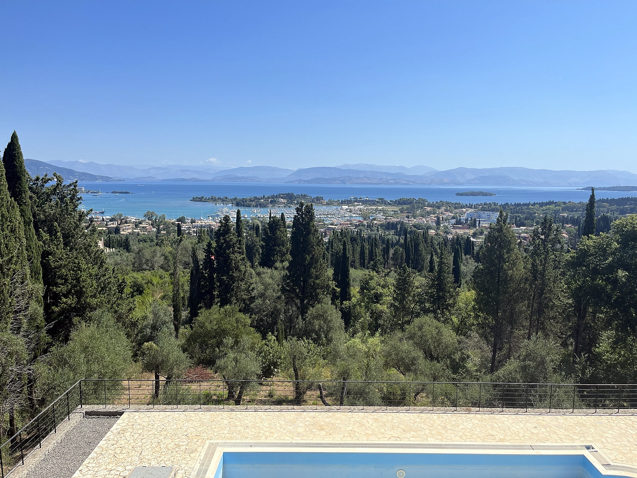 This villa has been built at the top of its plot and has the most beautiful view across the top of Gouvia Marina and out to sea. The area is a quiet residential location, only a short drive from Corfu town.