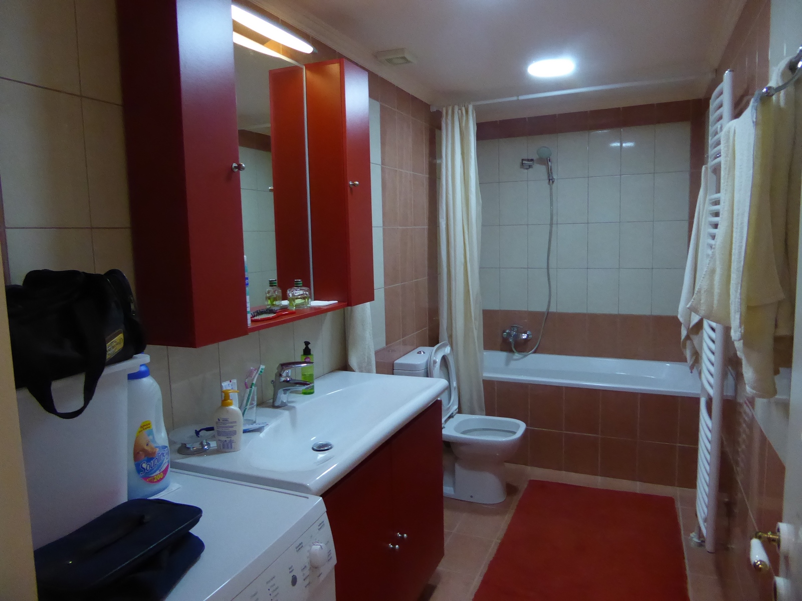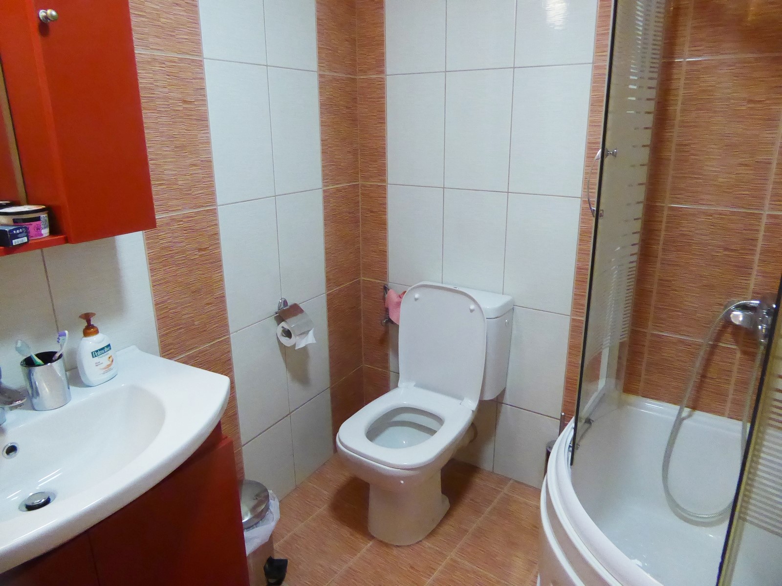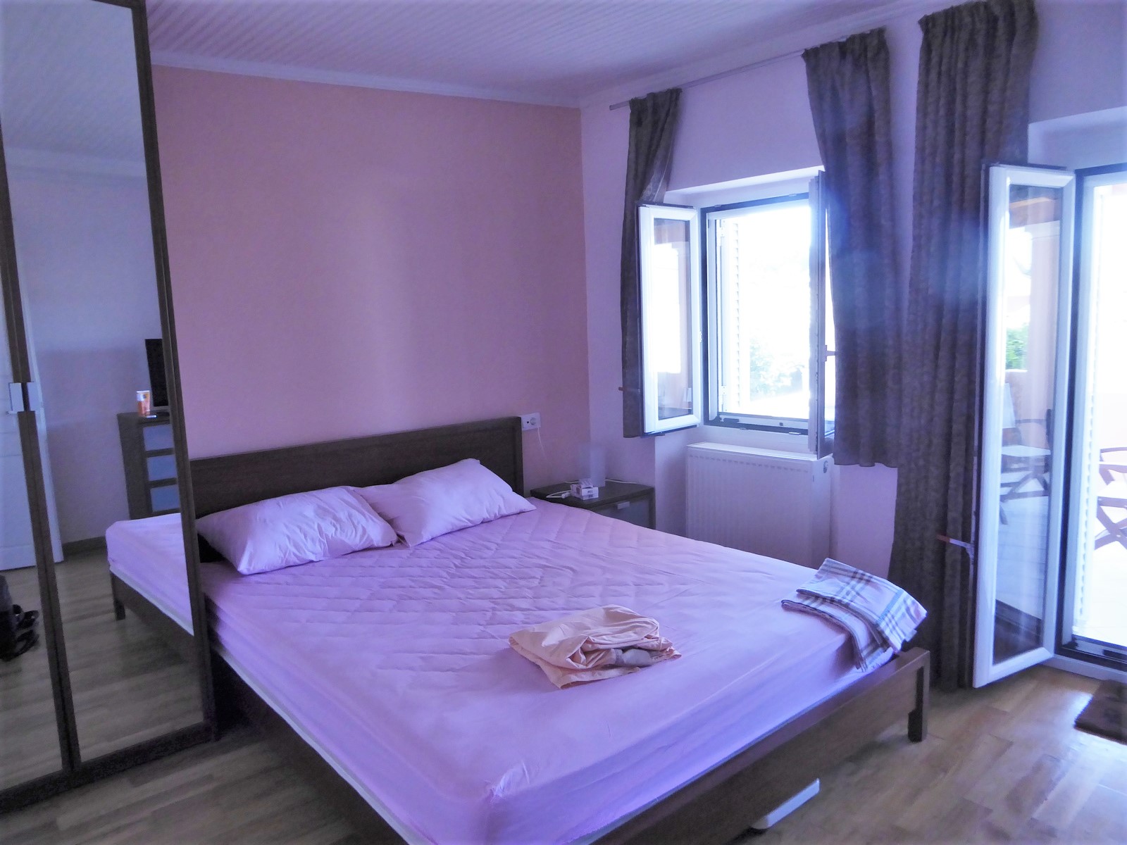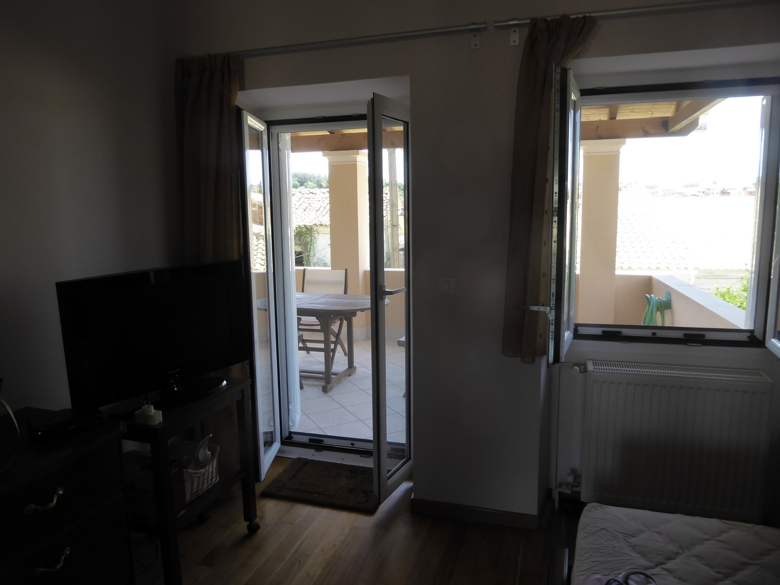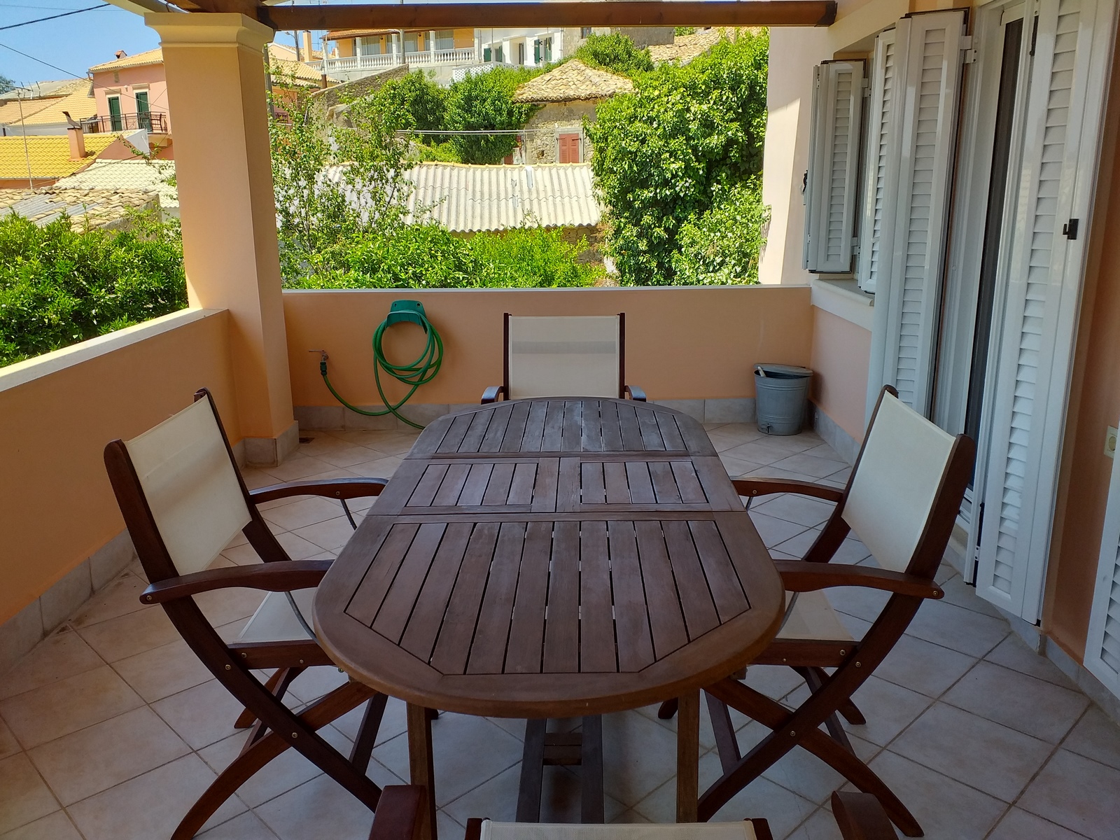 Inside there is a comfortable sitting room, with a kitchen area at the back, divided from the main room and a full bathroom with bath. Stairs lead up to two good sized double bedrooms with balconies and a half bath and shower room. There is also a mini kitchen on this floor.