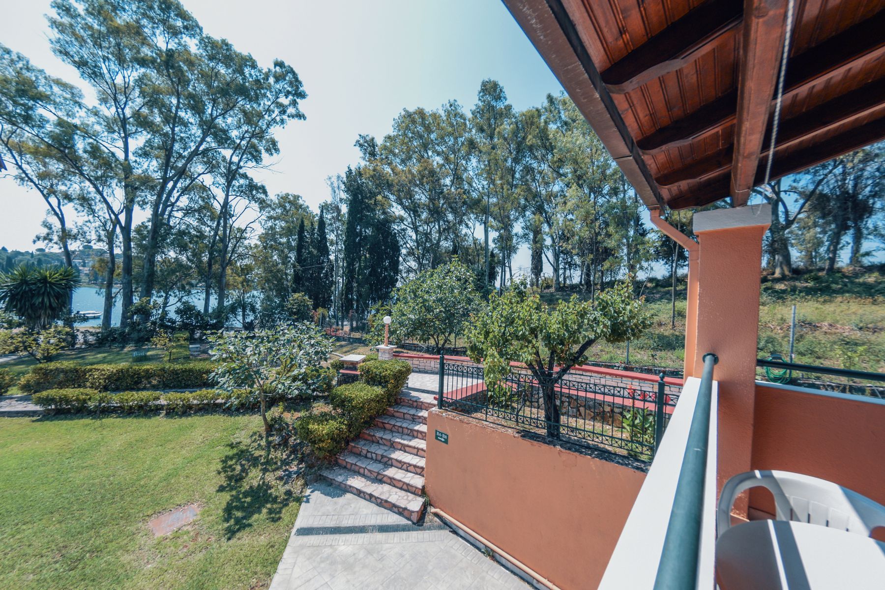 The upper block has a large parking area off the main road and steps down to ten apartments. Each has a balcony overlooking the pool and the view across the bay.