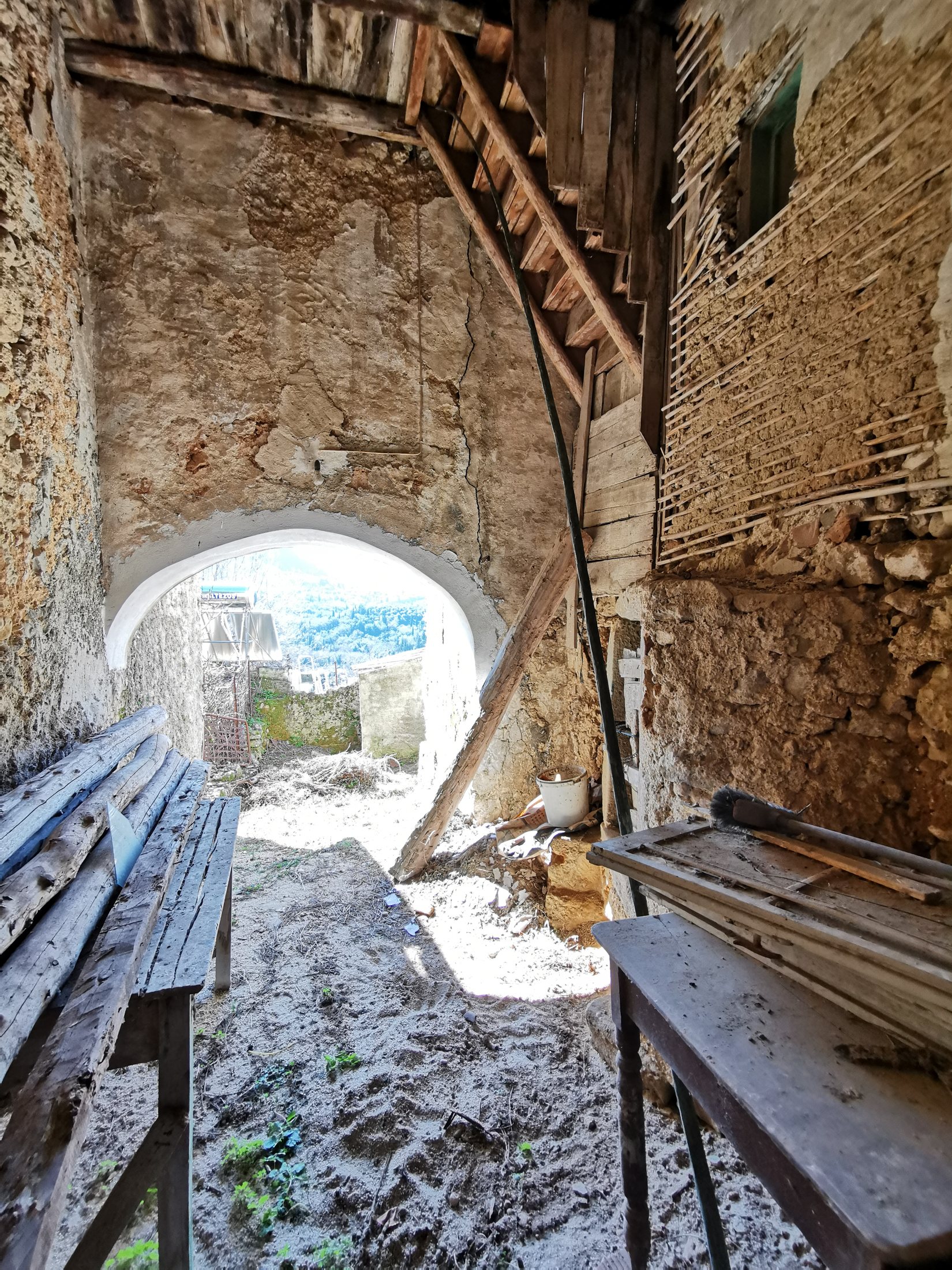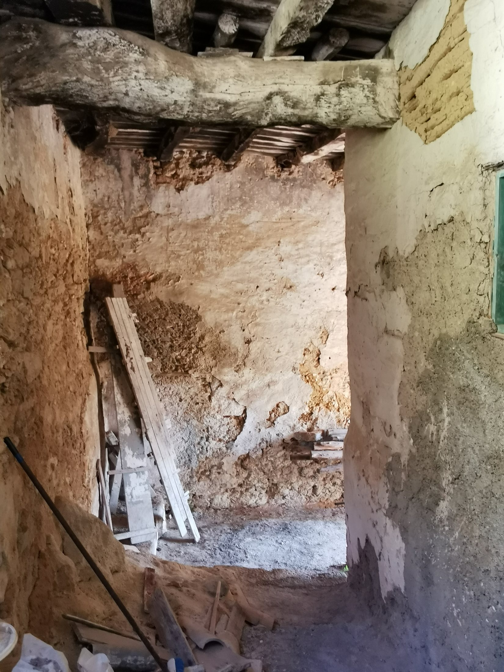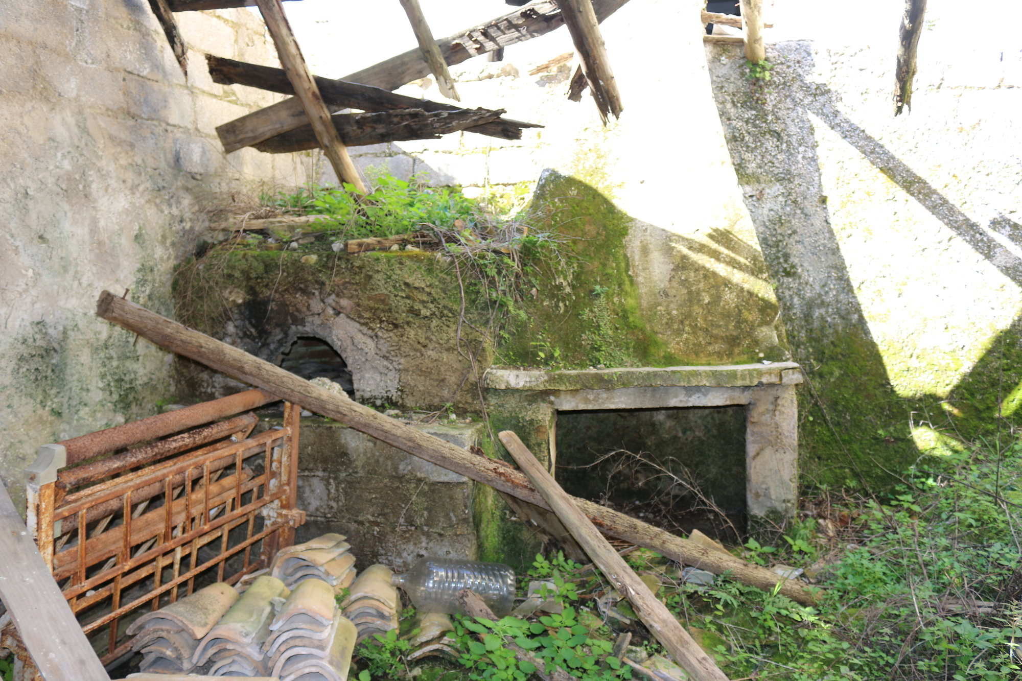 The courtyard at the back currently houses a small tumble-down building which was once the kitchen and has a wood oven and fireplace.