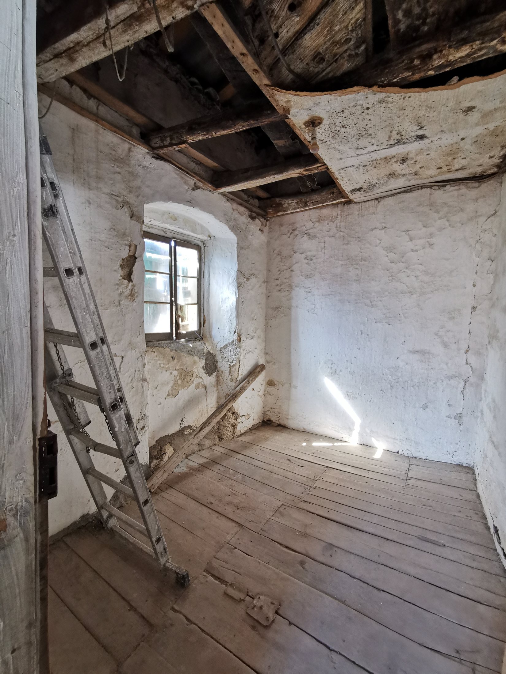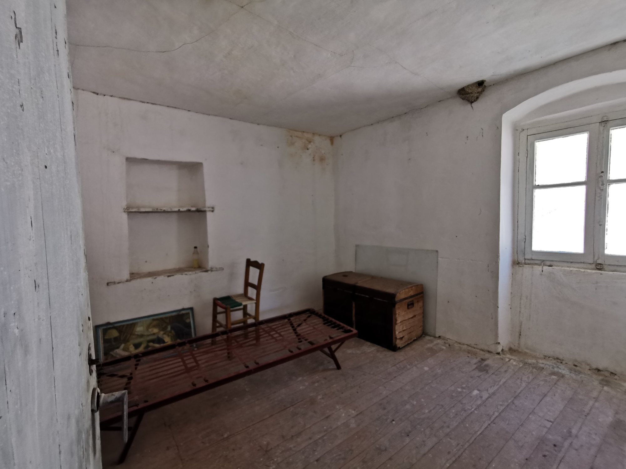 This house is situated at the edge of the village and has parking right outside. The entrance is through a large vaulted gate which leads into a hallway. A door leads through into a room with a window looking out over the courtyard towards the view. From this room a staircase leads up to a large, bright landing and three further rooms, each with windows making them nice and bright.
