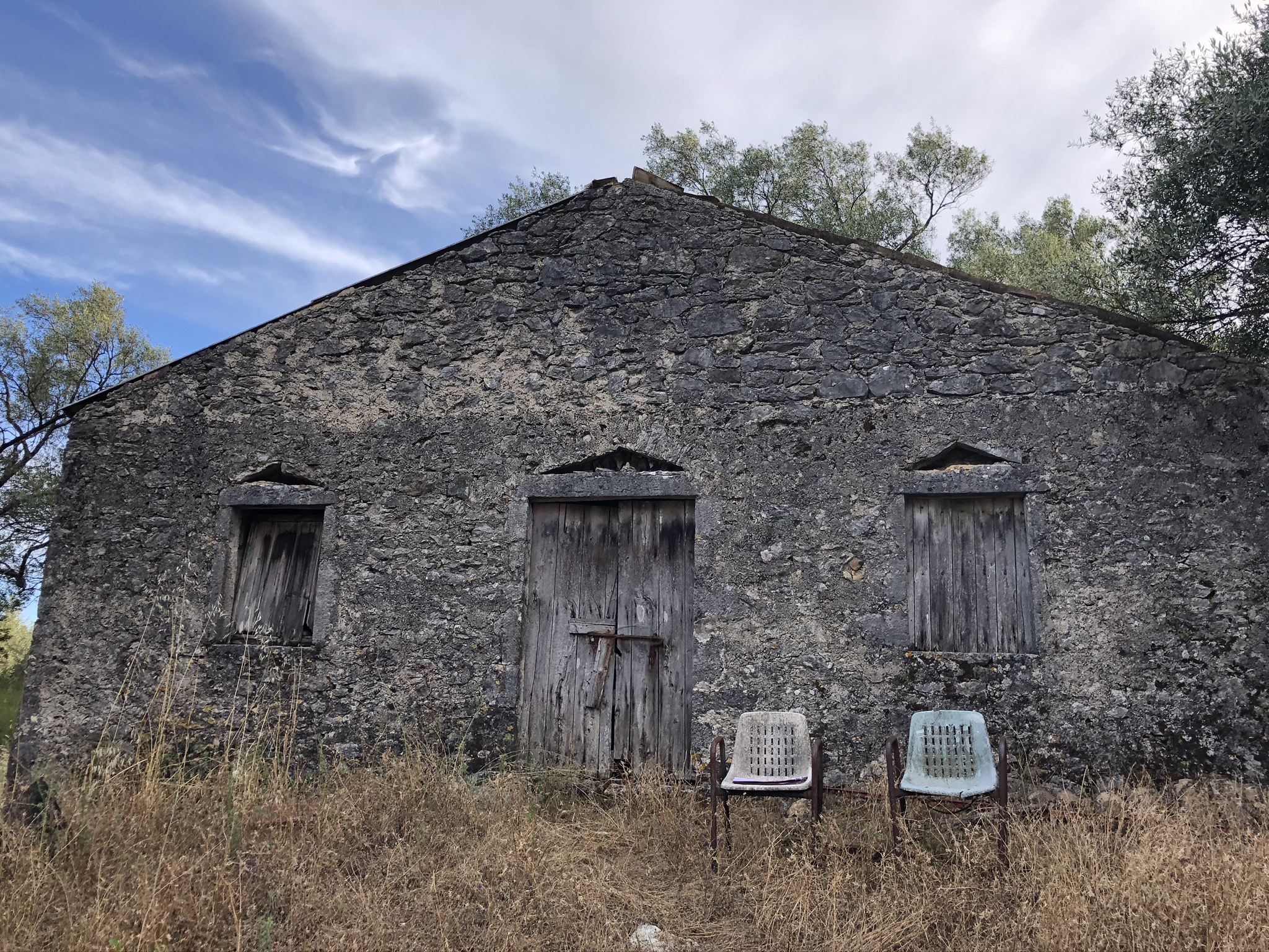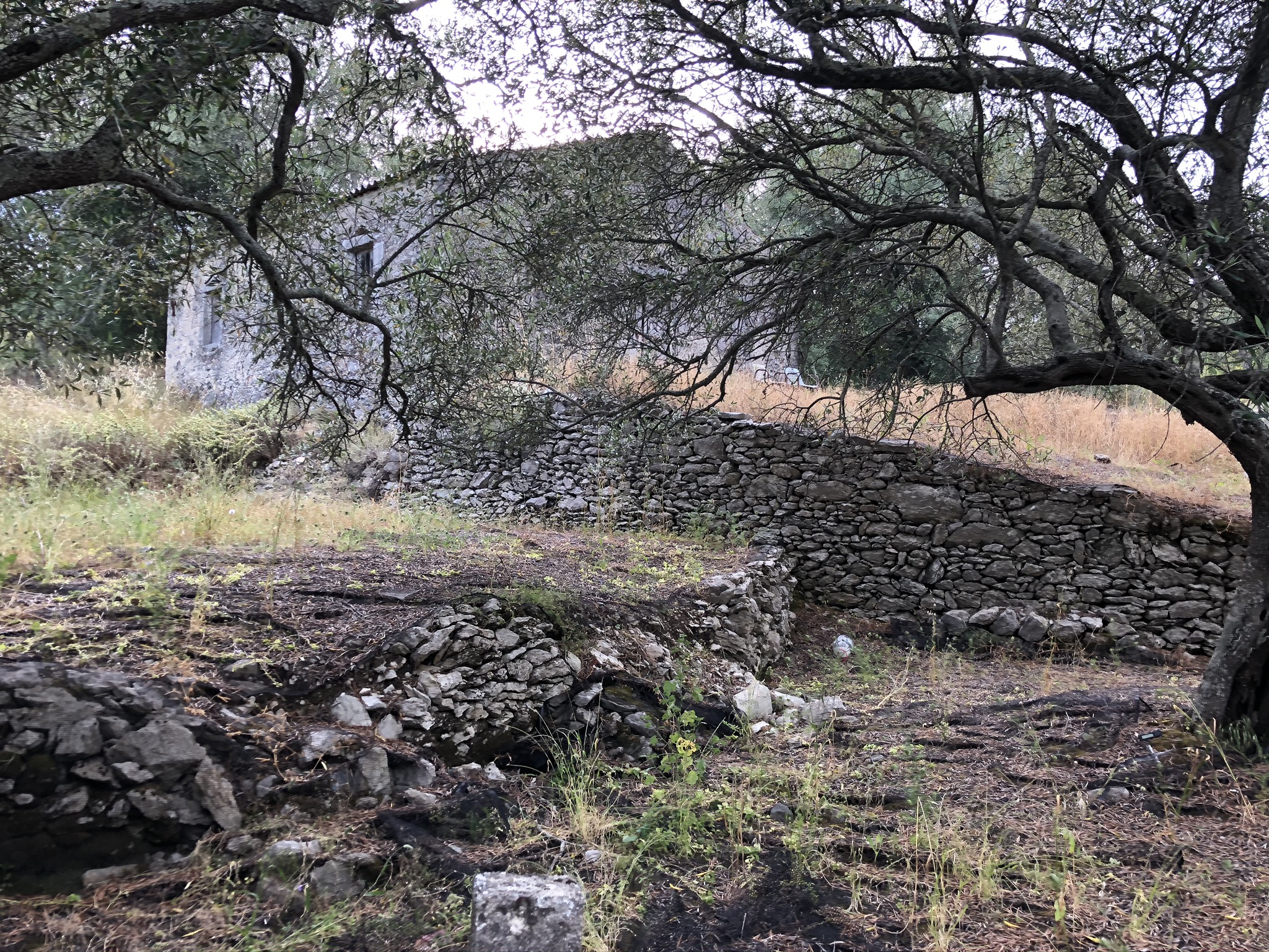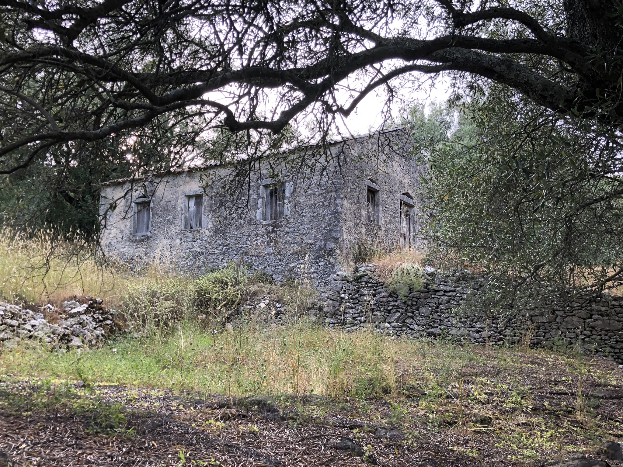 On the upper side of the lively village of Spartilas, this lovely old stone barn sits at the top of the olive grove, so enjoys beautiful views across the village and out to sea.