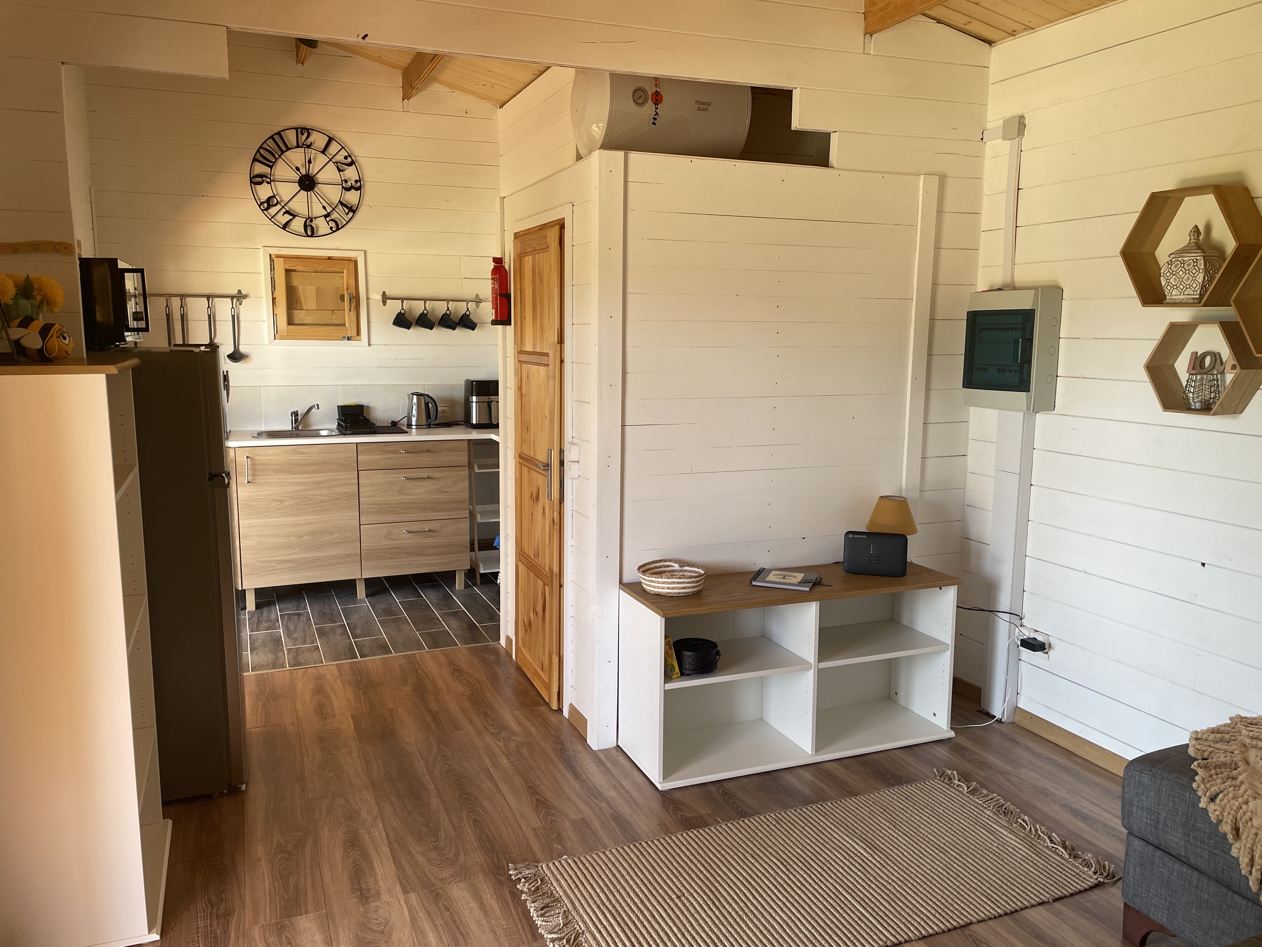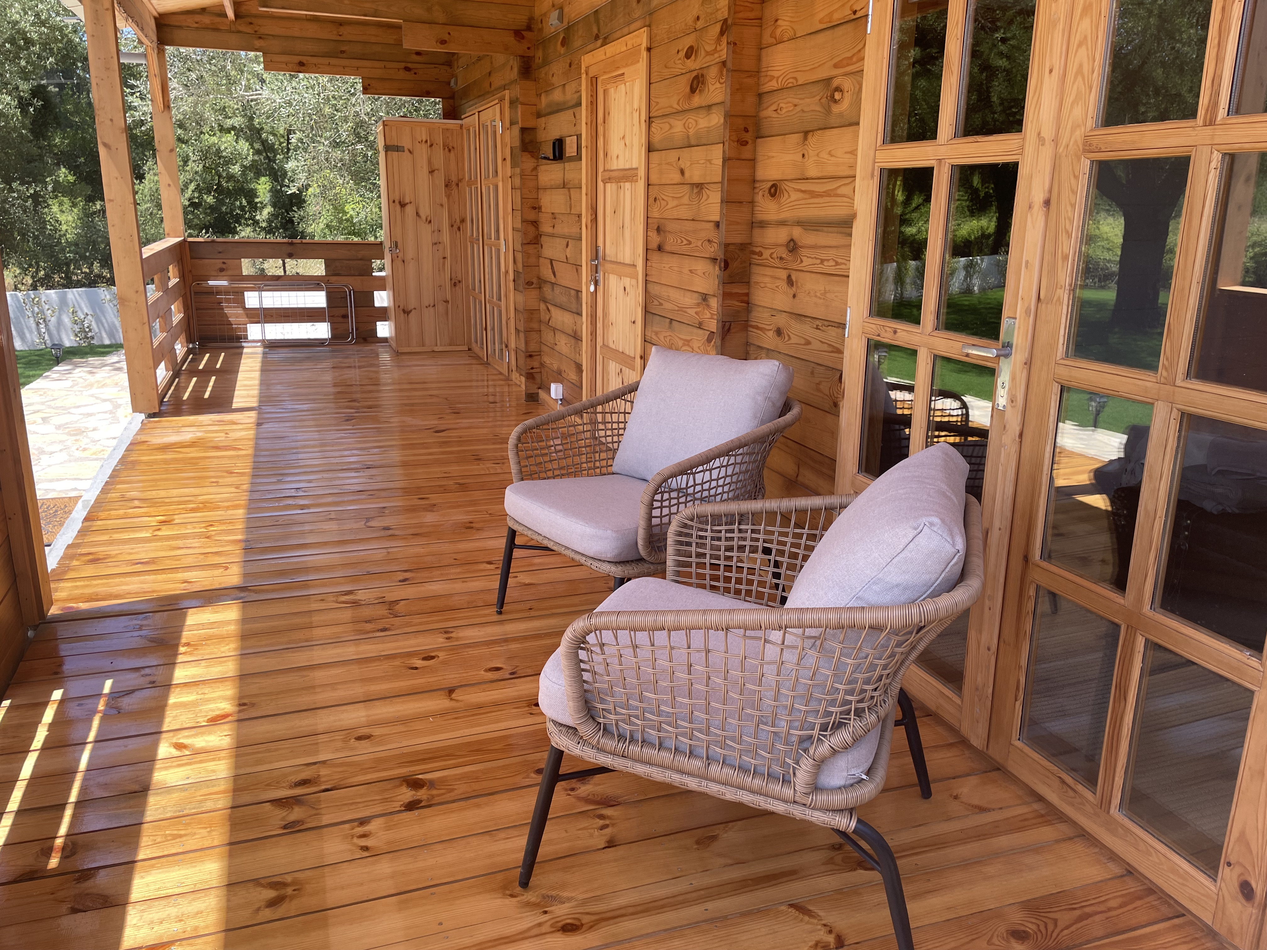 In the heart of the peaceful countryside, this unique property offers two charming one-bedroom wooden lodges set within a serene natural landscape. Perfectly designed for relaxation or as a ready-made holiday rental opportunity, each lodge measures 54m2 and features a cozy sitting area with a kitchenette, a comfortable bedroom, and a modern shower room. A/C (heating and cooling) has been installed in both lodges.
