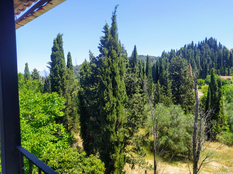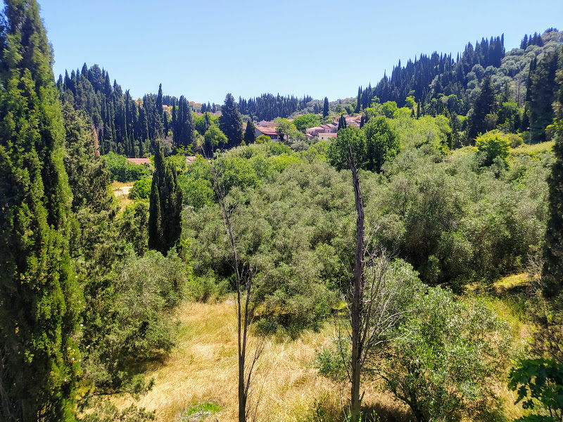 Within the large garden are a variety of fruit trees, cypress trees and olive trees.