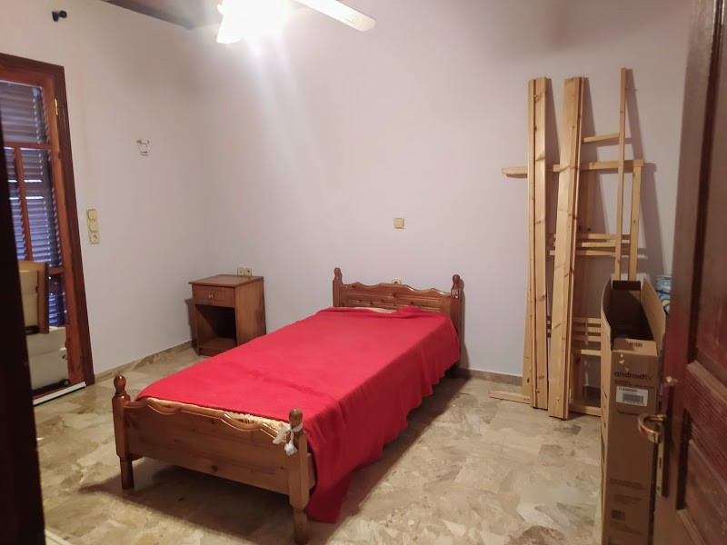 The back balcony is 40m2, overlooking the mountains and the village of Armenades.