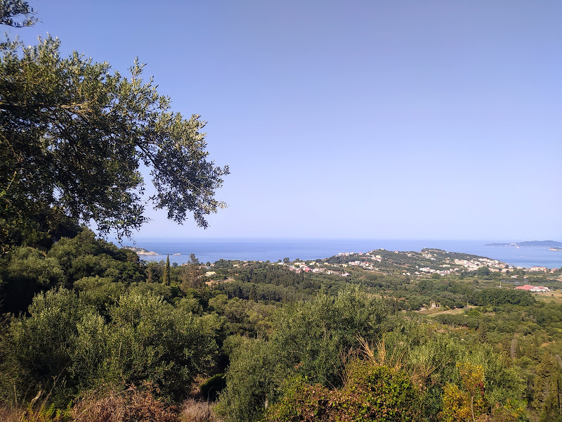 Settled on a hilltop the views are spectacular over the sea and the villages of Arillas and St Stefanos.