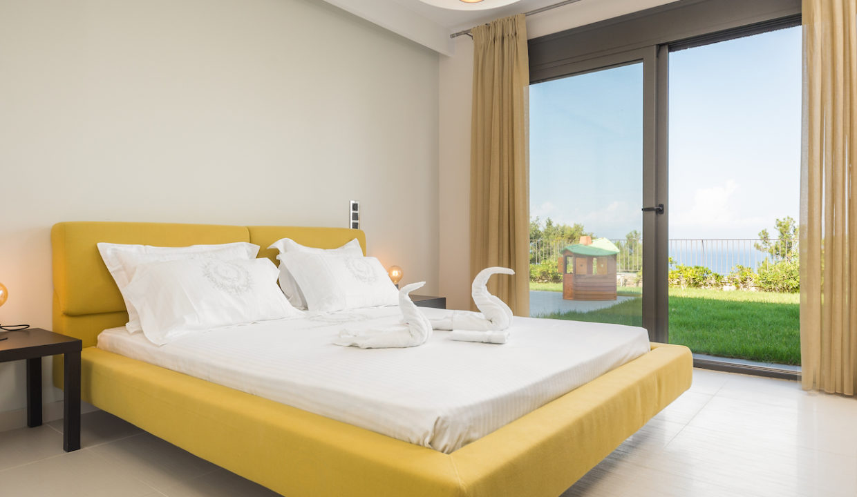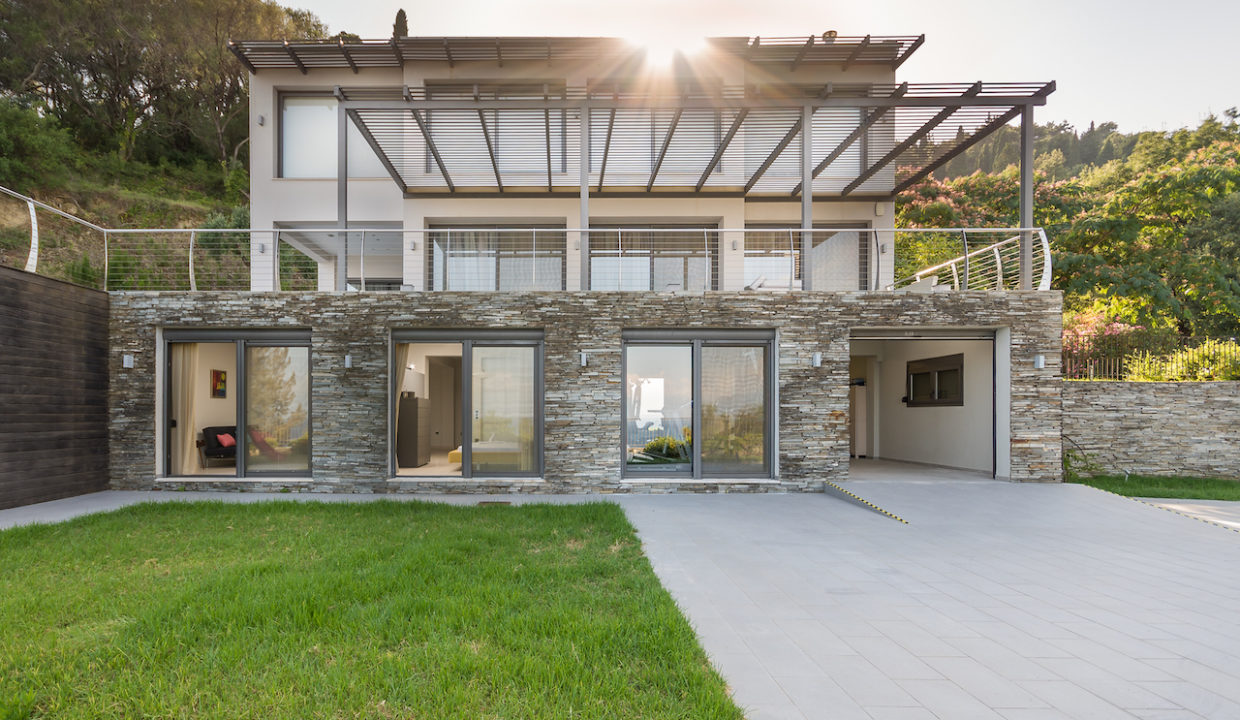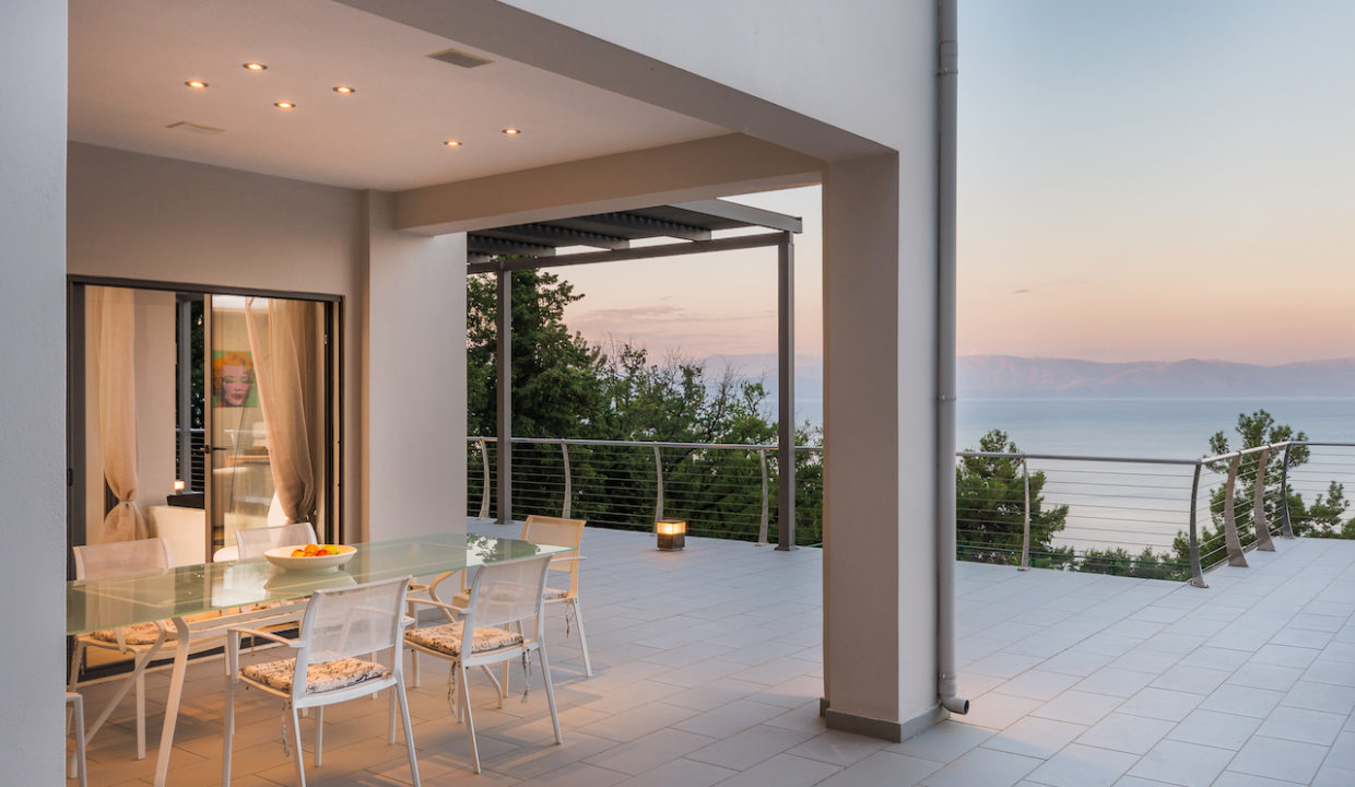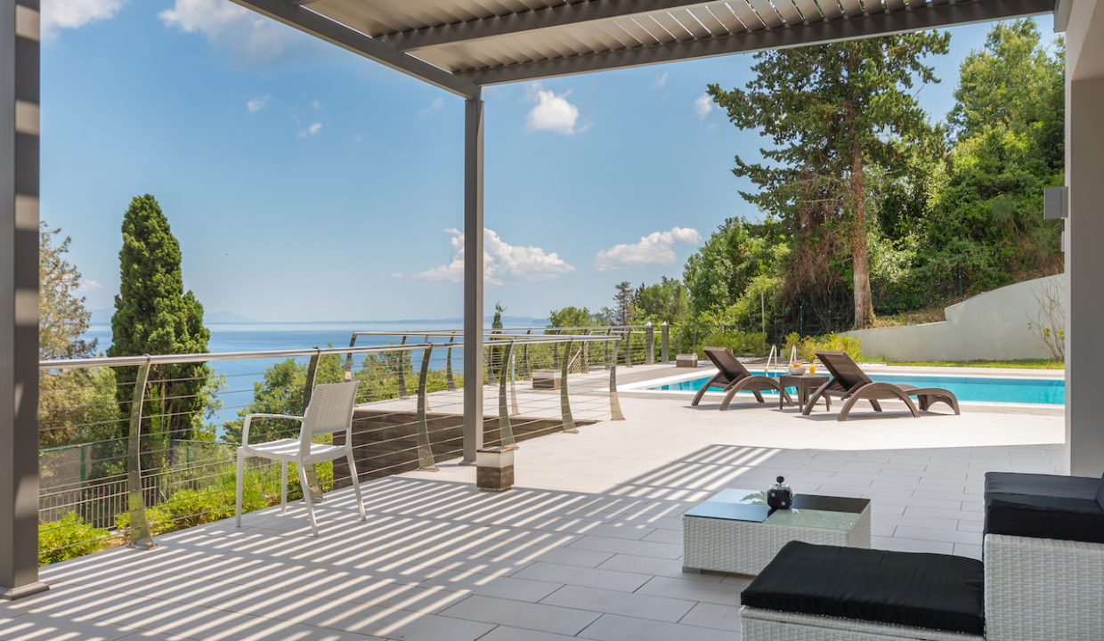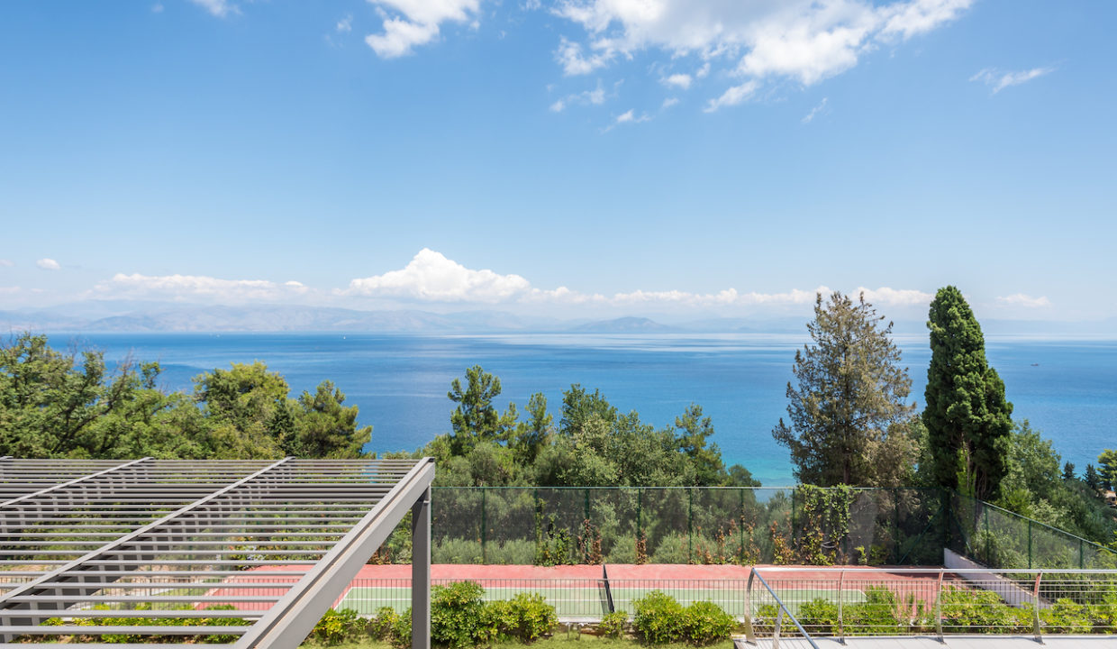 This fabulous 5 bedroom villa stands on the hillside just below the famous Achilleon Palace, and a short drive down to the beach, shops and tavernas of Benitses. The property has been designed to make the most of its peaceful location, and rural surroundings.