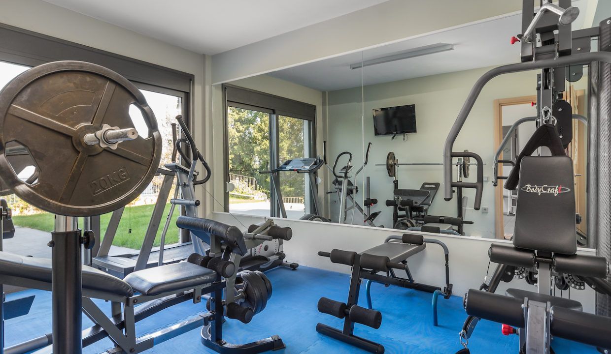 A separate studio with direct garden access. This has a bedroom with en suite bathroom, a gym area and utility room/kitchenette.