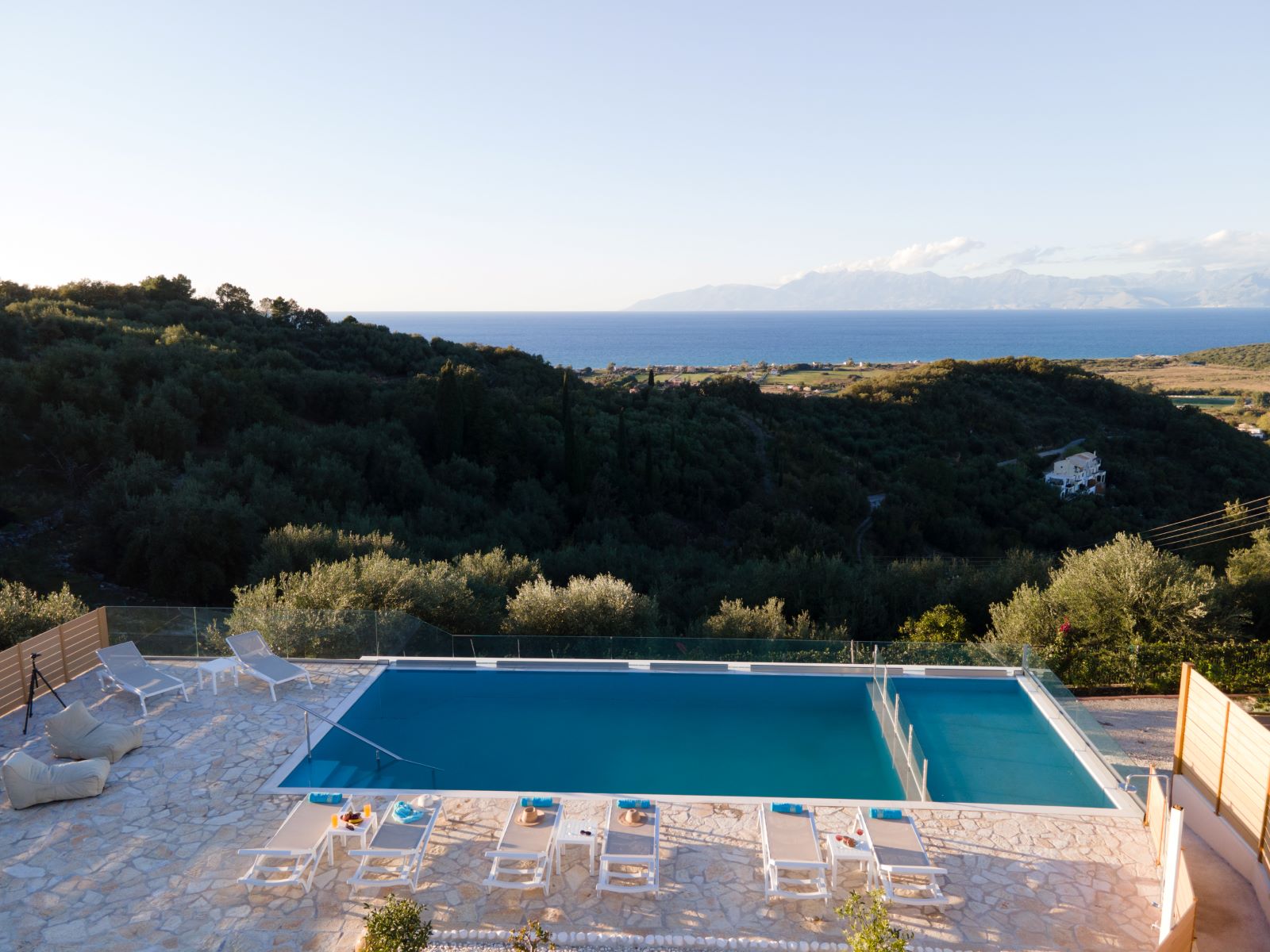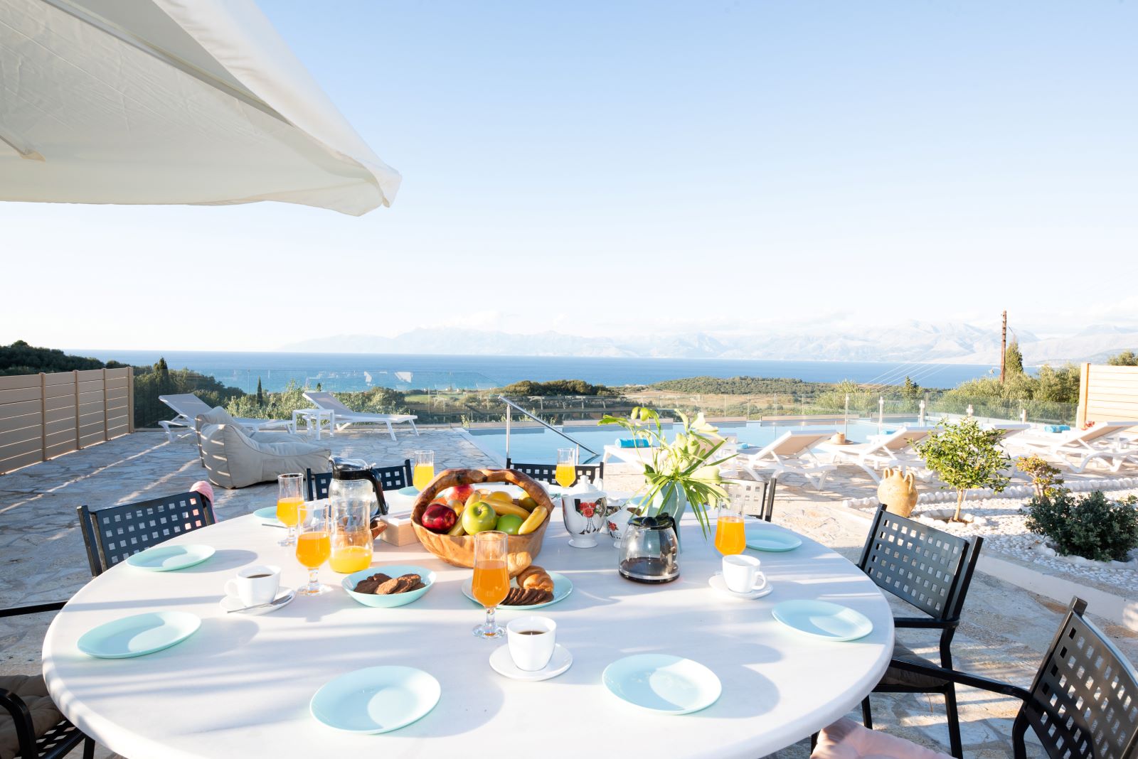 The outdoor area is spacious with 360 degree panoramic views, a BBQ area with outdoor dining and an 8,5 meters swimming pool plus a 4,5 kids pool.