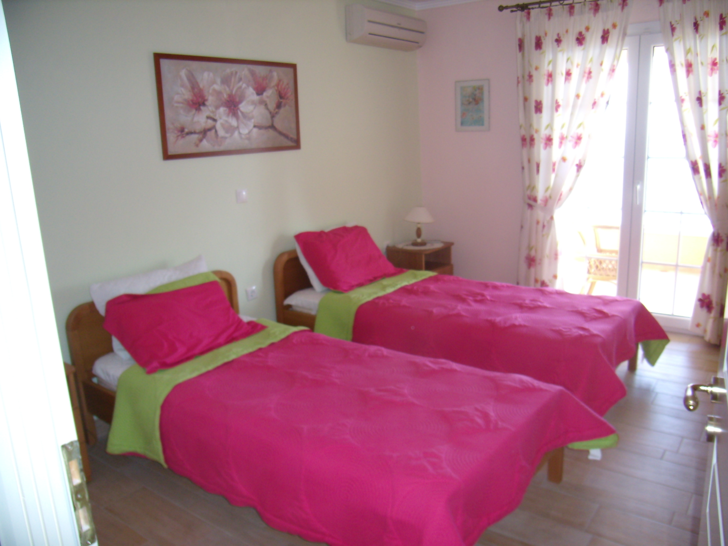 Villa Ioanna is accessed via a private paved driveway leading up to the parking area. Stairs take you up through the terrace garden to the pool terrace, with ample space for sunbathing and outdoor dining.