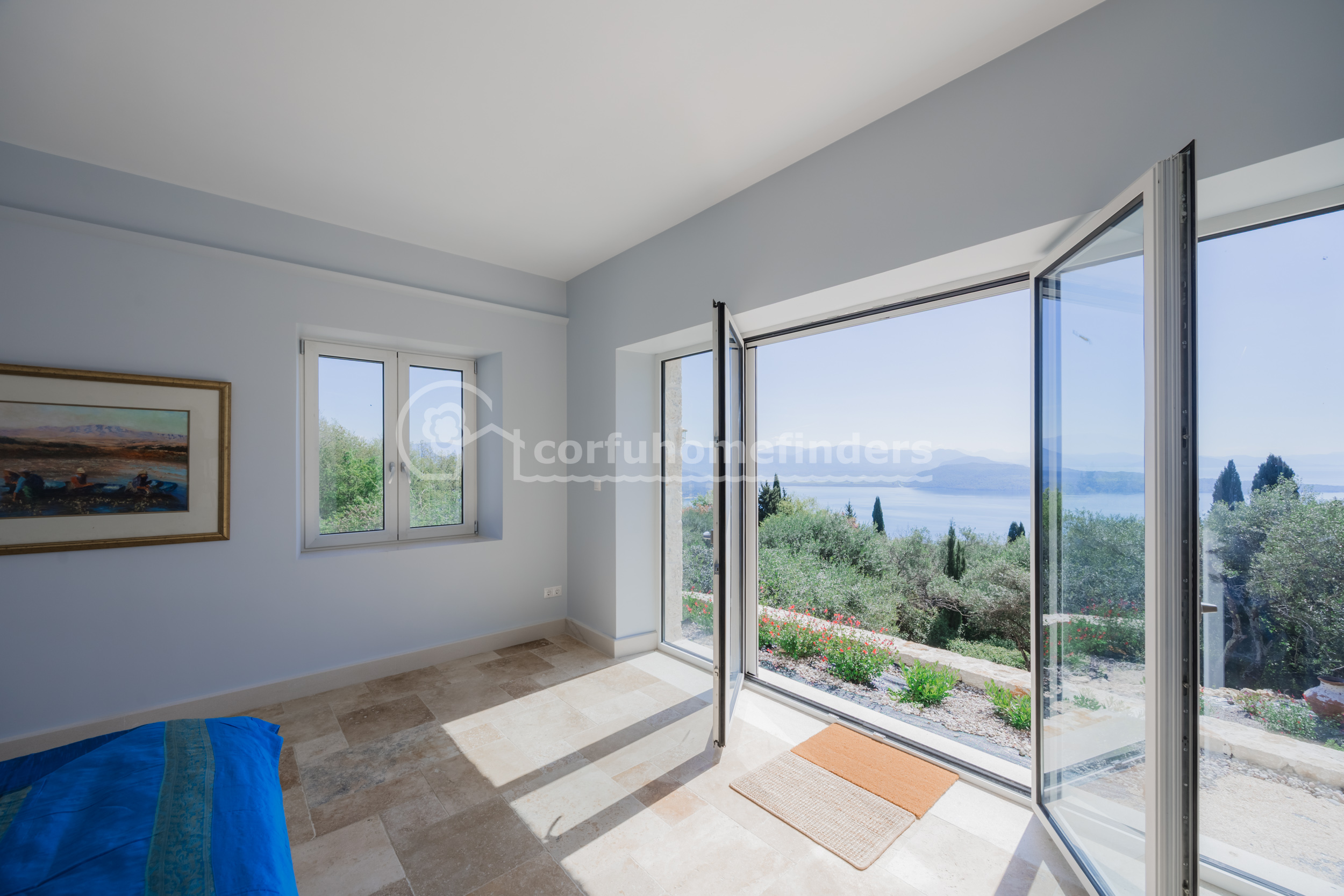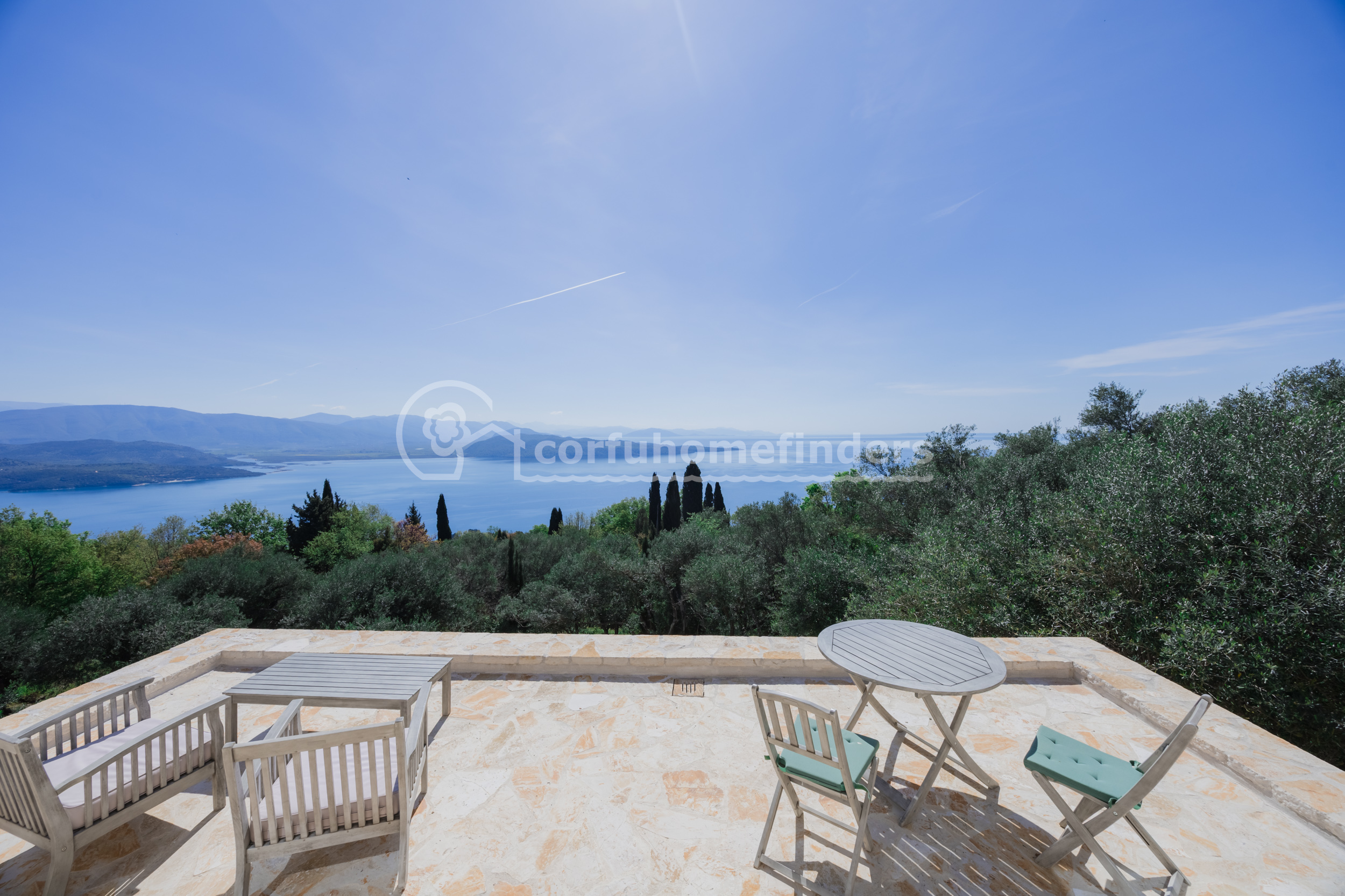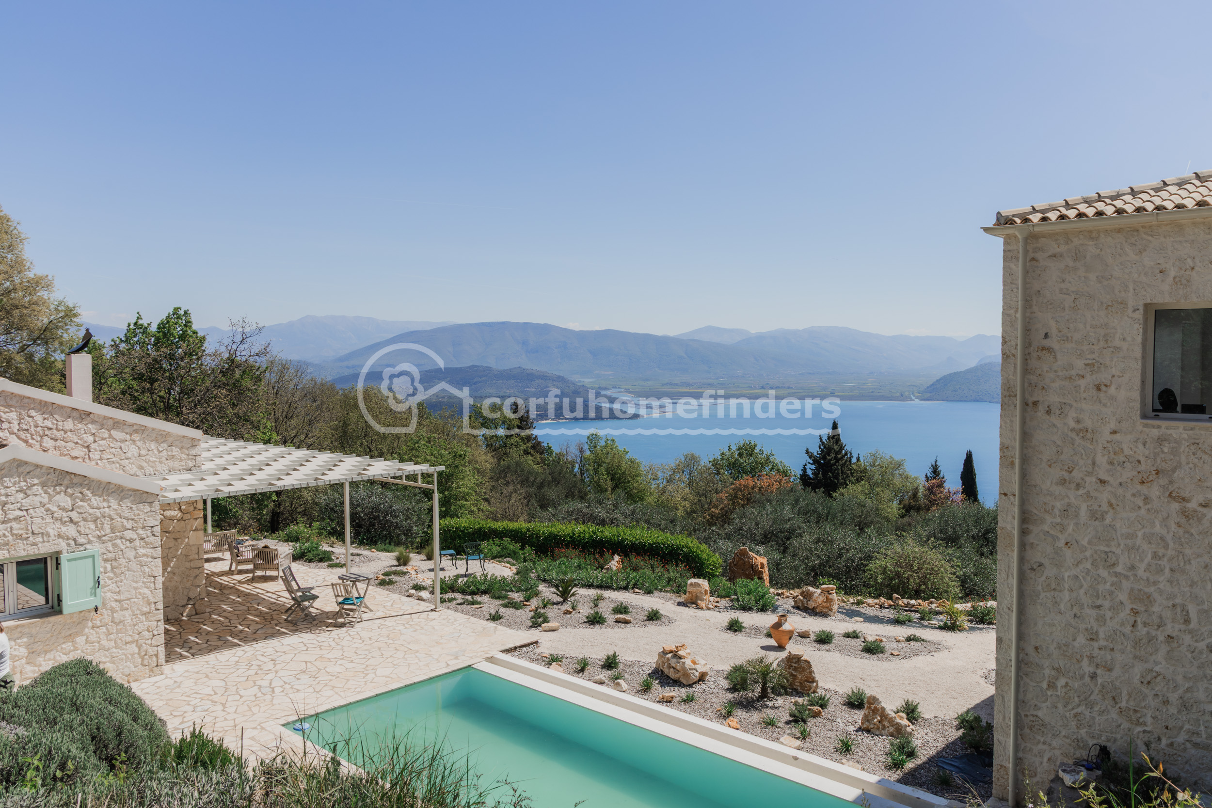 This pretty, stone built villa in two parts is tucked away in a secluded spot and has been cleverly designed to maximise the fabulous views. With a totally uninterrupted vista out to sea, and no other visible houses or electricity cables, the views take in the Albanian mountains, the Greek mainland and across to Corfu town - they really are superb.