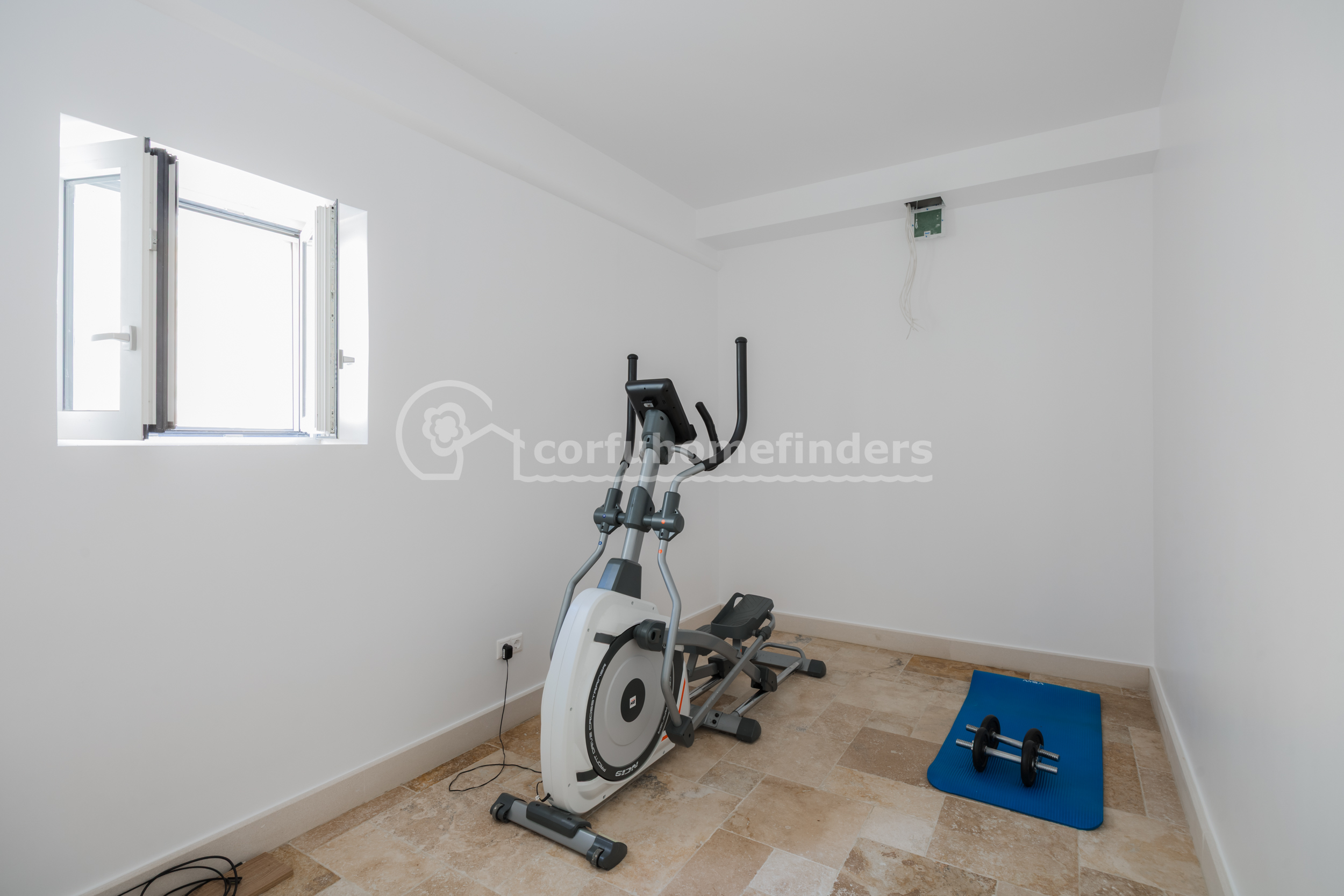 Below the house is a space which has been set up to be a gym with electrics in place for TV entertainment whilst exercising, and plugs at floor level for gym equipment. The second, very spacious room on this level is intended to be an art gallery. Either of these rooms could be turned into further bedrooms.