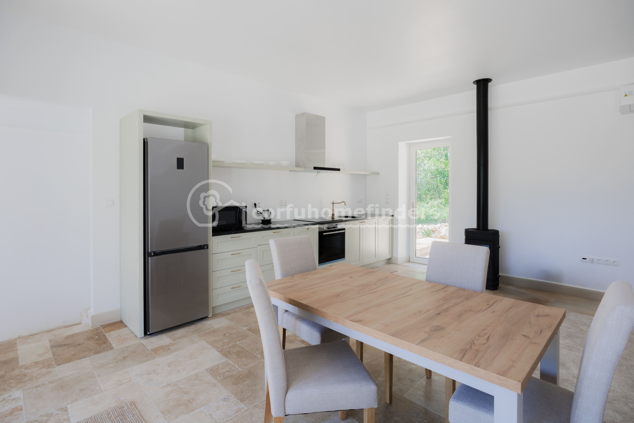Both villas have marble floors, full double glazing, solar heating and energy woodburners, virtually new kitchen appliances including induction stoves, self-cleaning ovens, dishwashers and pull-out garbage bins. High speed (fibre) internet is available throughout. The thick stone walls of both villas ensure that they remain cool in the summer months, but warm and cozy during the winter. Finally, there are two water tanks on the property - one 10m3 above ground tank and one 20m3 below ground which are linked and together supply the whole property.