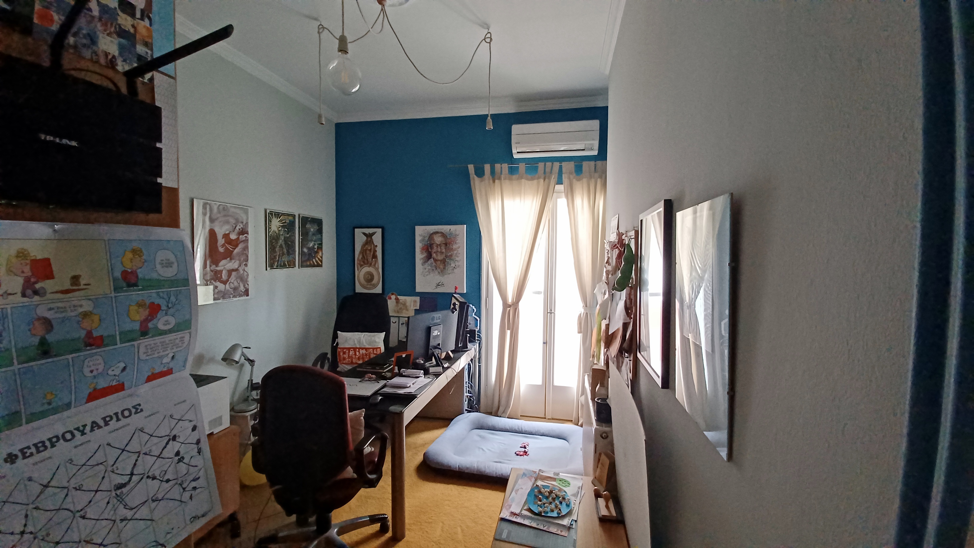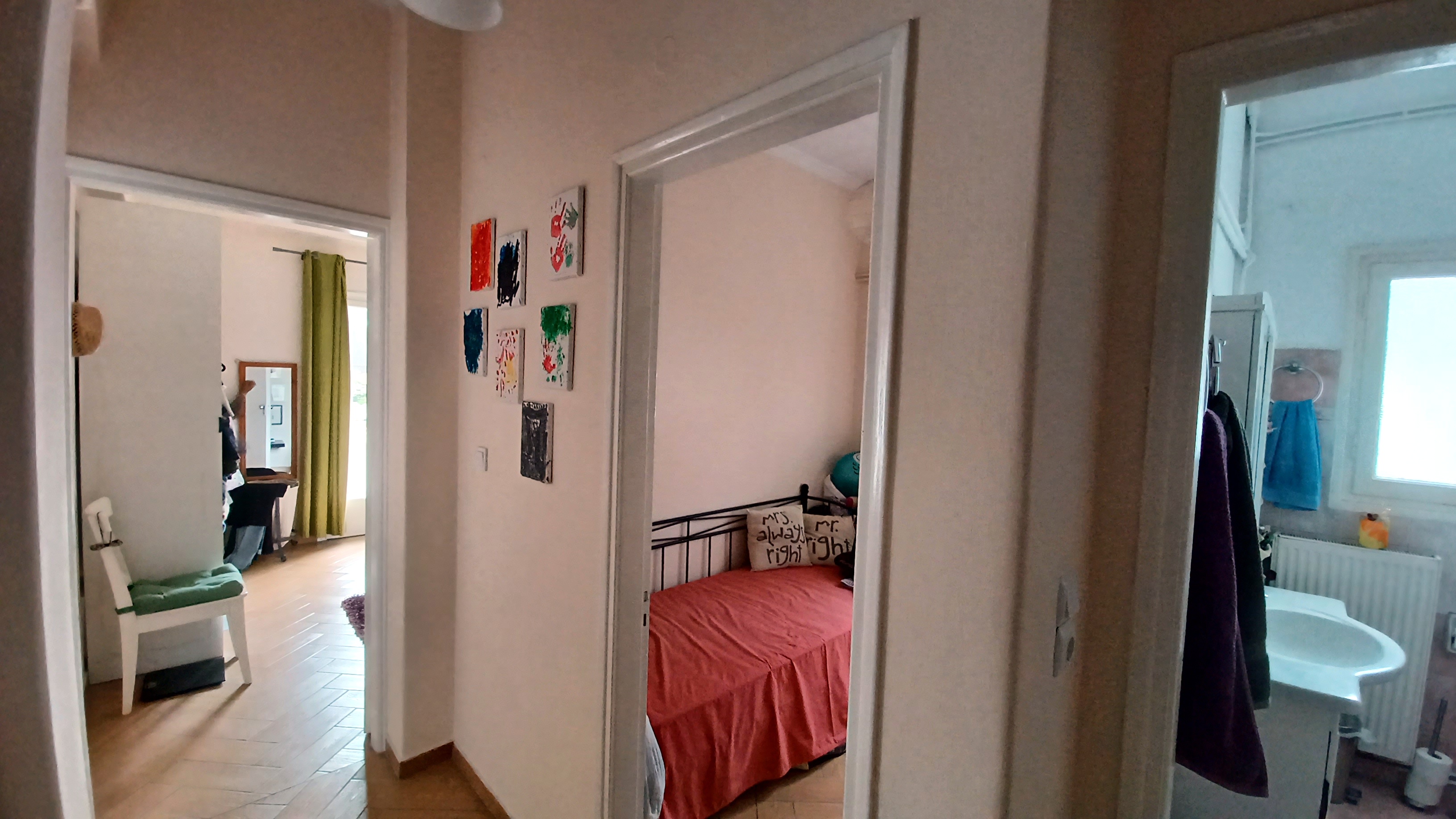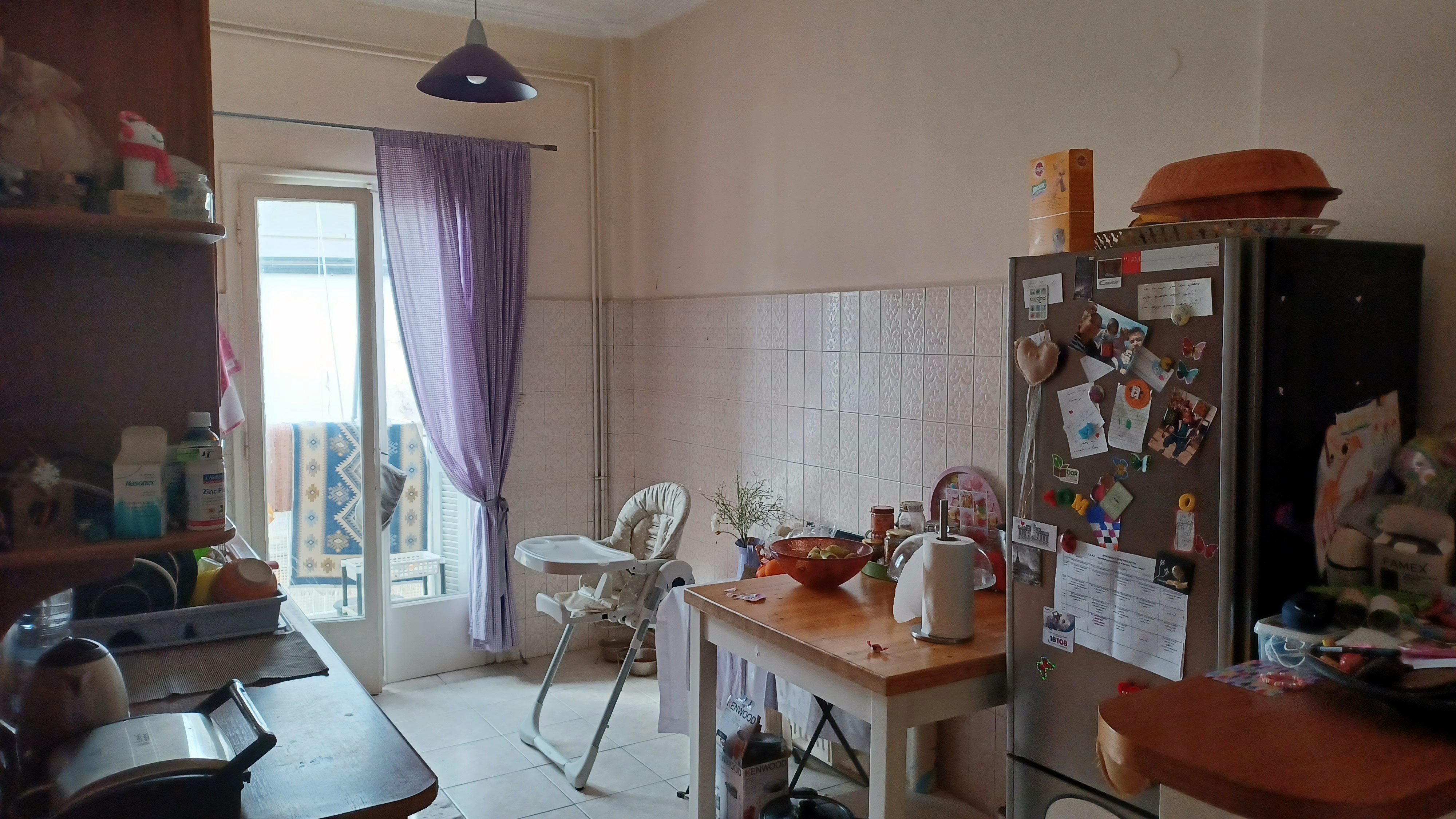 The apartment is on the fourth floor of a residential building, on a side street just off Alexandras Avenue. Stairs lead up to the apartment which is on the top floor.