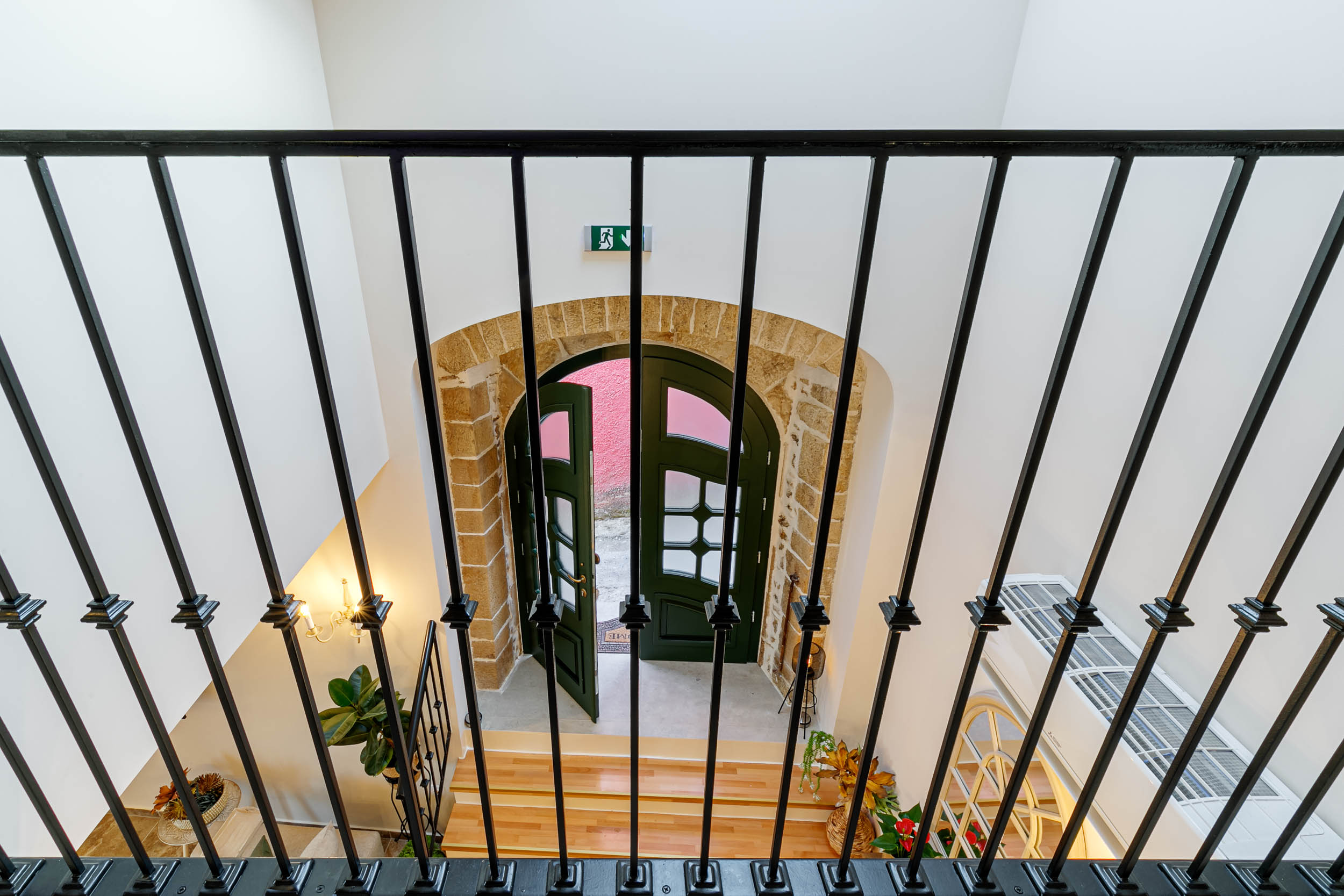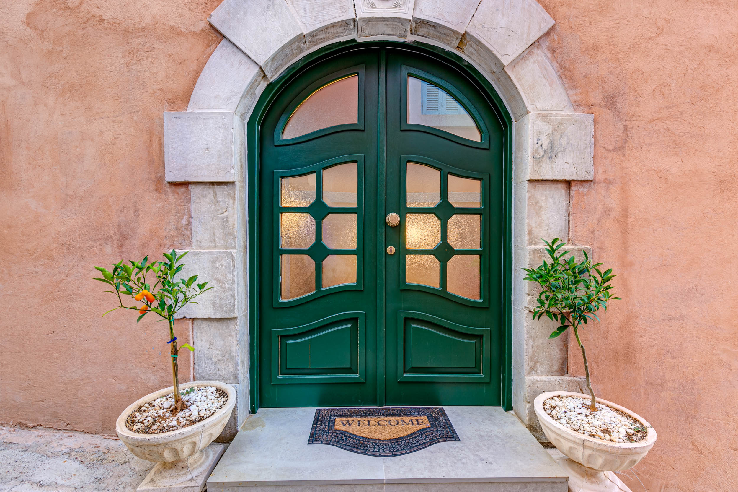 With a little terrace to the front of the house one can enjoy the activity of the village. To the side of the house, up a narrow cobblestoned footpath is the imposing entrance.