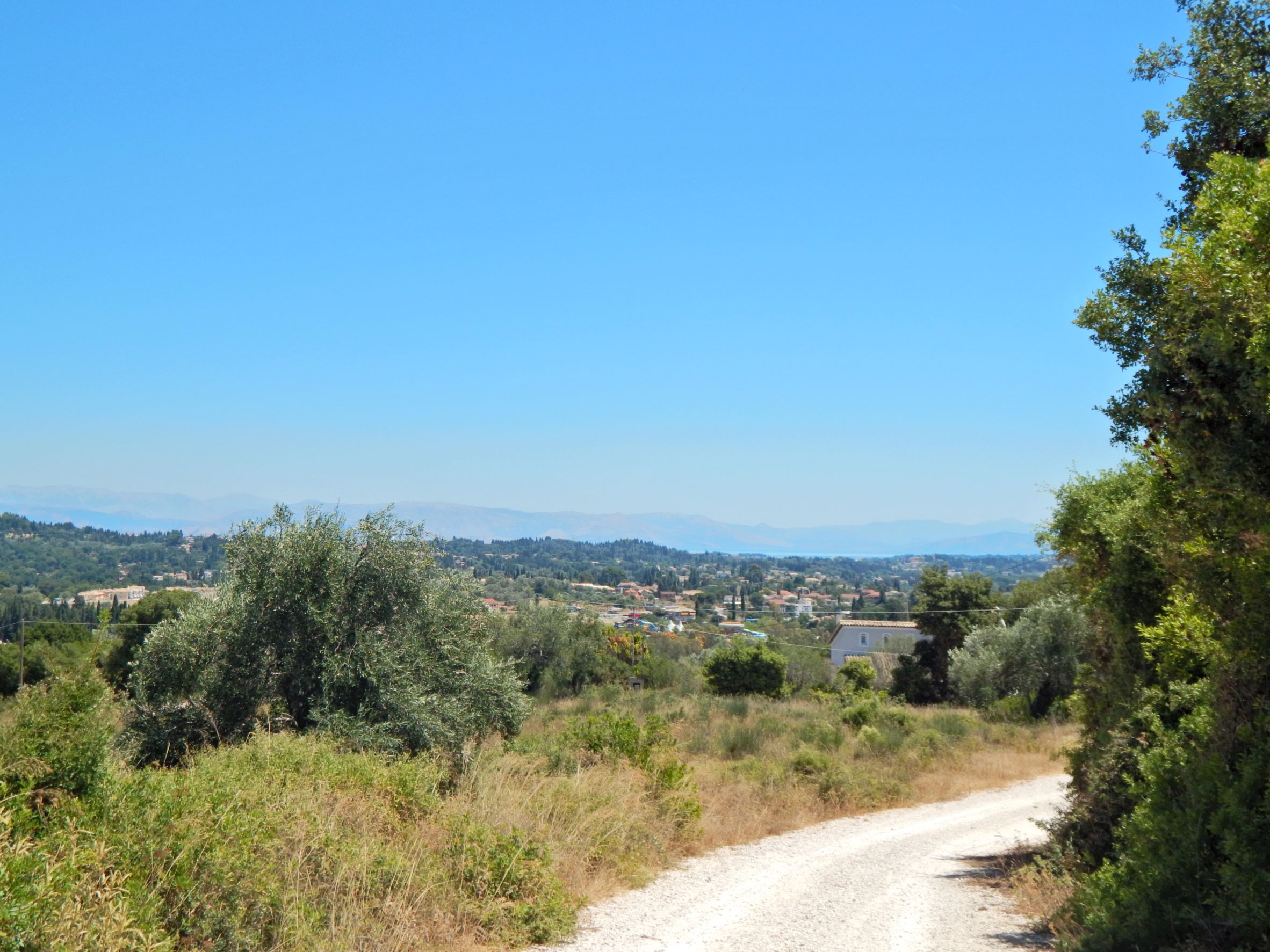 The land is on a gentle slope, and from the top there are sea views visible out towards the NE coast of the island and round to Vidos island and Corfu Town.