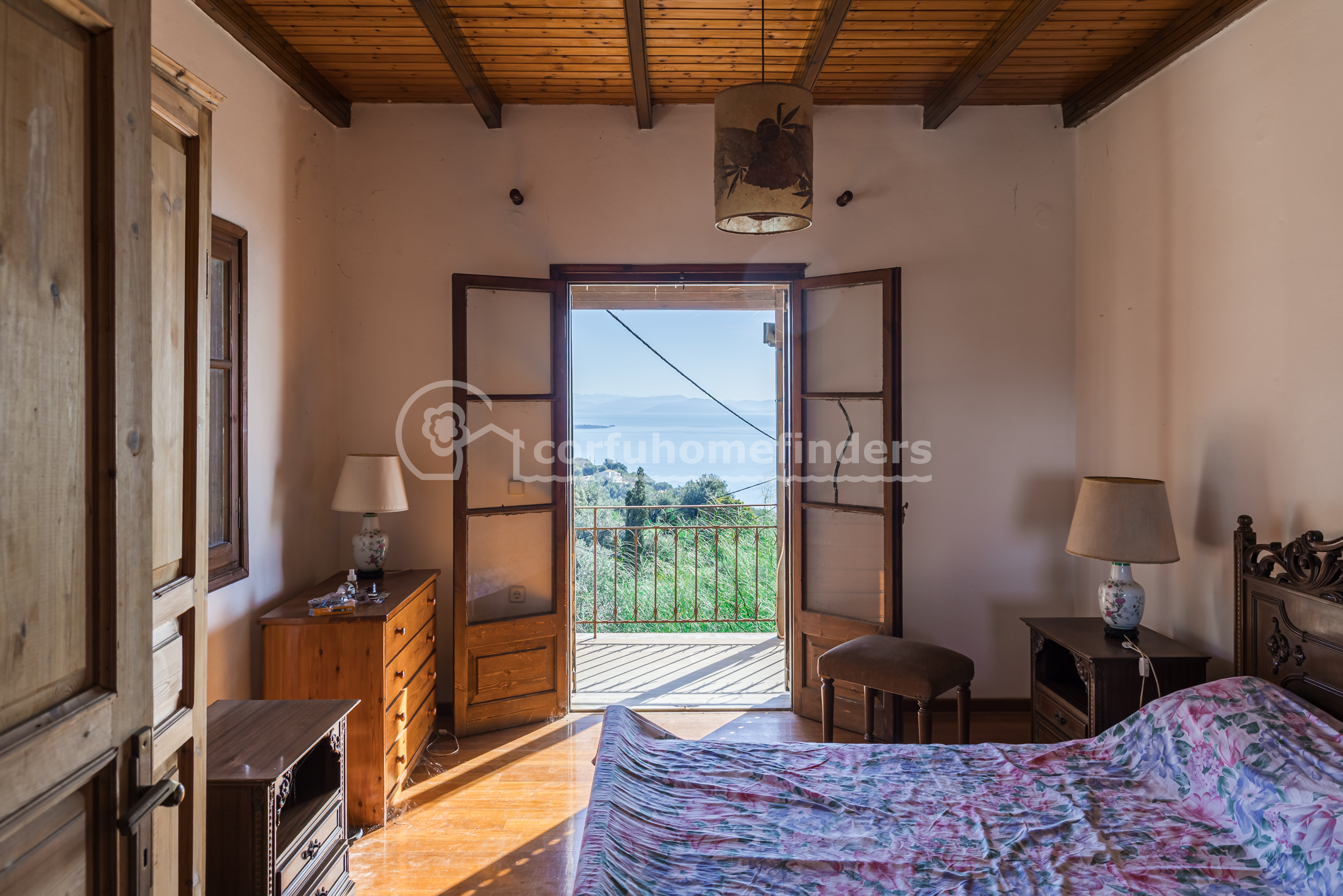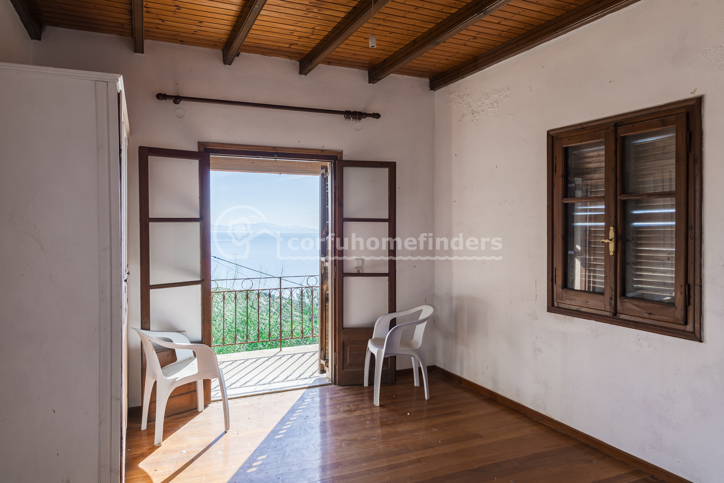 The house is located almost at the top of the settlement of Viglatsouri, with lovely sea and mountain views. There is parking on the land belonging to the house, with steps leading up to a paved area and the little 23m2 cottage at the side which could be turned into a guest annex.