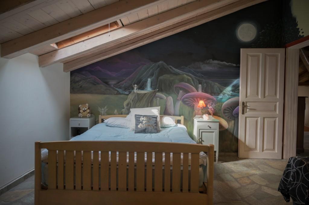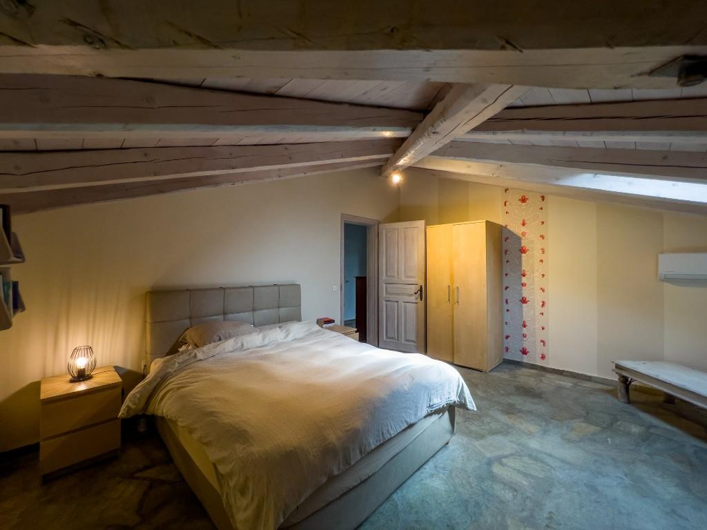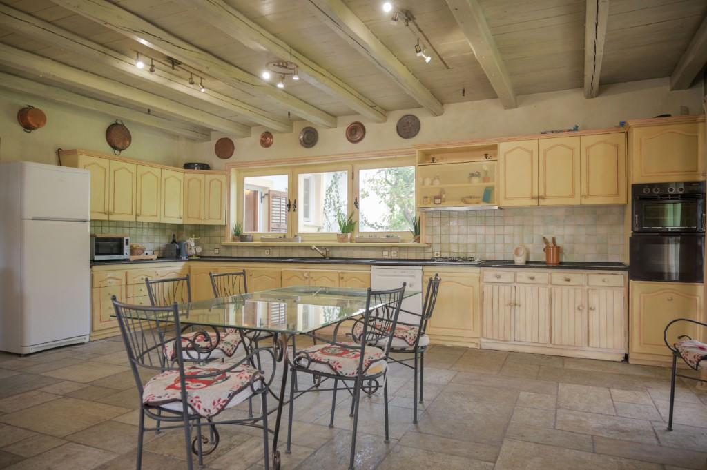From the ample parking area, steps lead up to the front door and gracious entrance hall. This leads through to the pretty kitchen with windows looking over the garden and a doorway opening onto a terrace. To one side of the kitchen is a cozy sitting room, centred around a huge fireplace. A formal dining area is at the other end of this room.