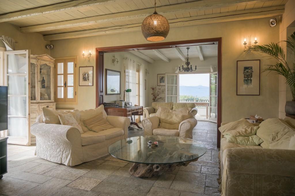 Built over two floors on an elevated plot, the house is surrounded by lush landscaped gardens and has a large swimming pool and sunbathing terrace.