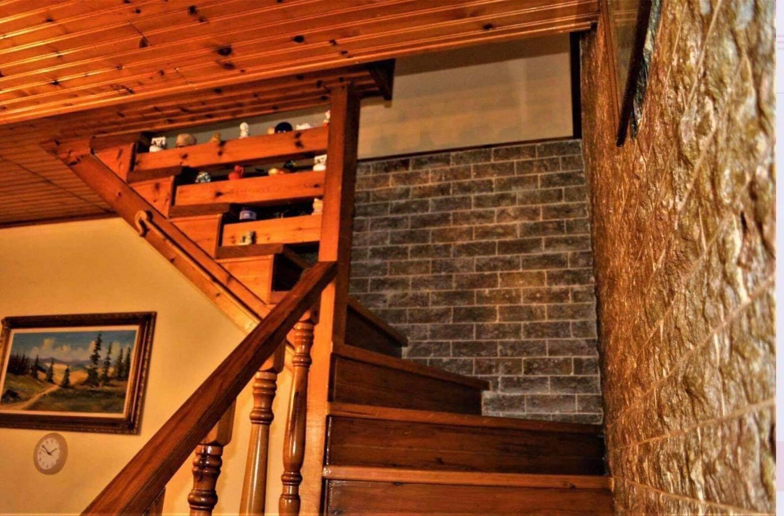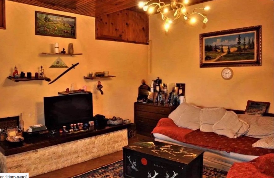 It has been partly renovated with a relatively new kitchen to the right of the entrance and living room with fireplace located on the main floor. Also on this level is a WC.