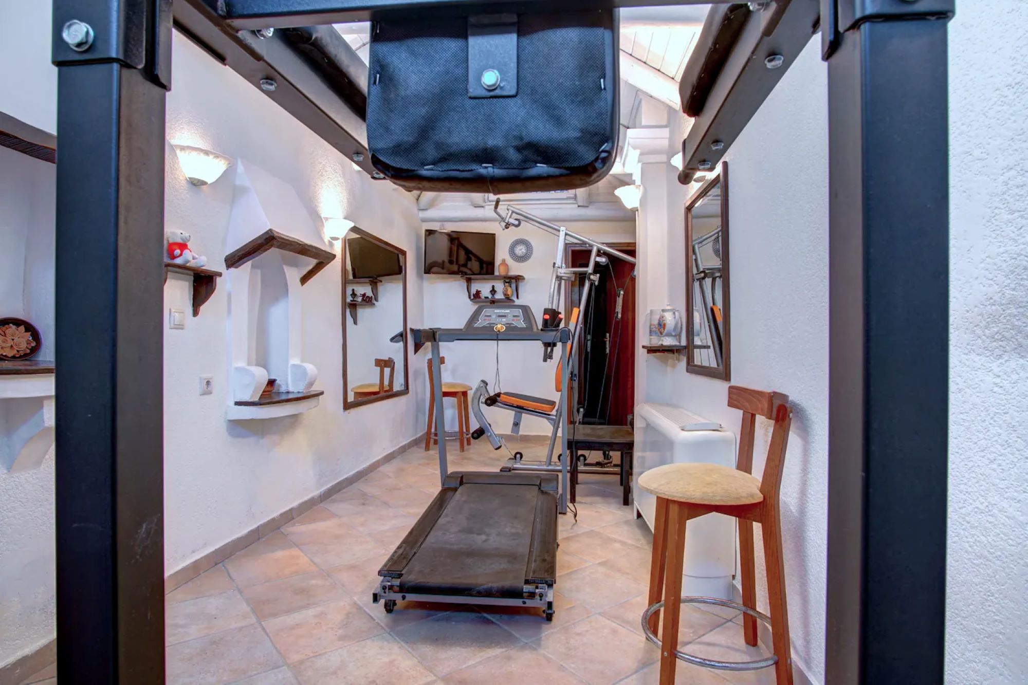 At the rear of this ground floor apartment is a fully equipped gym with a shower room. This leads through to a storeroom.
