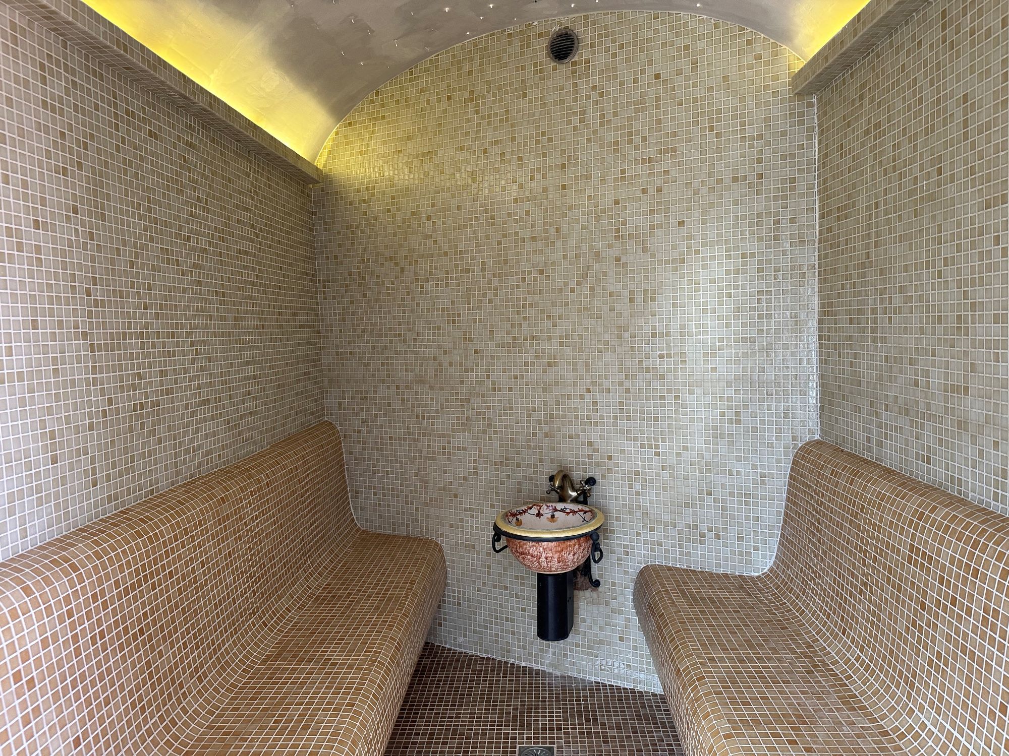 A pretty stone building behind the swimming pool houses the hammam spa and sauna.