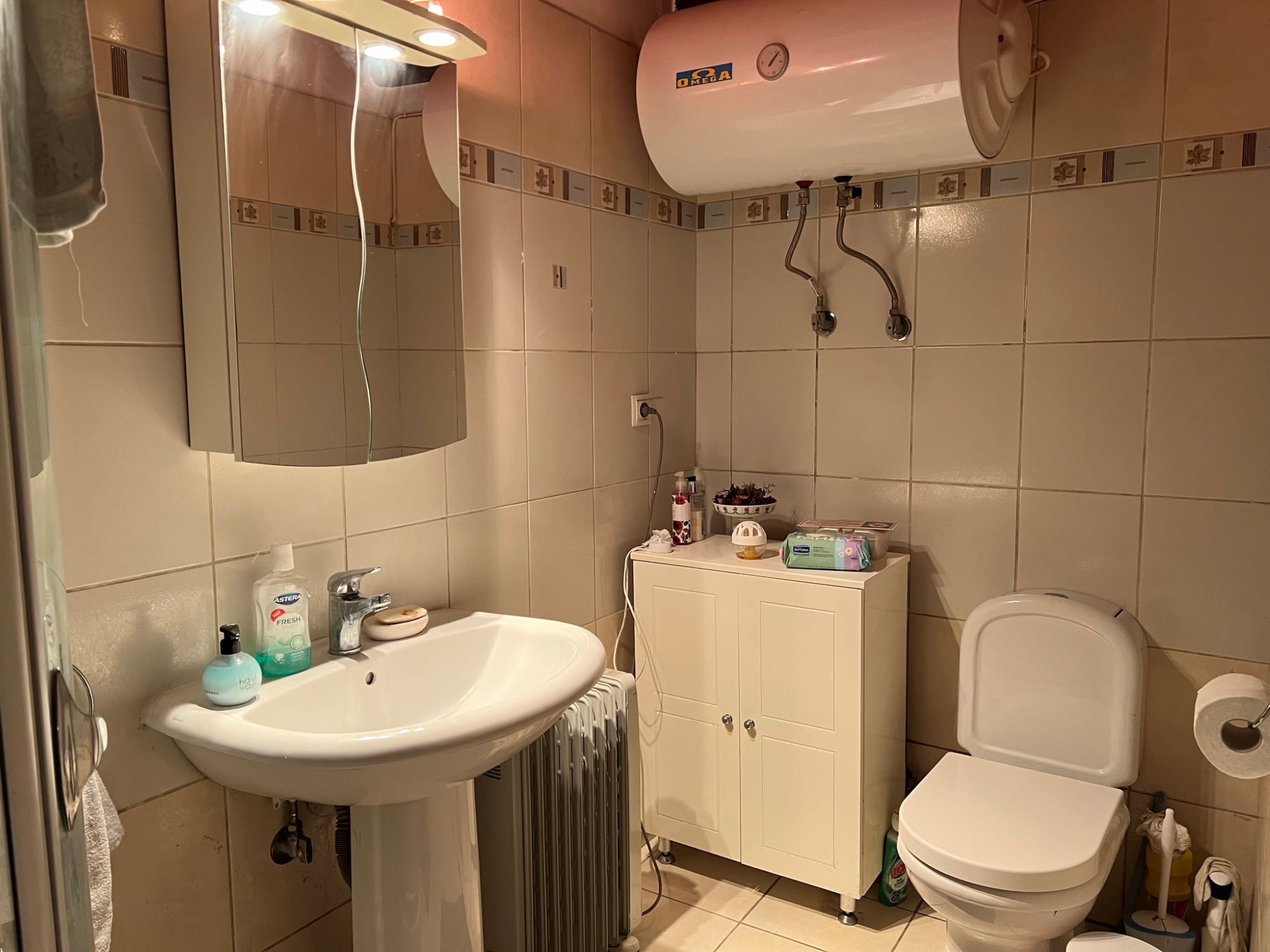 Entering the property there is a hallway with two good sized bedrooms and one currently used as a study room. On this floor there is a fitted shower room. Moving up to the upper floor, through wooden stairs, we come to face with the open plan kitchen, the dining room and a smallish lounge. Patio doors from here open up to the balcony, allowing plenty of light to flood in, overlooking to lovely views of the sea and mountains.