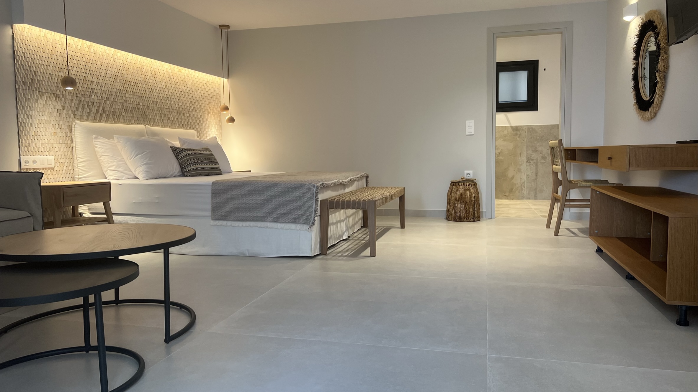 On the lower level is another large bedroom and en-suite bathroom, also with a separate private terrace to the side. This room is very large, and has space for extra beds if so needed.