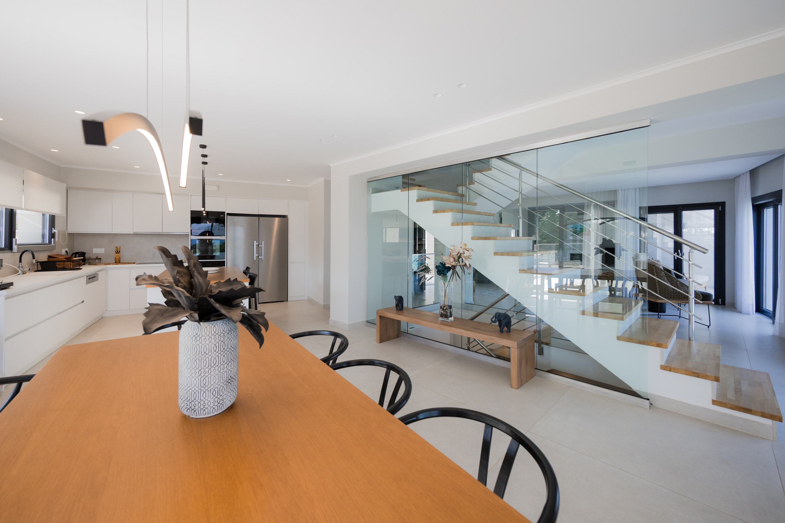 The villa is built over three levels to take advantage of the slope of the land.