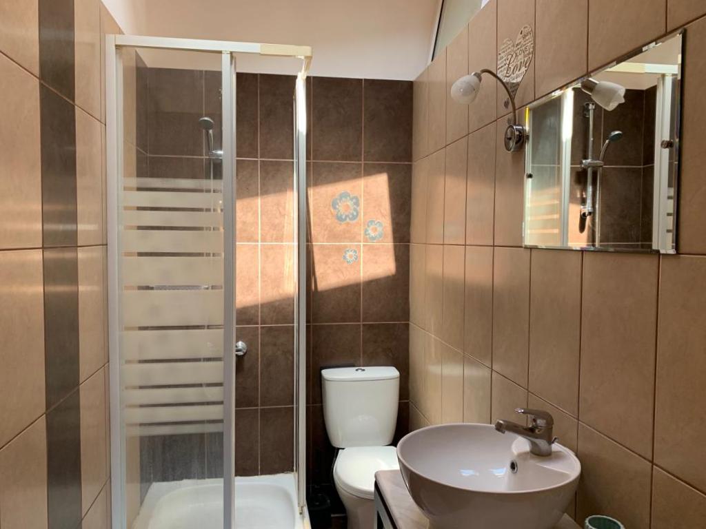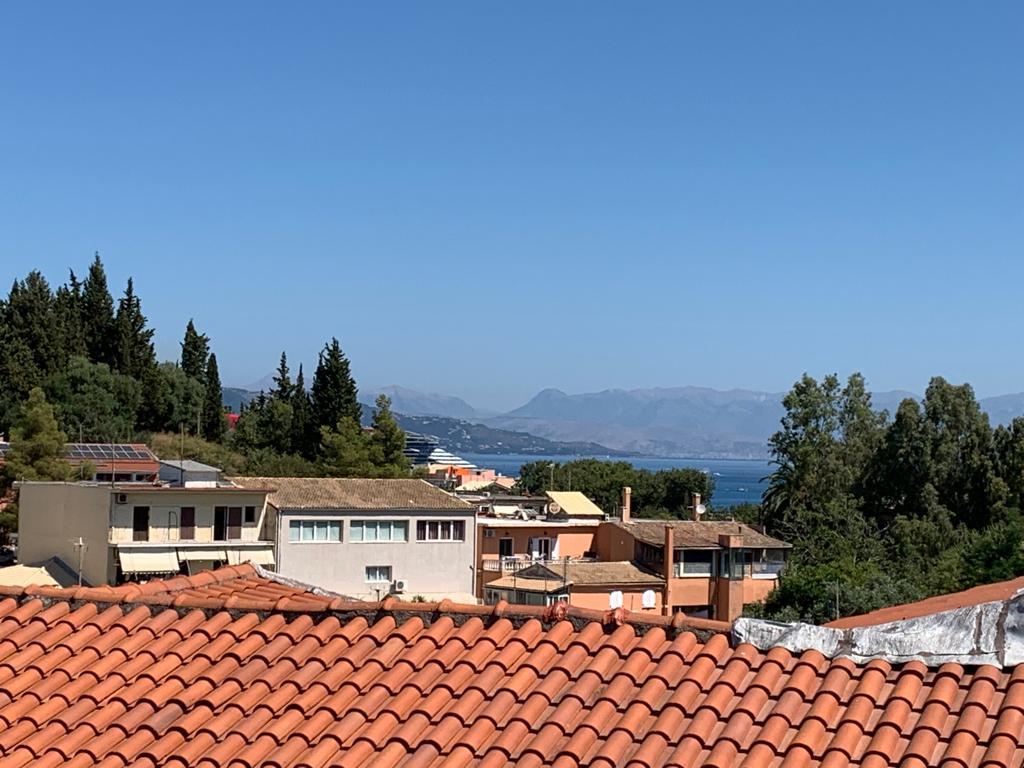 Two spacious bedrooms are located at the rear of the apartment - the main bedroom has an ensuite shower room, and there is another family bathroom in the hallway. Both bedrooms have access to a balcony, with the main bedroom facing mount Pantokrator and has a distant sea view.