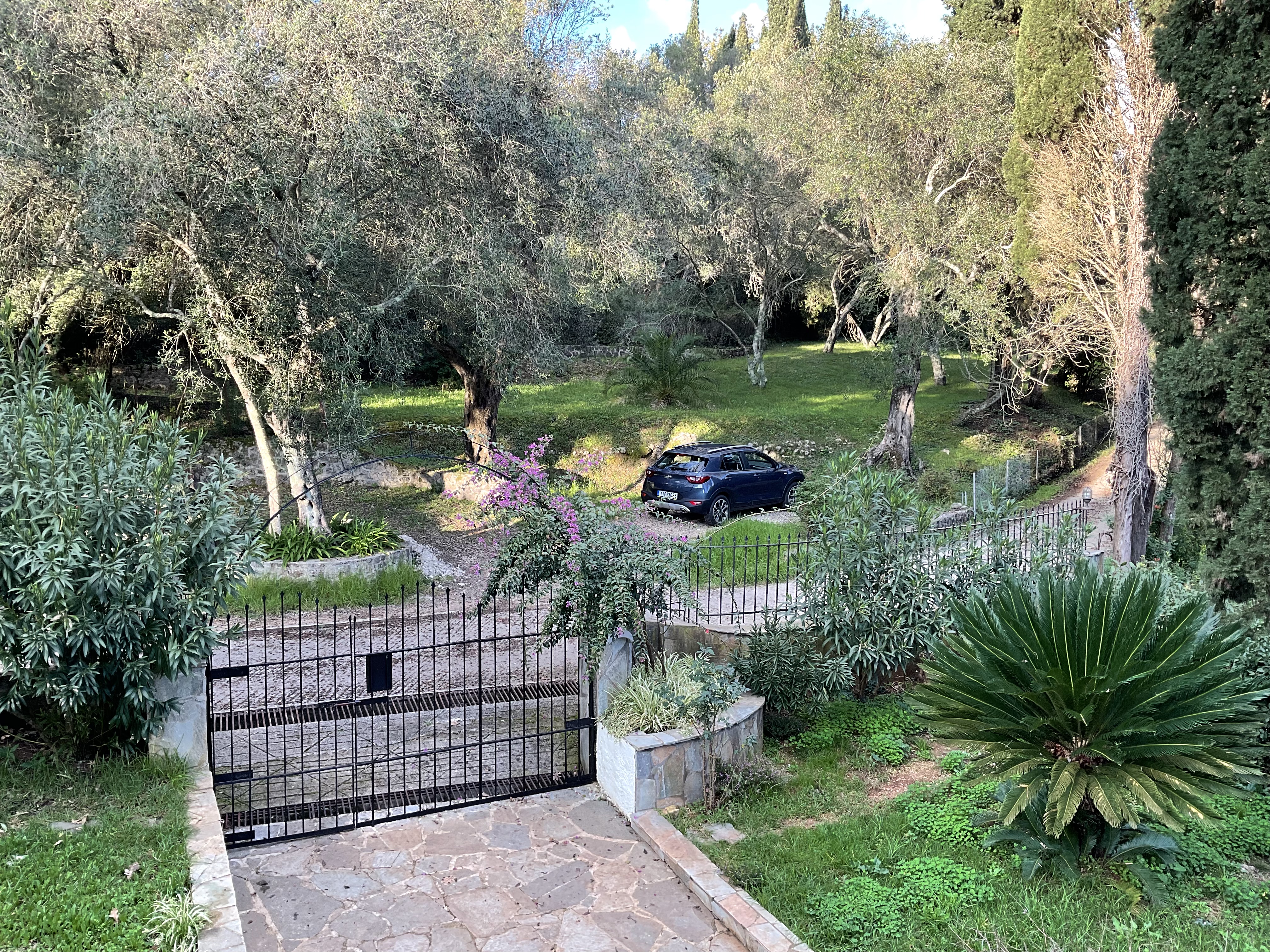 There is an ideal spot to park several cars under the shade of the olive trees in the land next to the house.