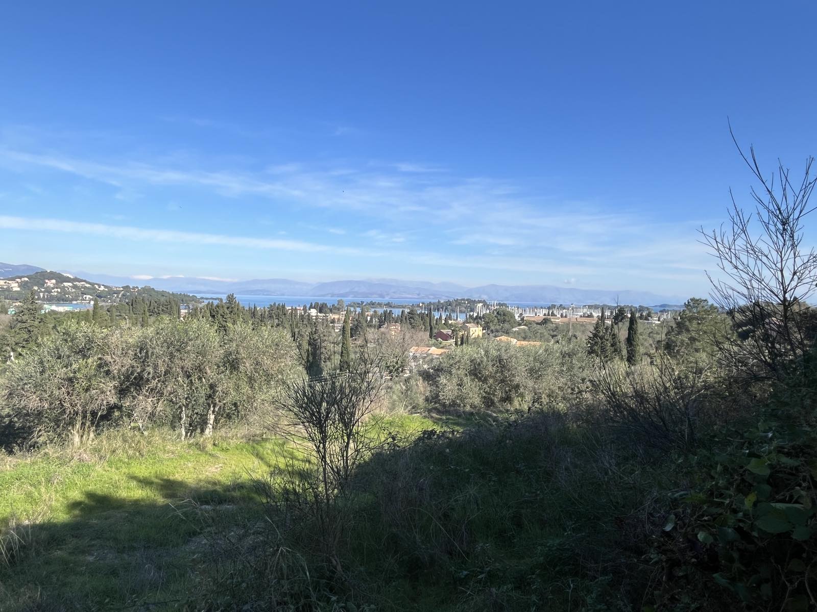 This very lovely olive grove has beautiful views across to Gouvia Marina, up the north east coastline and also towards the mountains in the west. It will have all day sunshine!