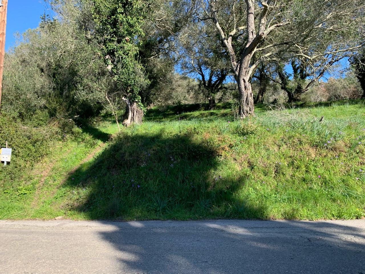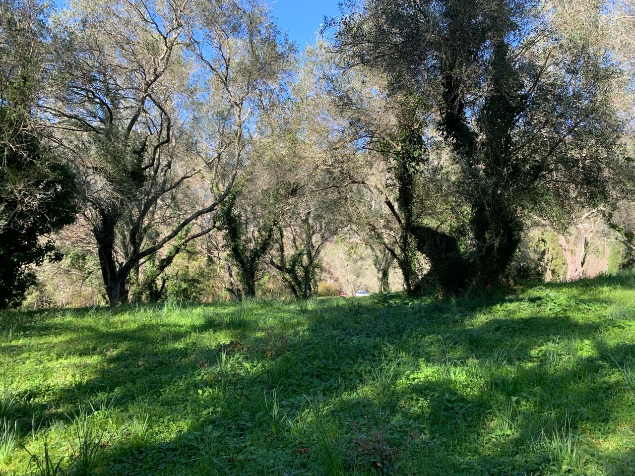 With two points of access, the land has a gentle slope and is lush and green. The tall olive trees provide shade, but could be pruned to allow more sunlight and to open up the pretty views.