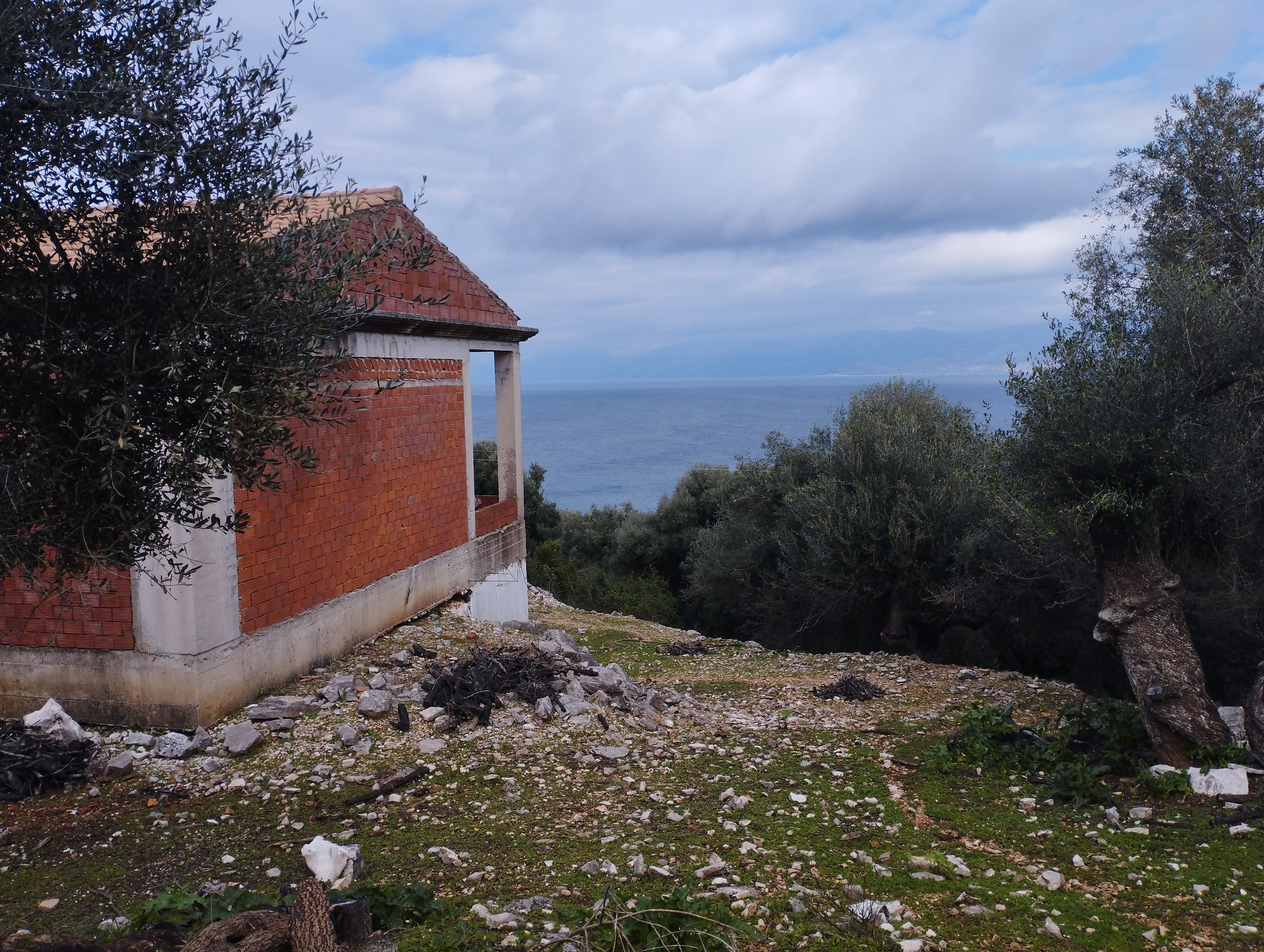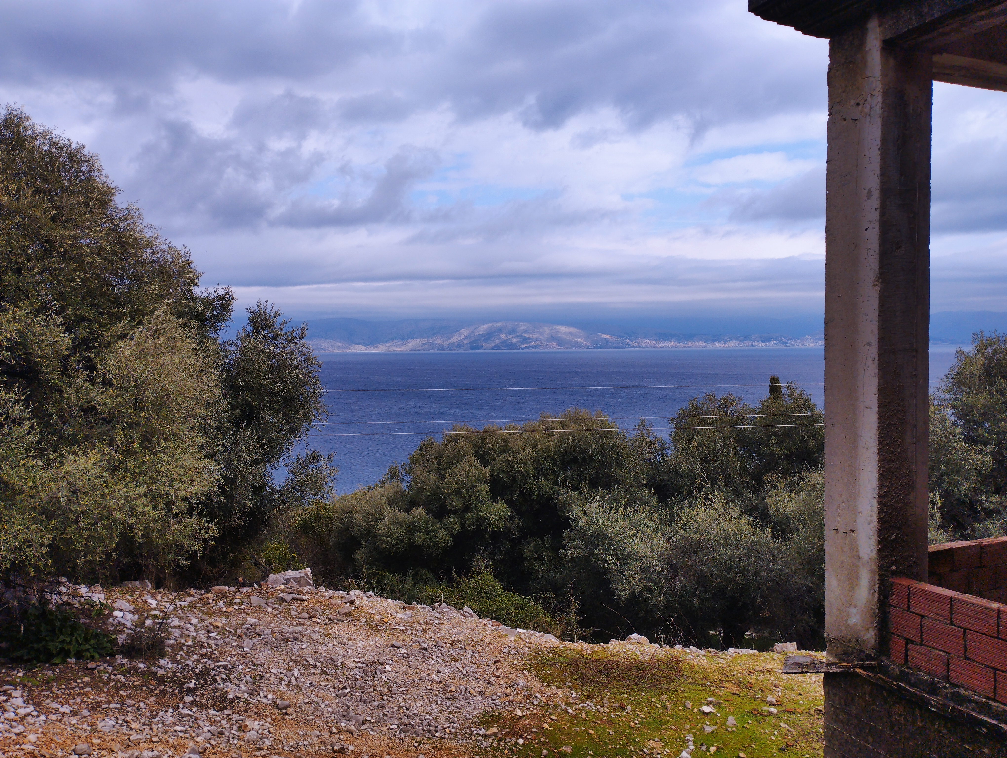 The large plot of land is covered in mature olive trees and is in an elevated position above the road. The fabulous view cannot be obstructed, and a few steps lead from the plot down to the road and across to a small bay. The beautiful beach of Kalamaki is a short stroll away and the bustling centre of Kassiopi is a few minutes drive.